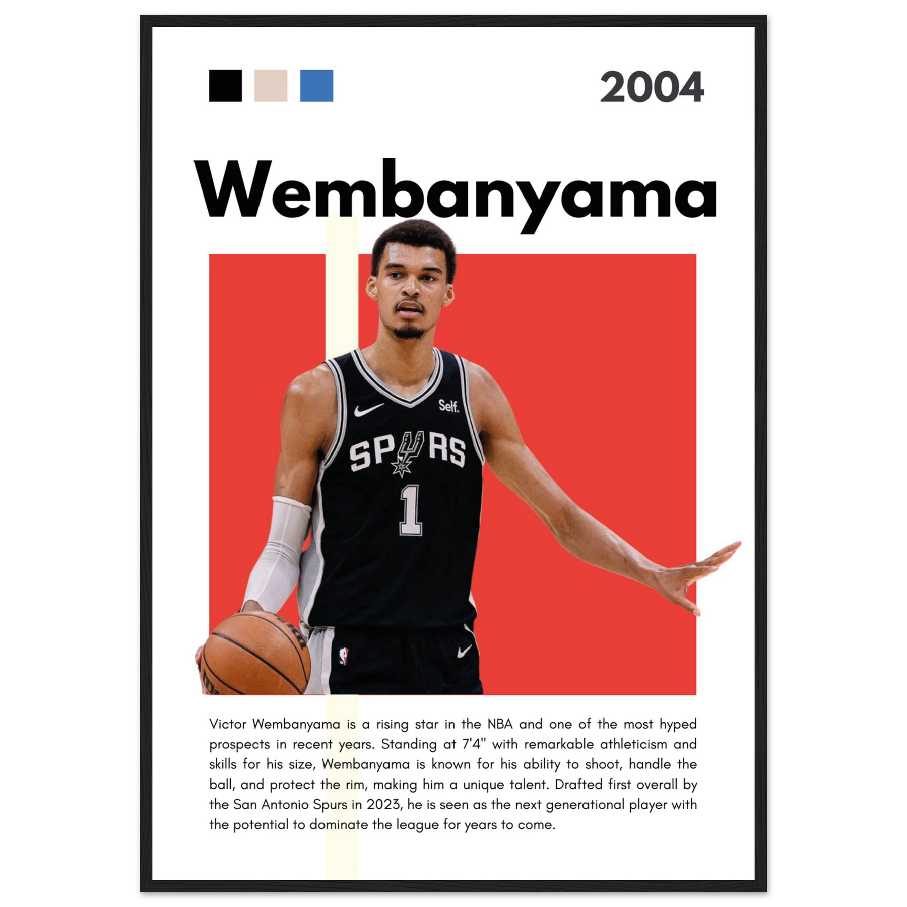 Victor Wembanyama Wemby Spurs Modern Art Print A1 (59.4 x 84.1 cm) Black frame Vibrantwalls