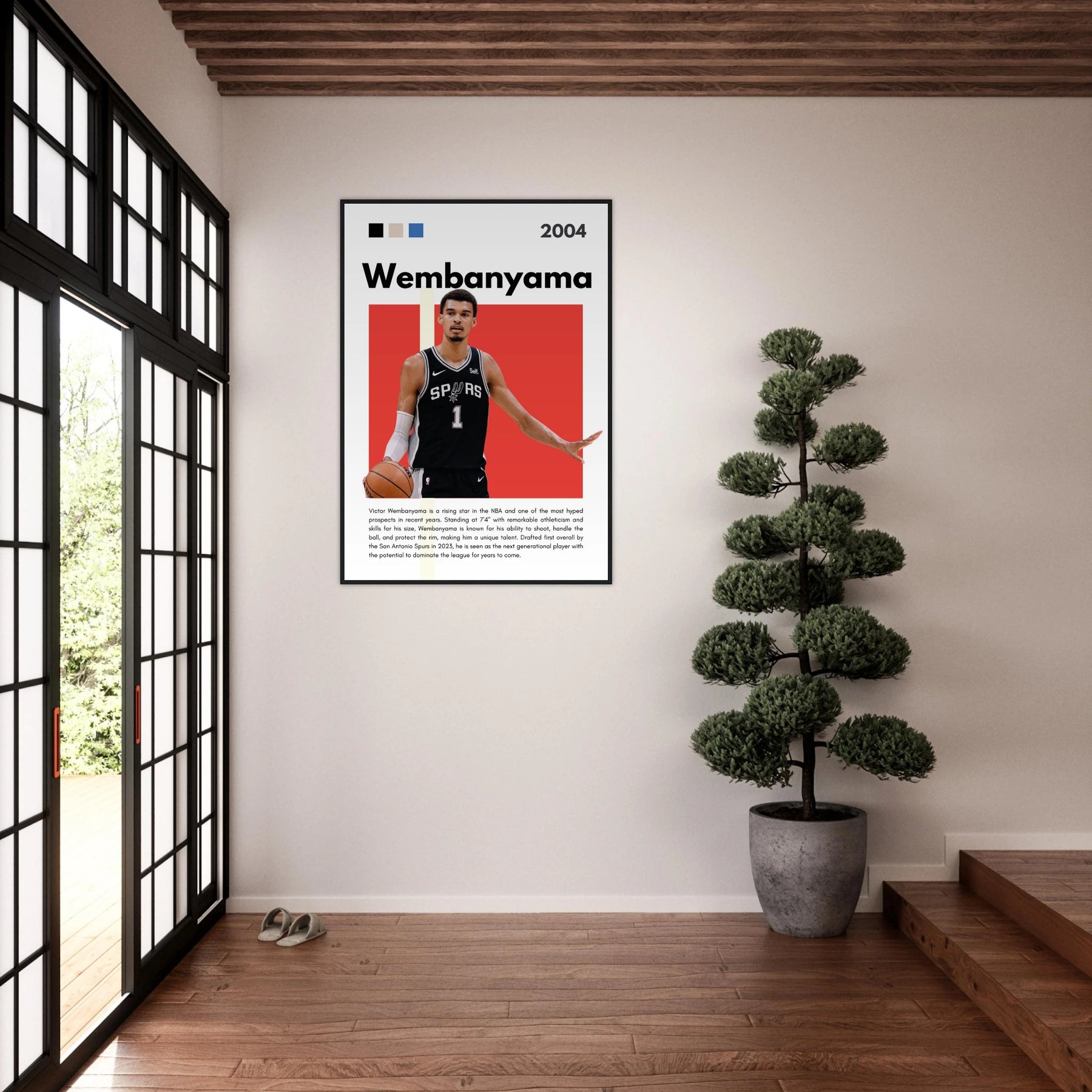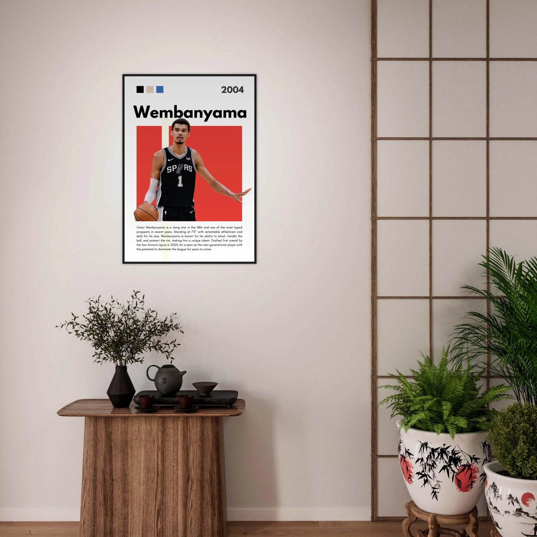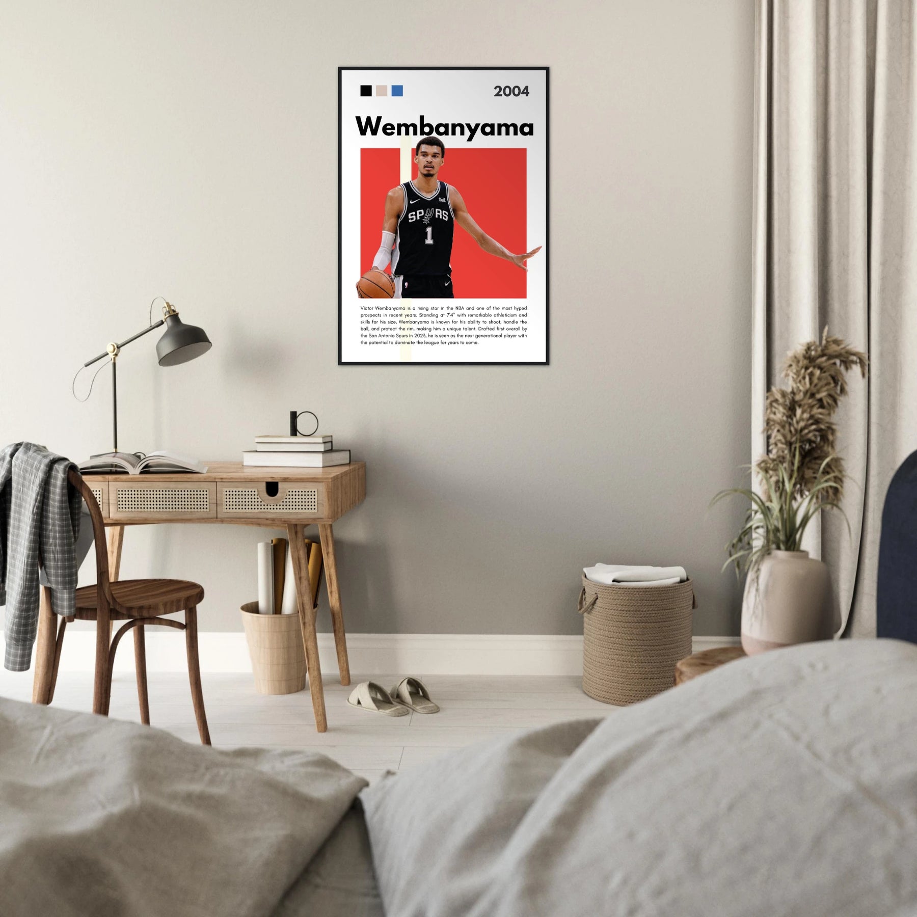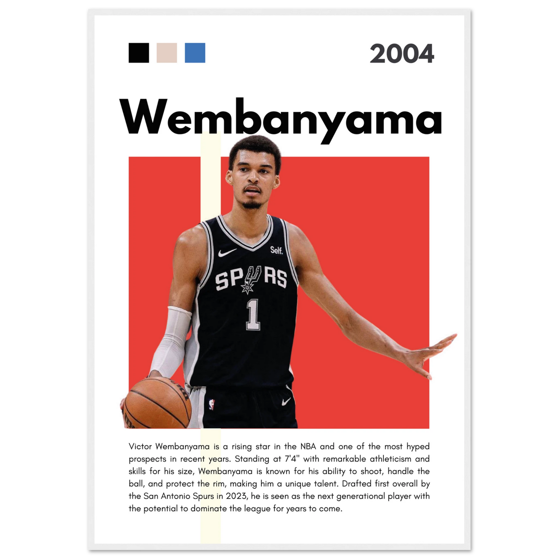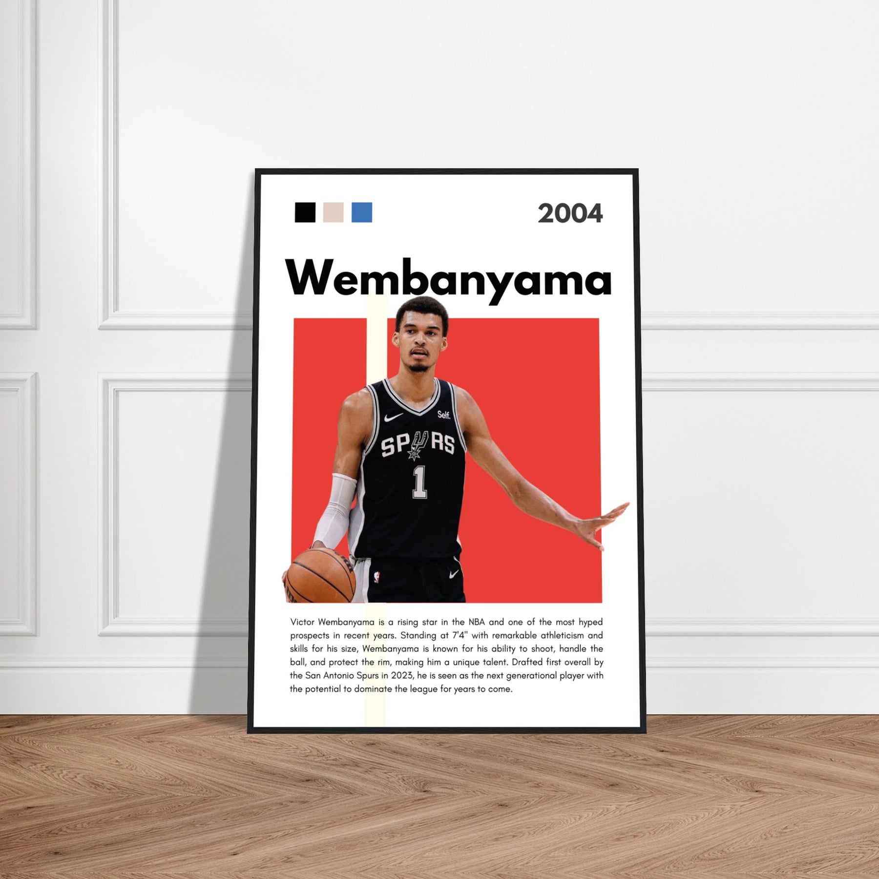 This print not only serves as a tribute to Wembanyama's promising career but also transforms any room into a modern artistic environment. Hang it in your den, office, or sports room to create a visually stunning focal point that showcases your love for basketball and art.