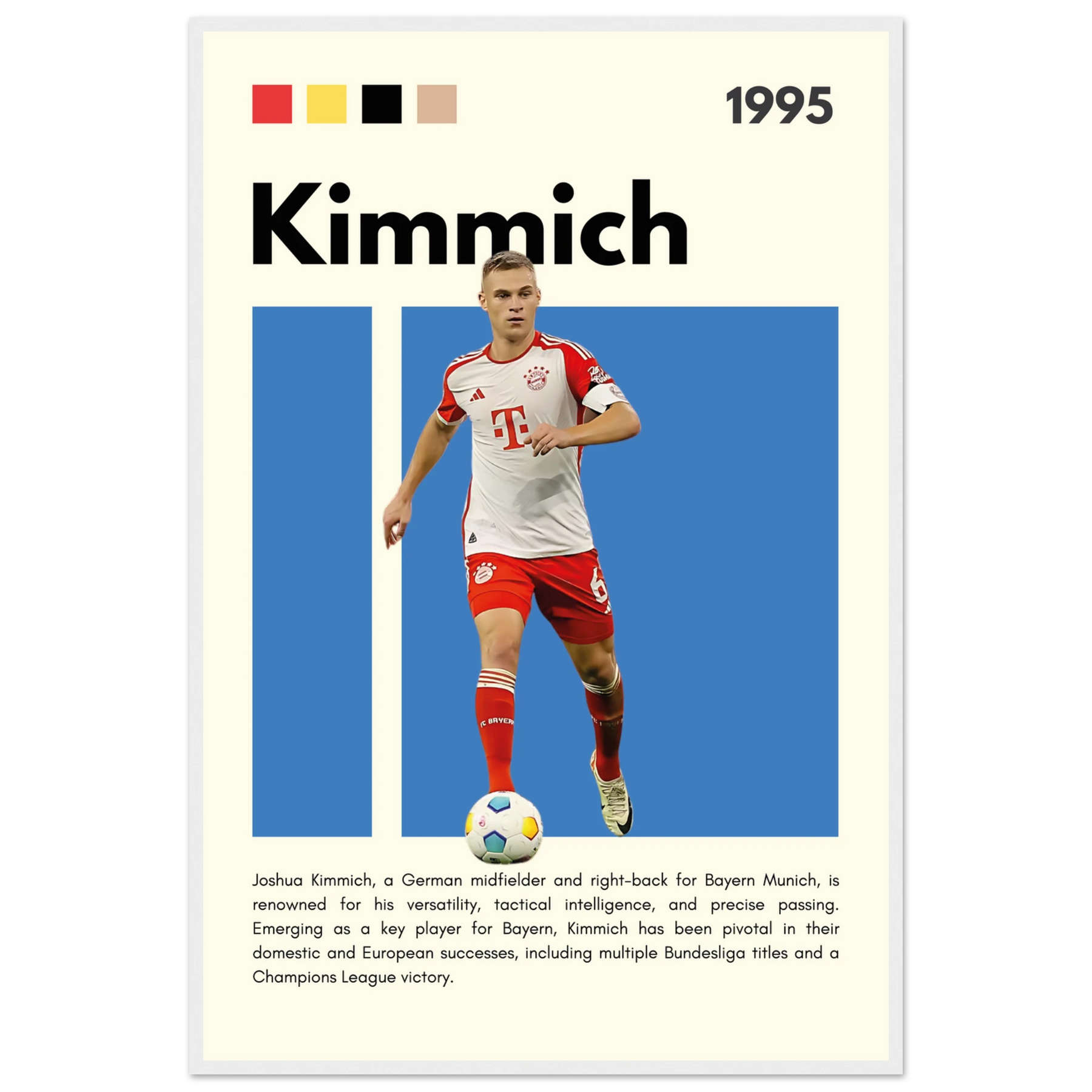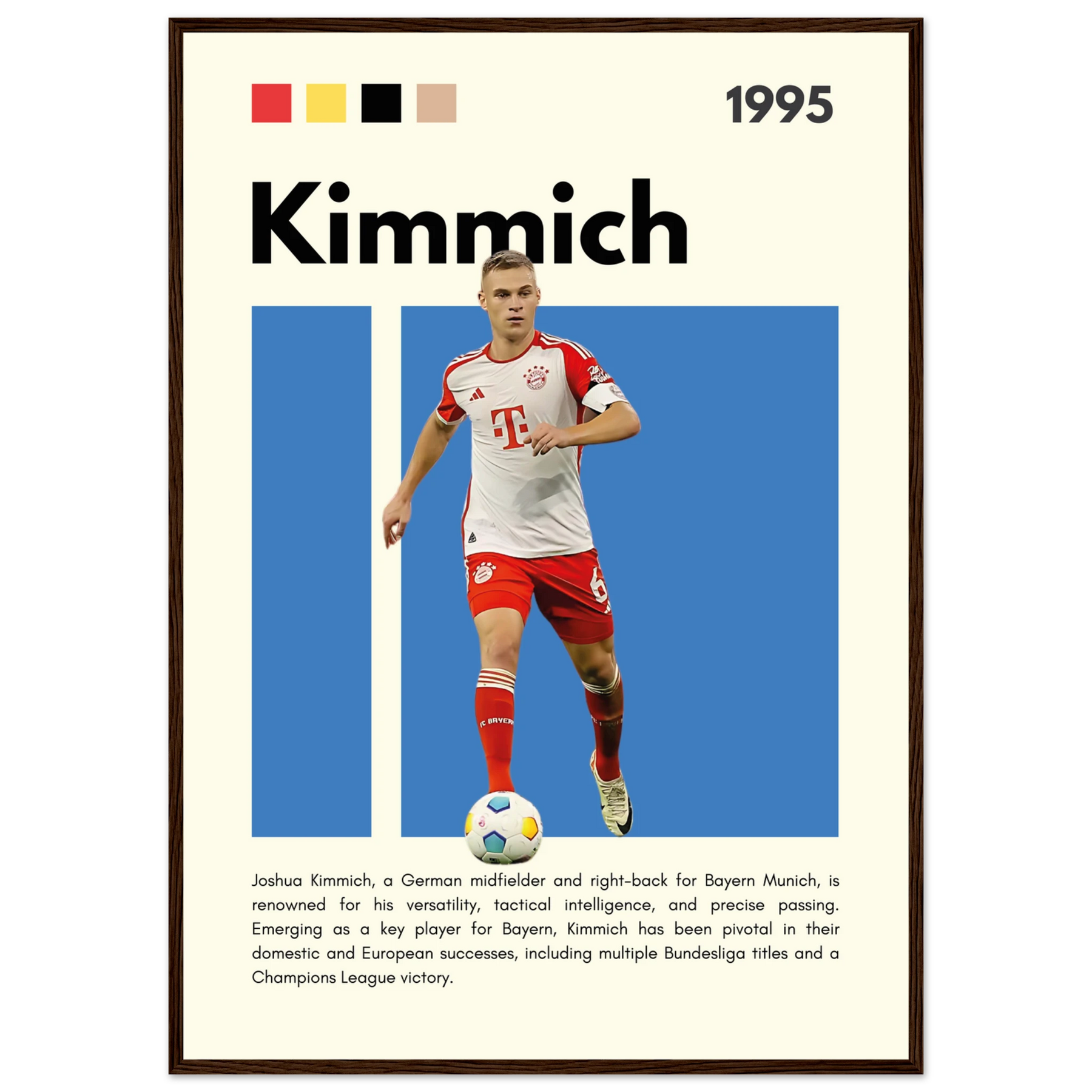 Joshua Kimmich Bayern Munich Framed Football Poster A1 (59.4 x 84.1 cm) Wood frame Vibrantwalls