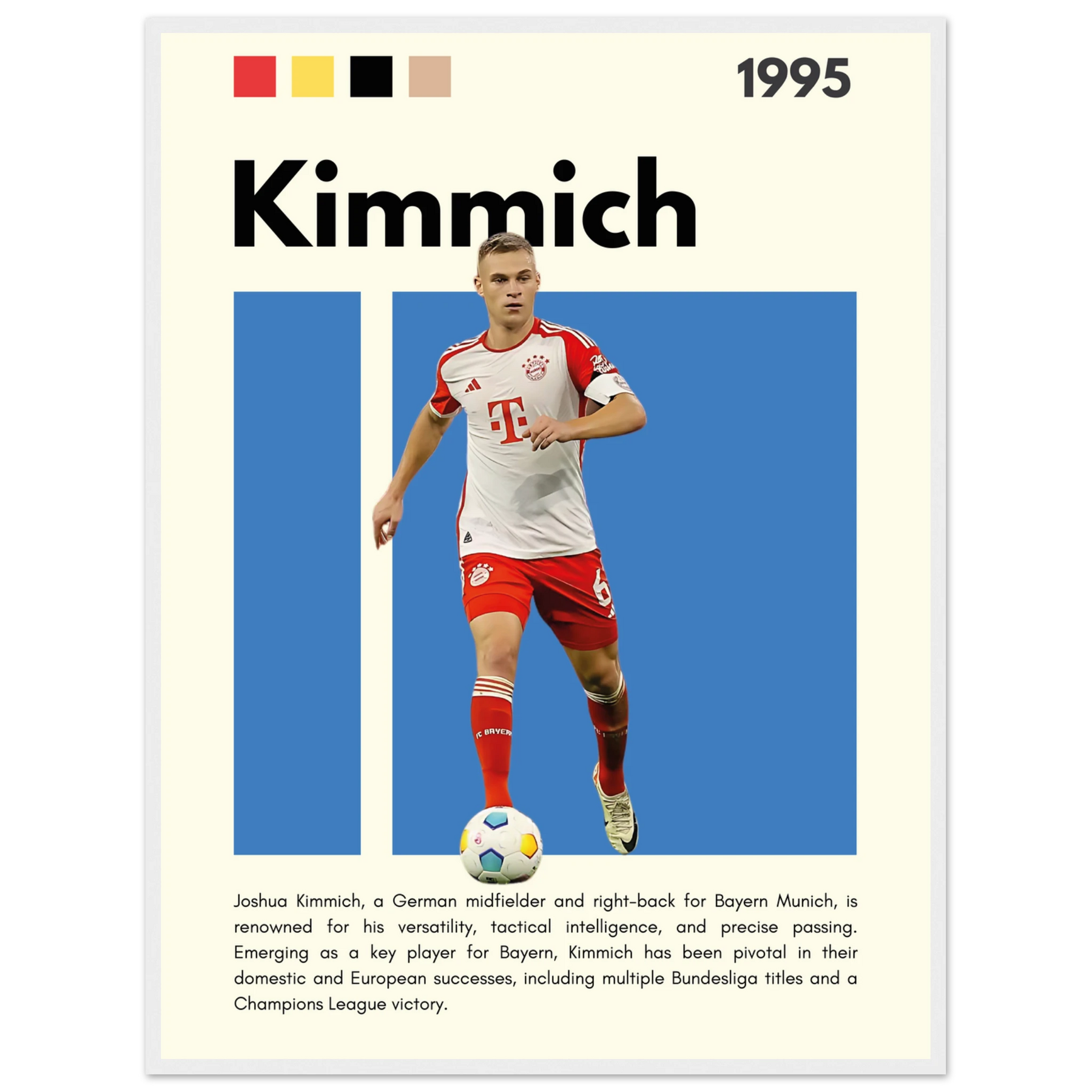 Joshua Kimmich Bayern Munich Framed Football Poster 70x100 cm 28x40″ Wood frame Vibrantwalls