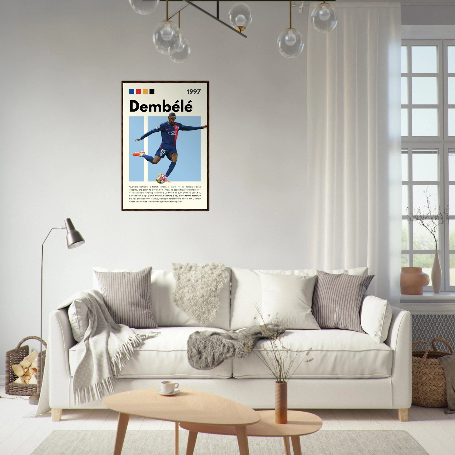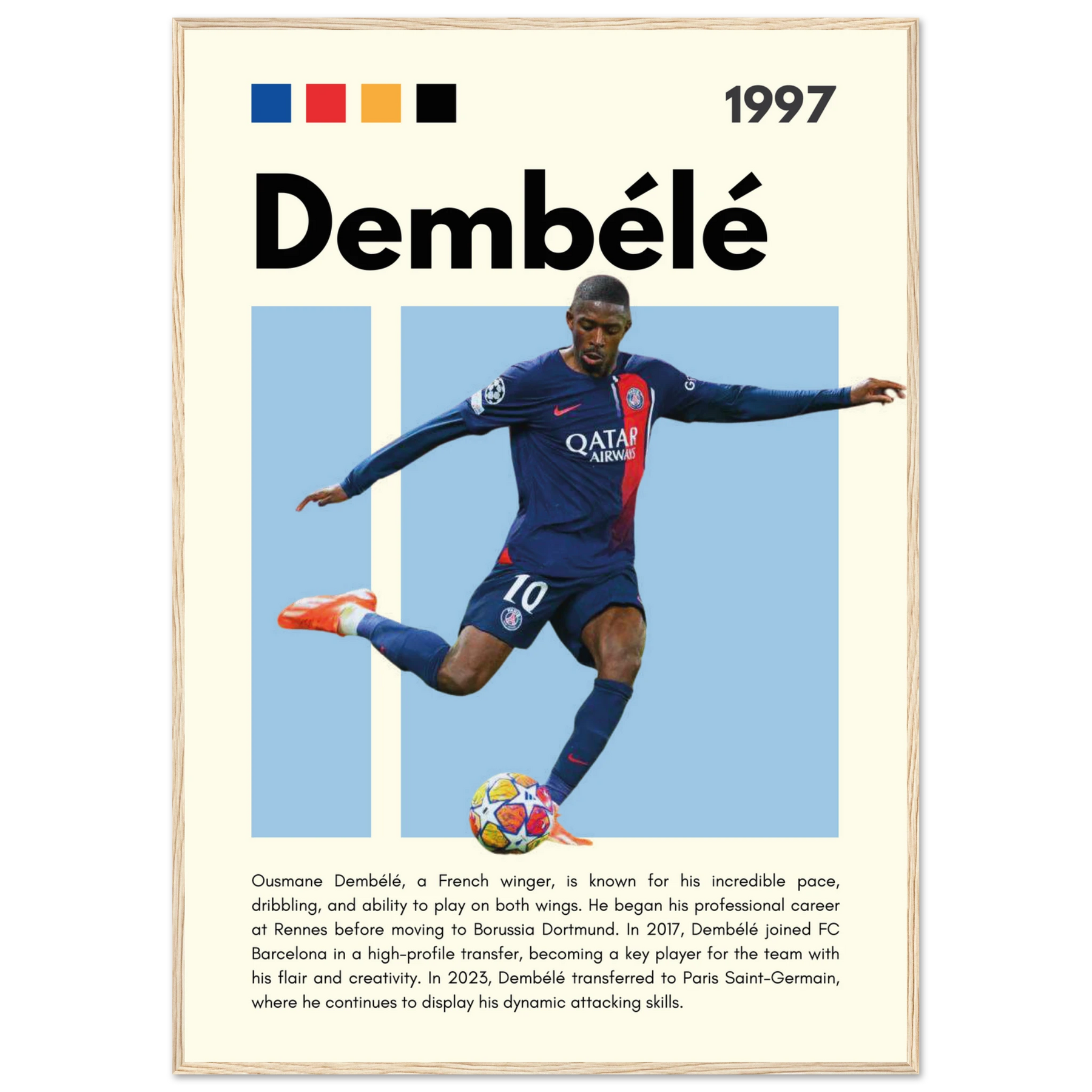 • Dynamic Design: A stunning visual representation of Ousmane Dembélé in action, capturing his movement and spirit on the field.