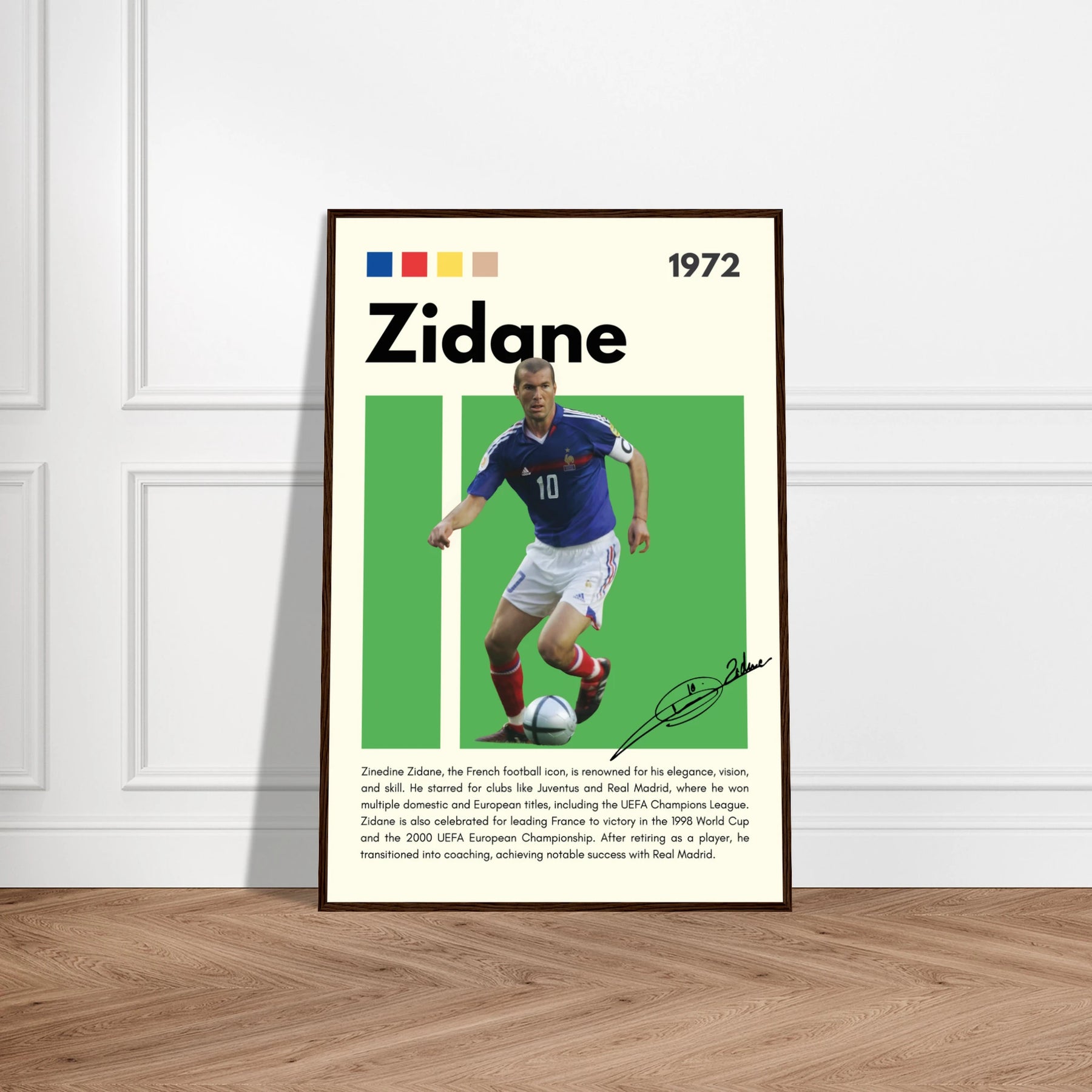 As you adorn your walls with this stunning piece, let it spark conversations and evoke memories of Zidane's greatest moments, from his stunning goals to his unparalleled performance during key matches. Perfect for living rooms, studies, or fan caves, this poster also makes a fantastic gift for anyone who admires the beautiful game.