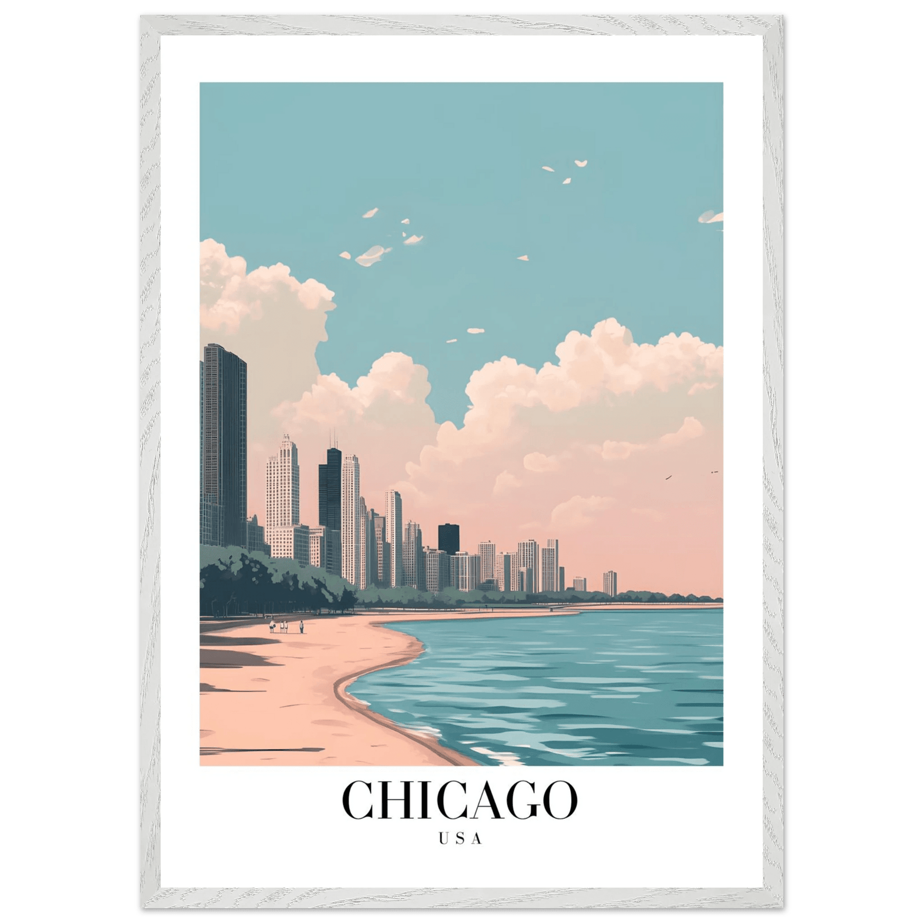 Ideal for the passionate traveler or the art enthusiast, this framed poster highlights the unique charm of Chicago. The carefully curated colors and composition evoke feelings of nostalgia and admiration for the city. You can almost feel the gentle breeze from the lake while gazing at this picturesque scene.