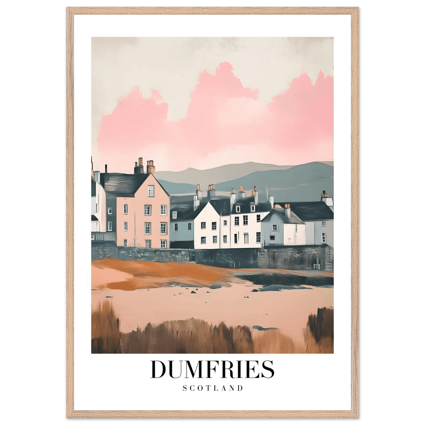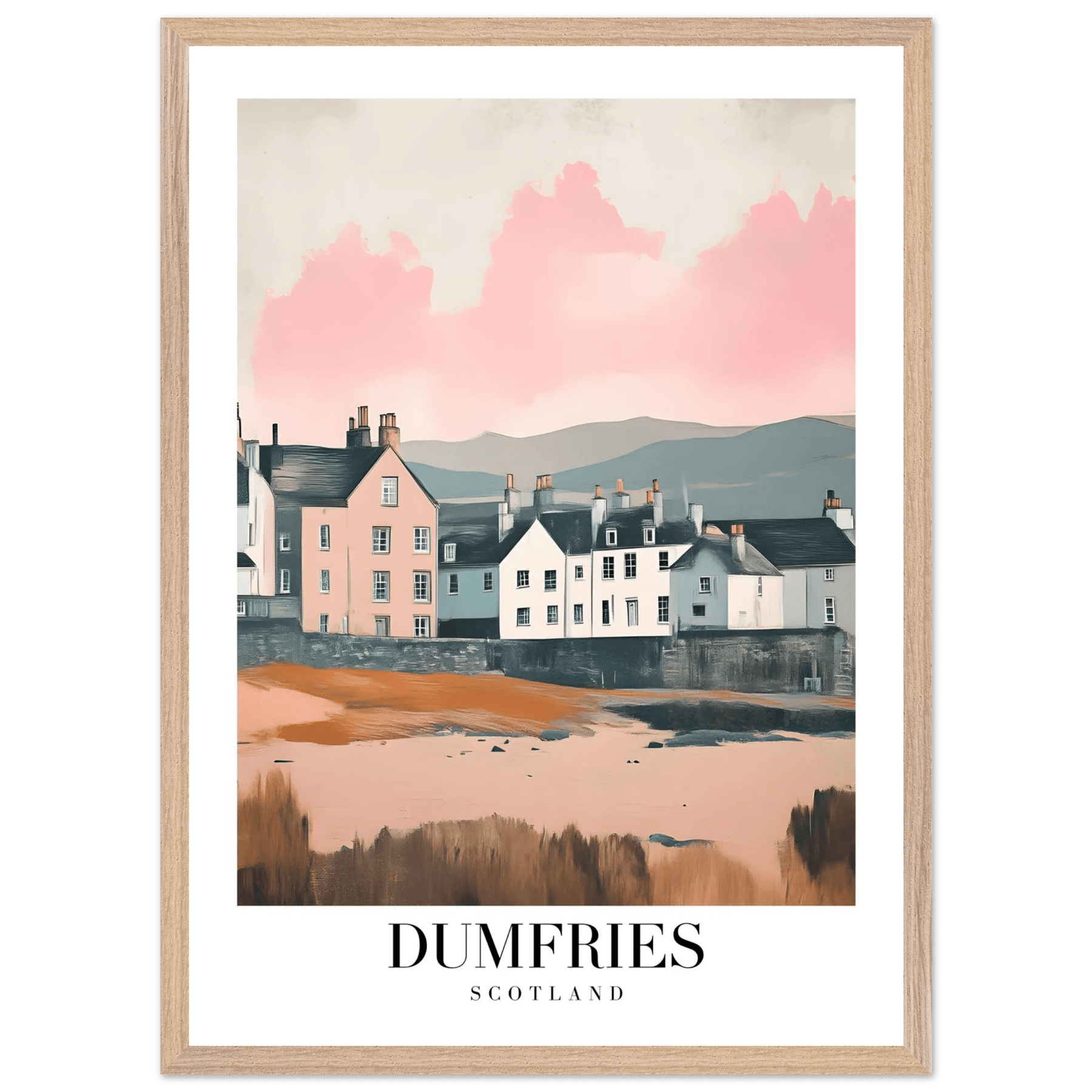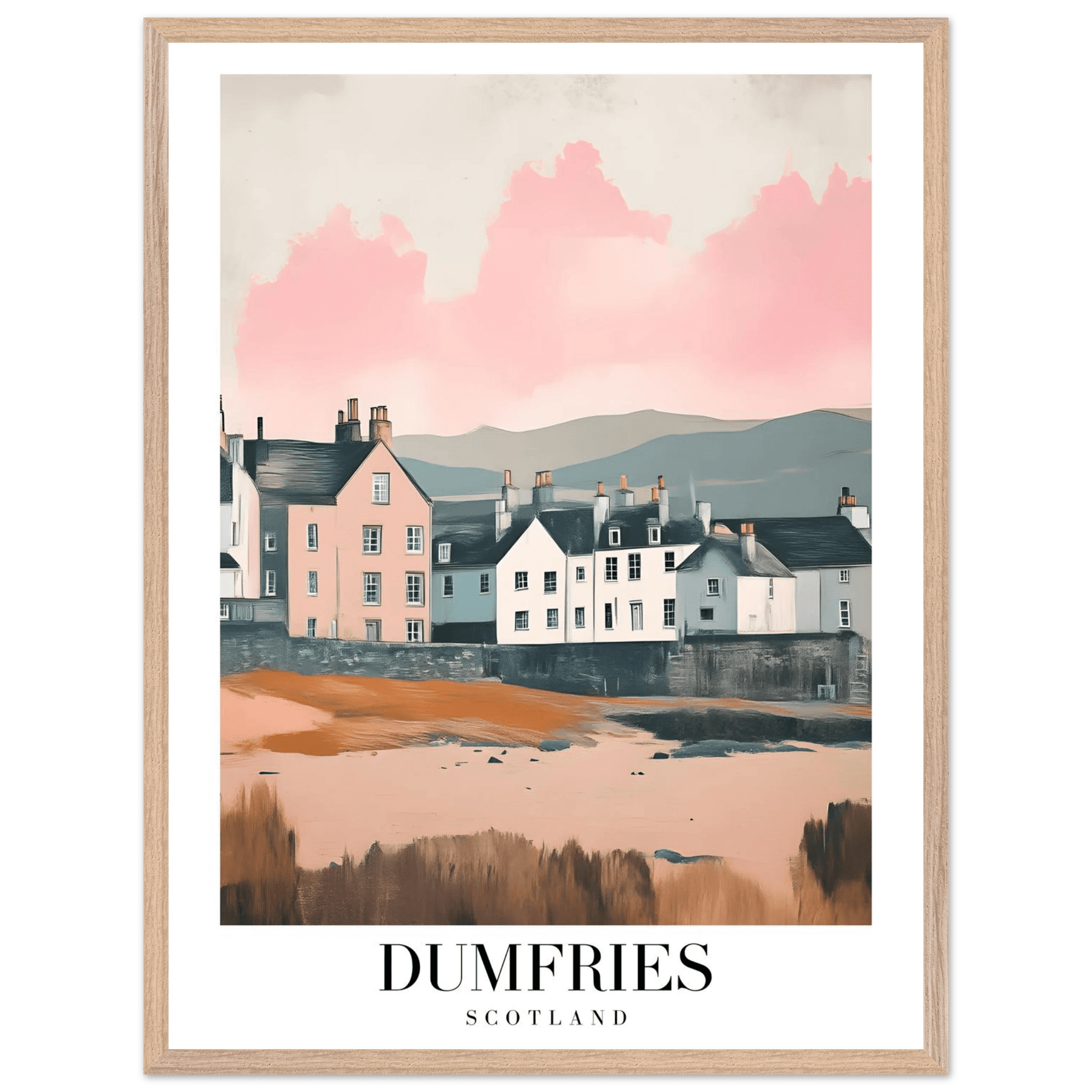 Dumfries Scotland Framed Poster – Pastel-Toned Vintage Travel Wall Art with Wooden Frame