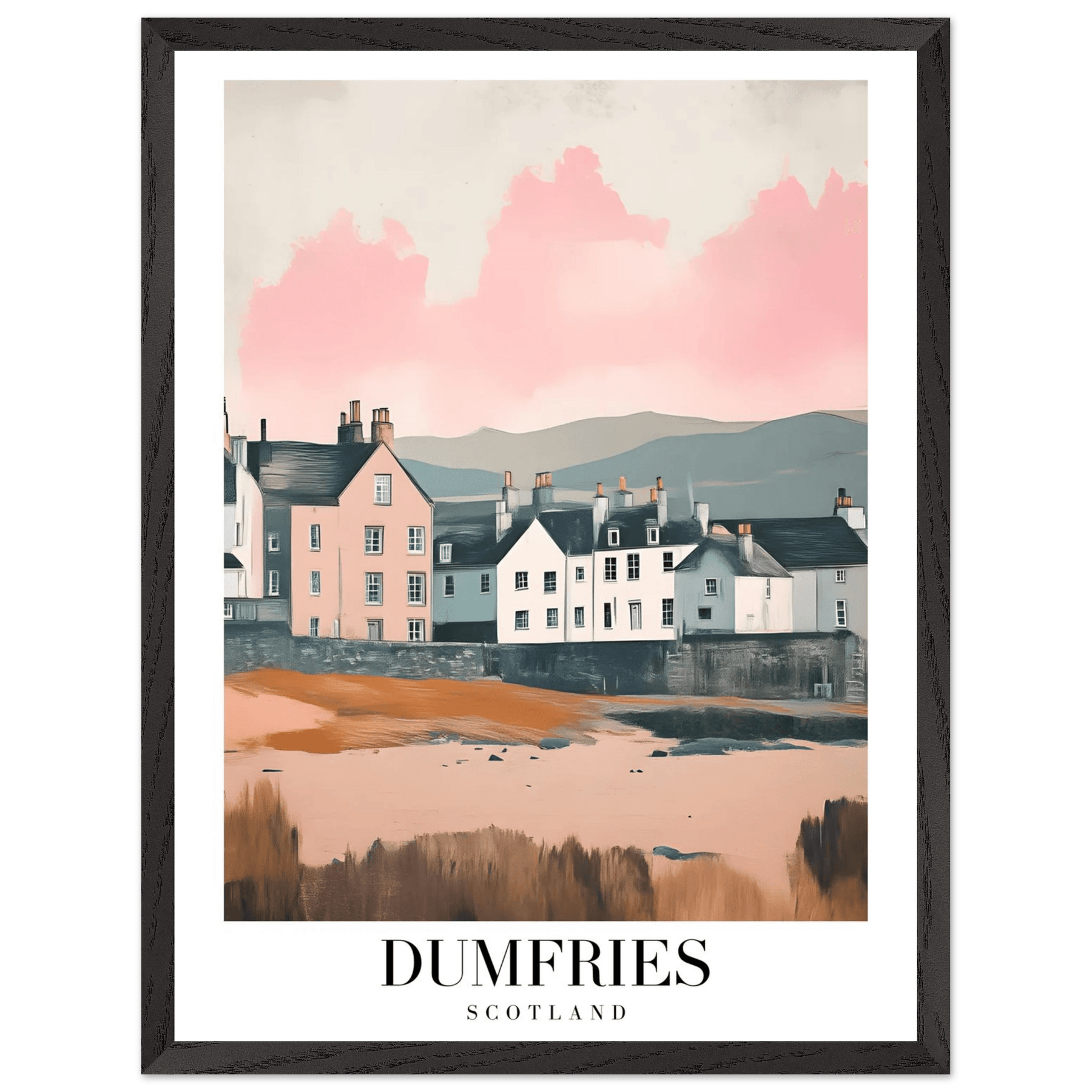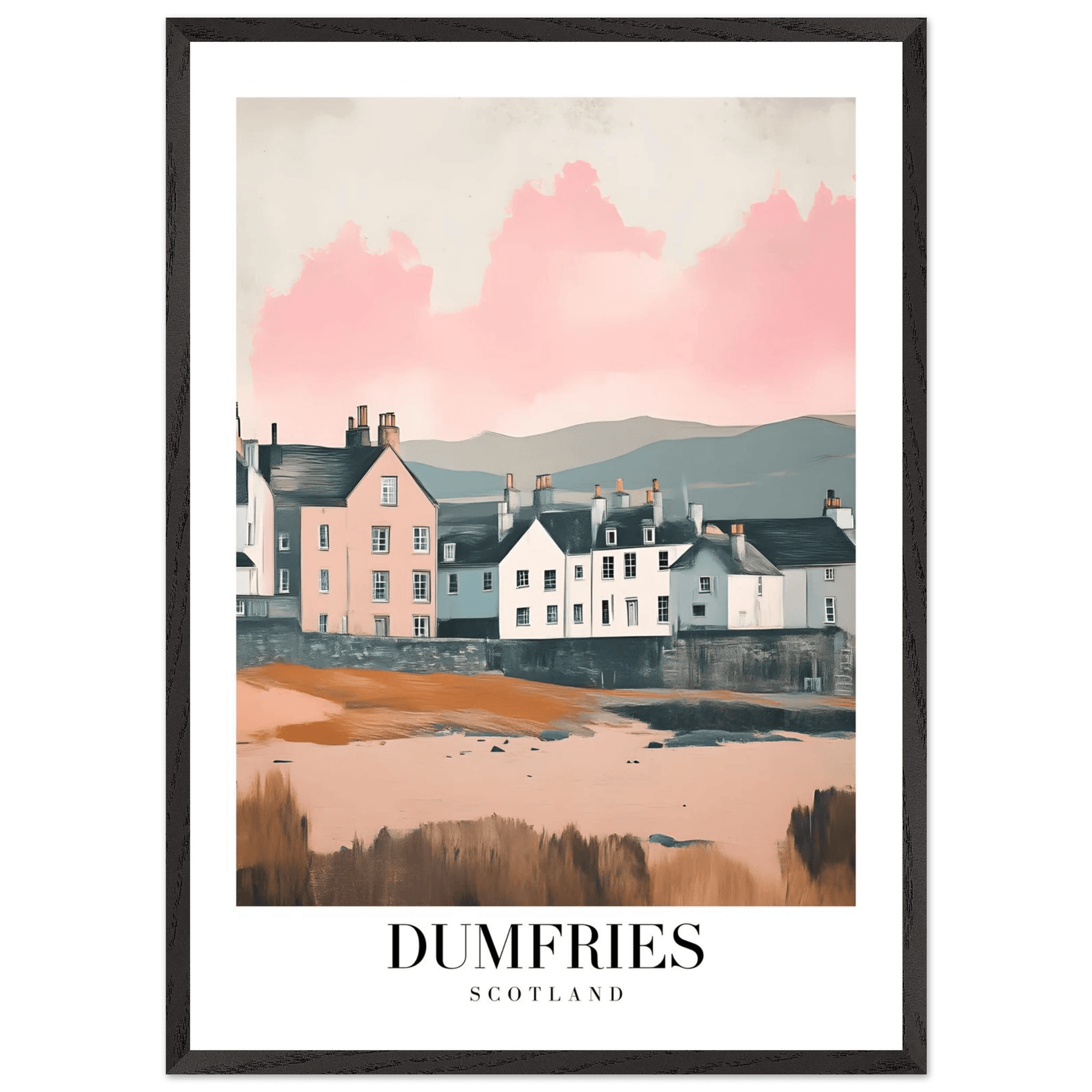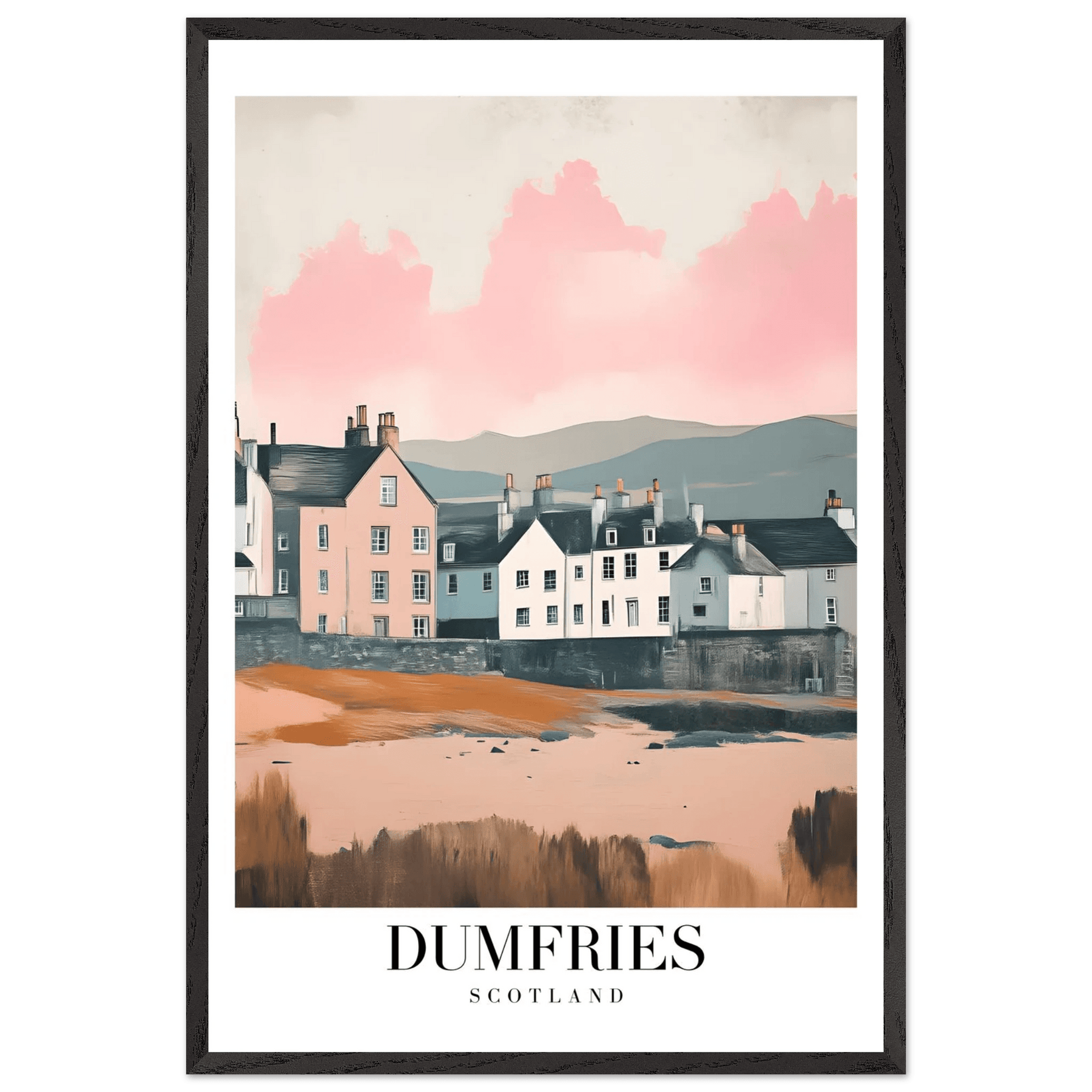 Dumfries Scotland Framed Poster – Pastel-Toned Vintage Travel Wall Art with Wooden Frame