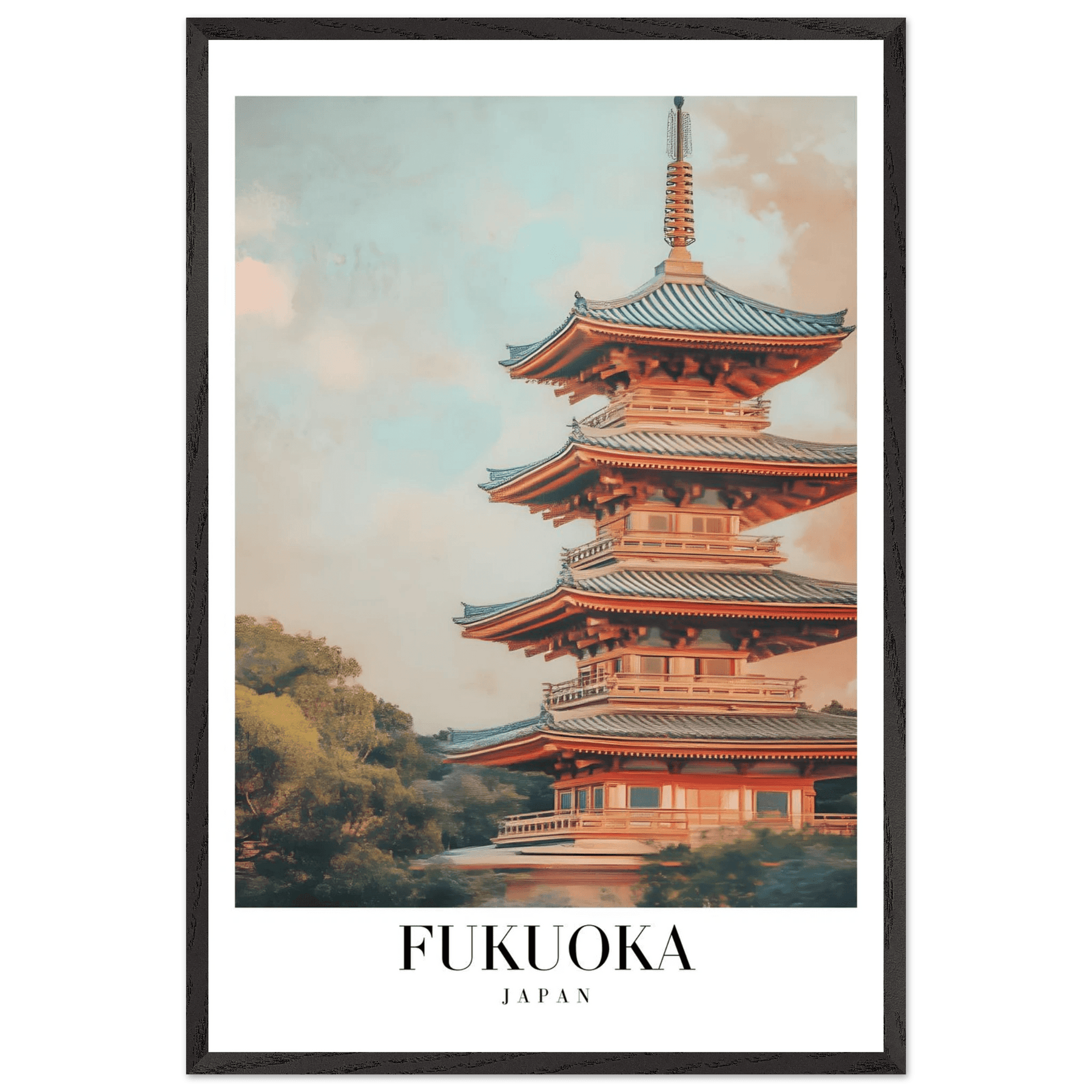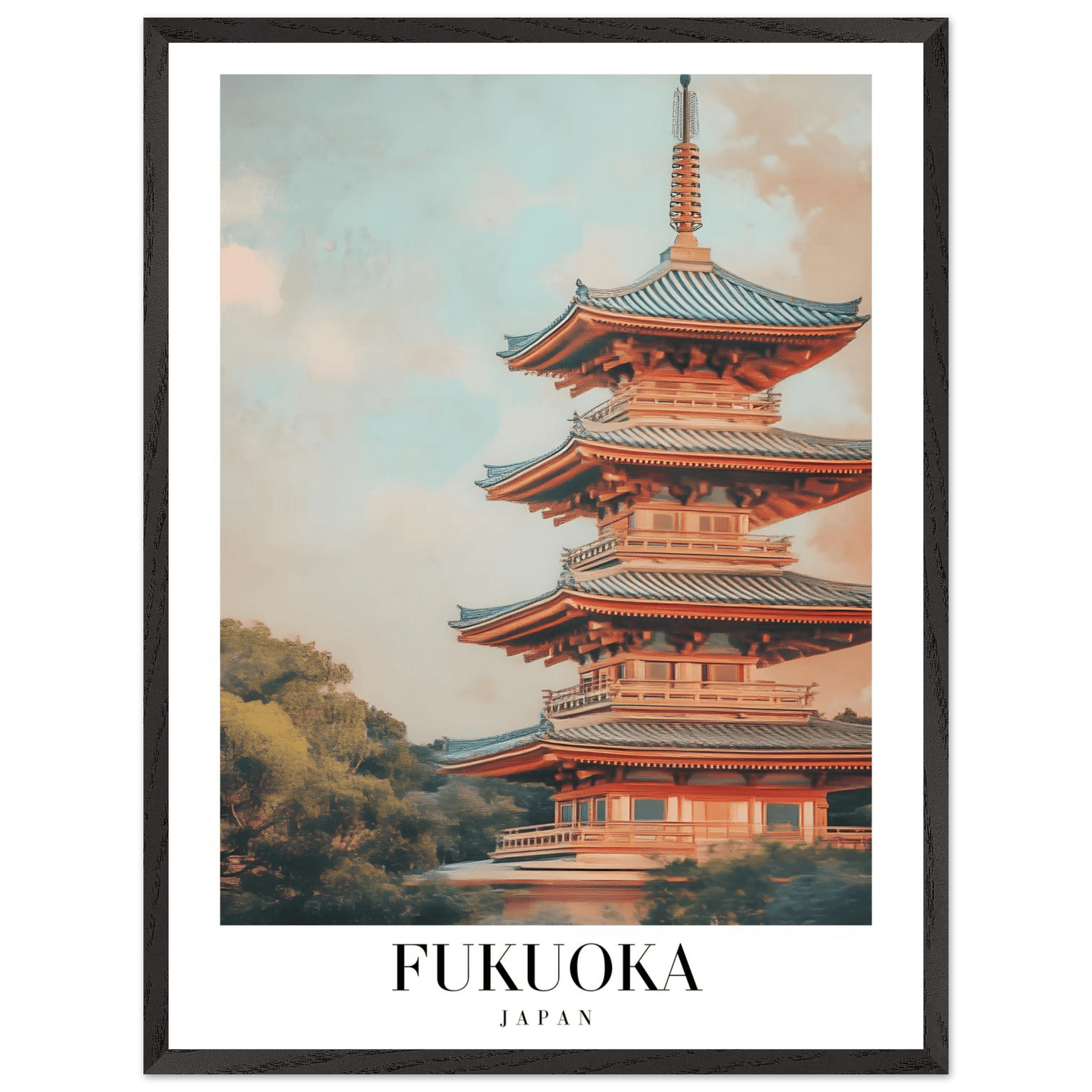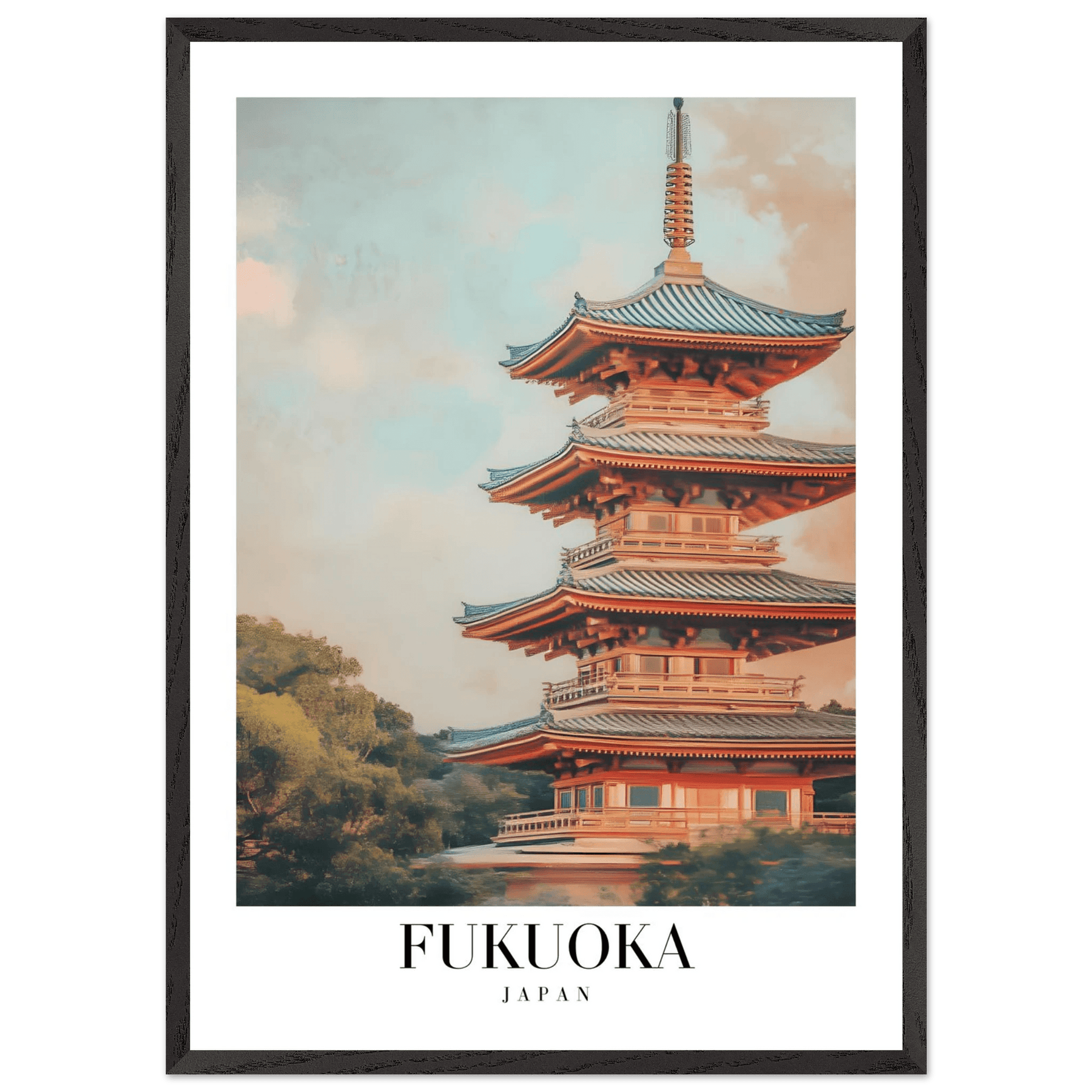 Fukuoka Japan Vintage Pagoda Framed Poster – Serene Travel Wall Art with Wooden Frame