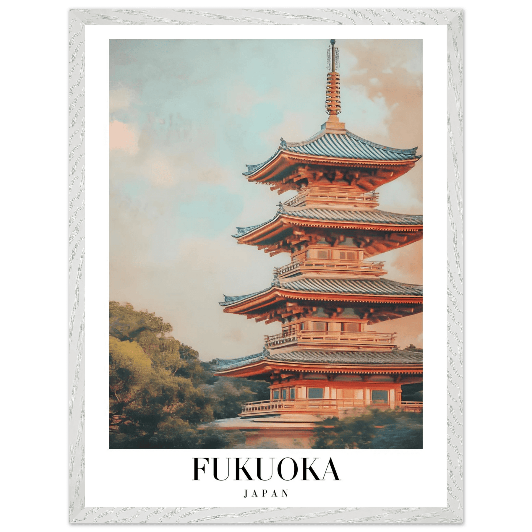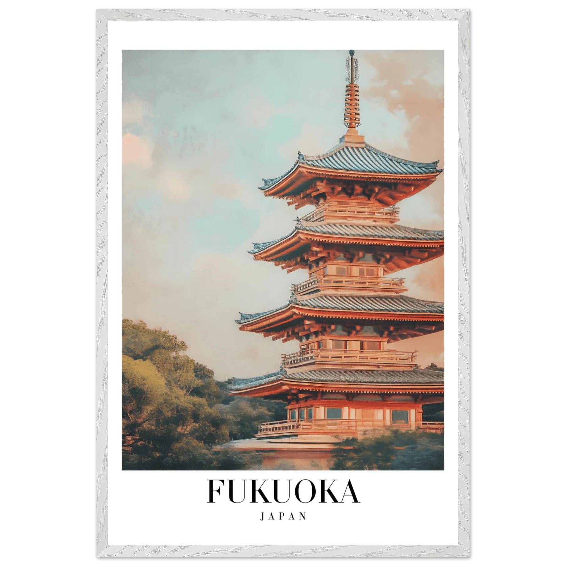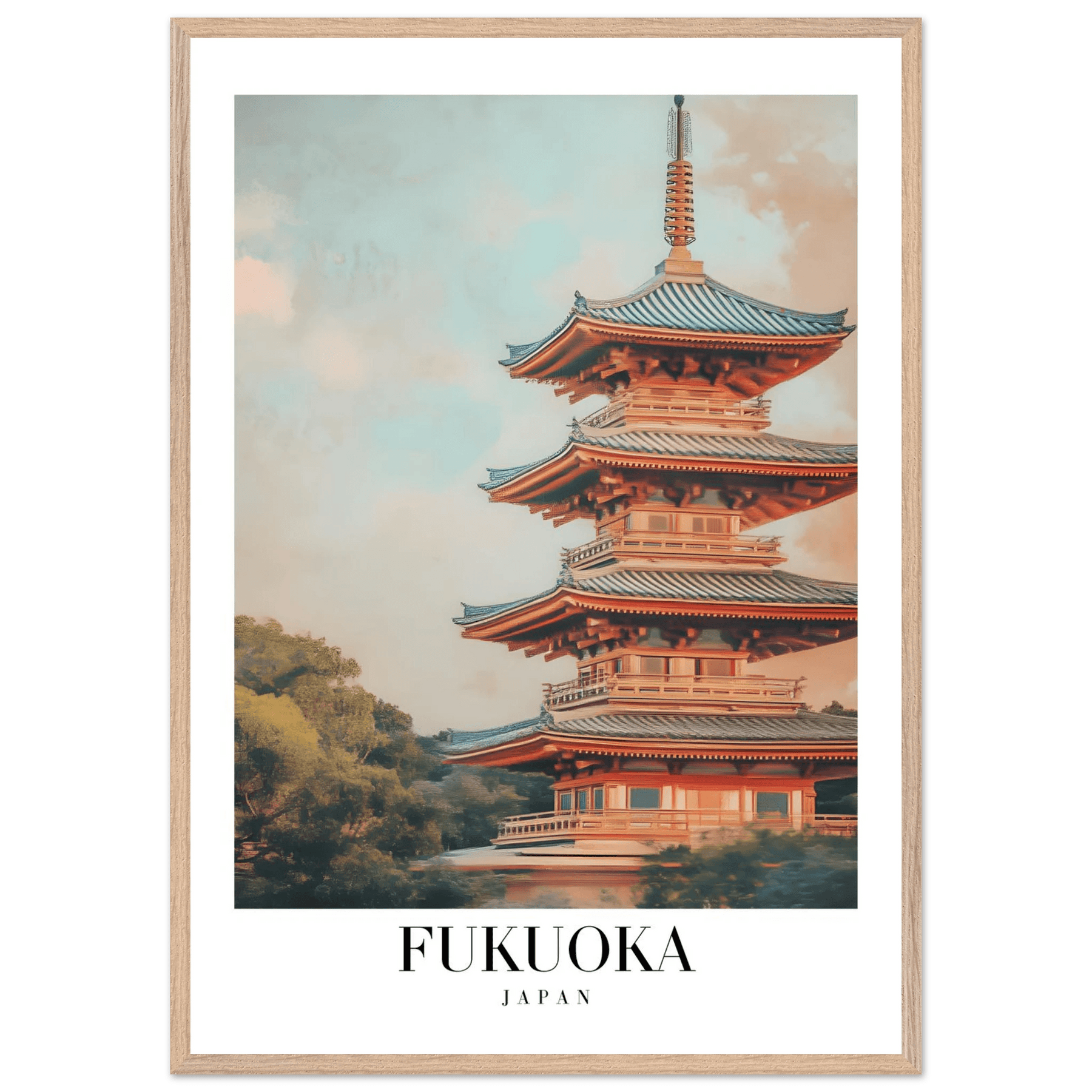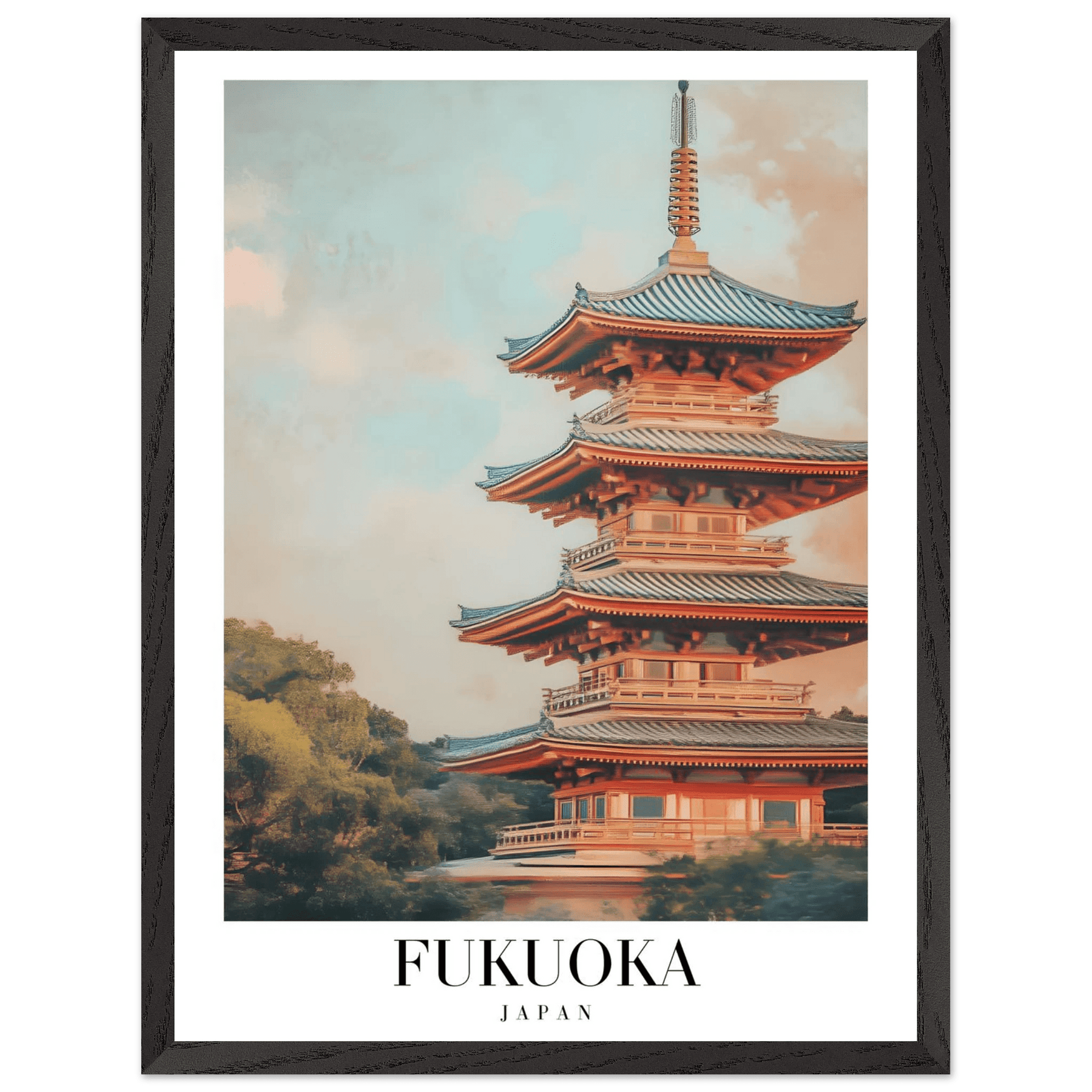 Fukuoka Japan Vintage Pagoda Framed Poster – Serene Travel Wall Art with Wooden Frame