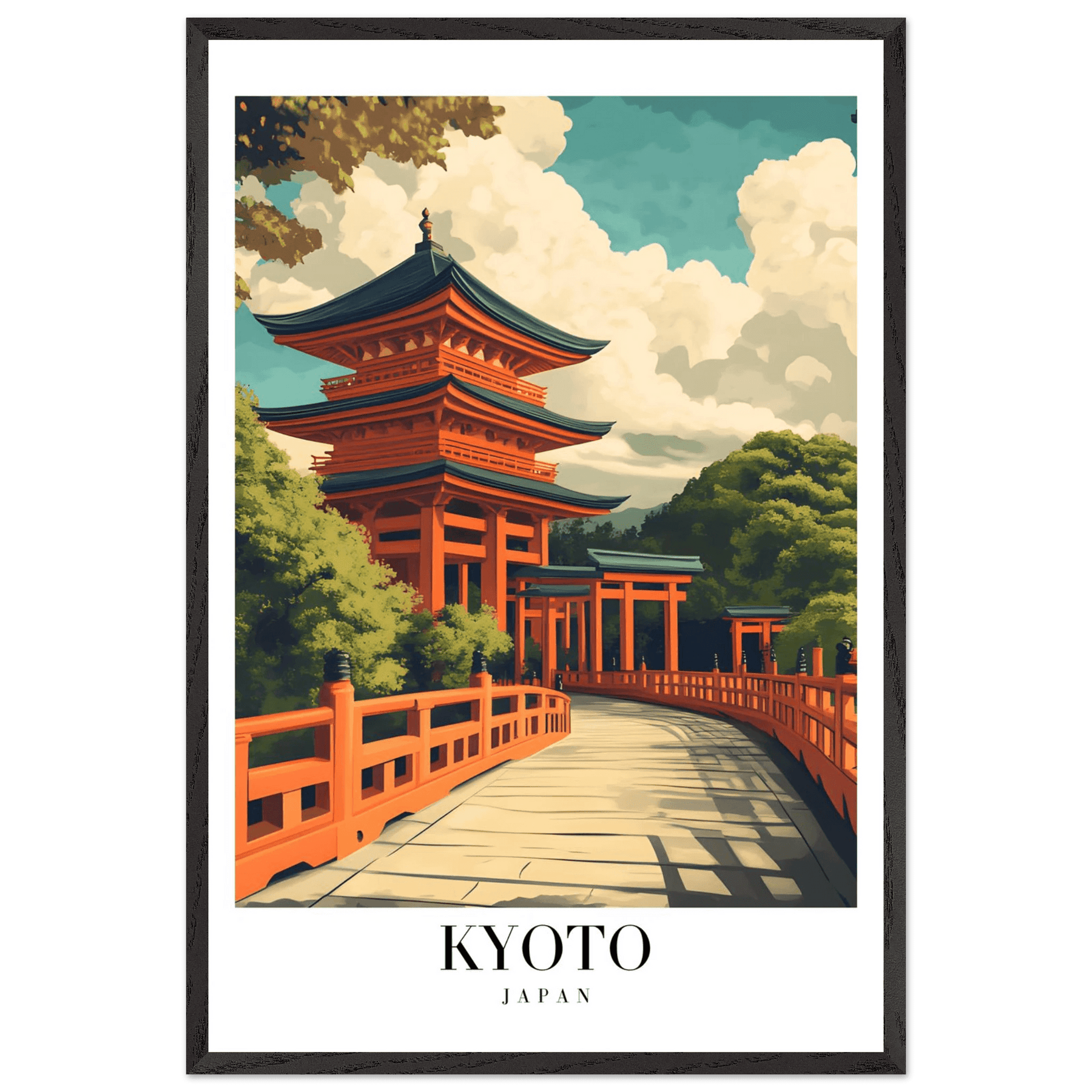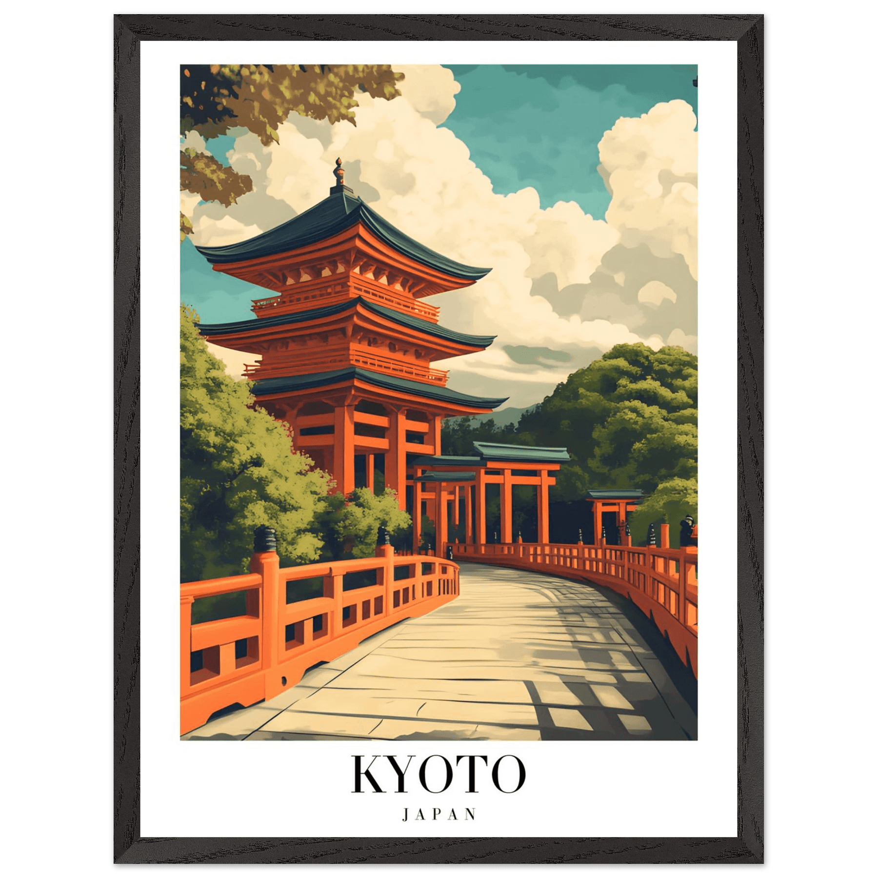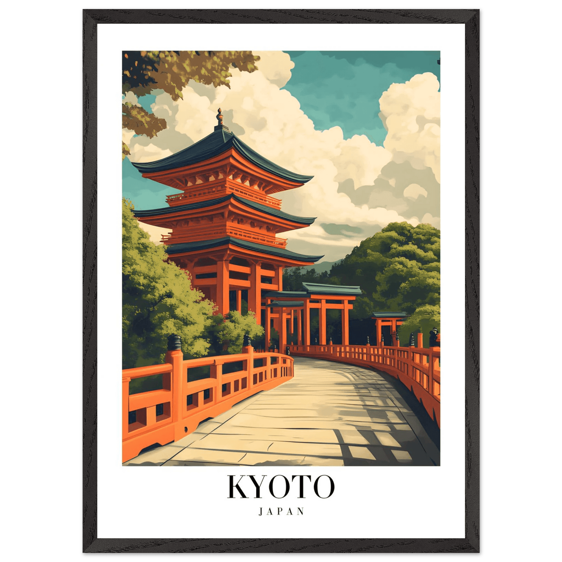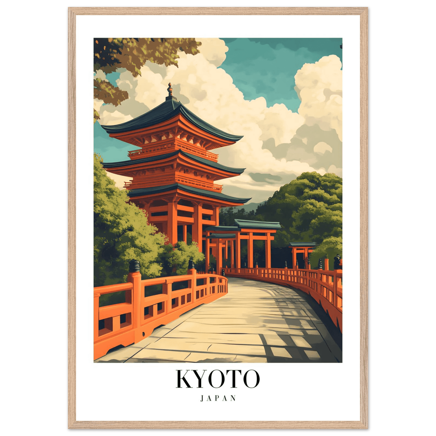 Kyoto Japan Pagoda Framed Poster – Japanese Temple Wall Art in Vibrant Orange with Wooden Frame