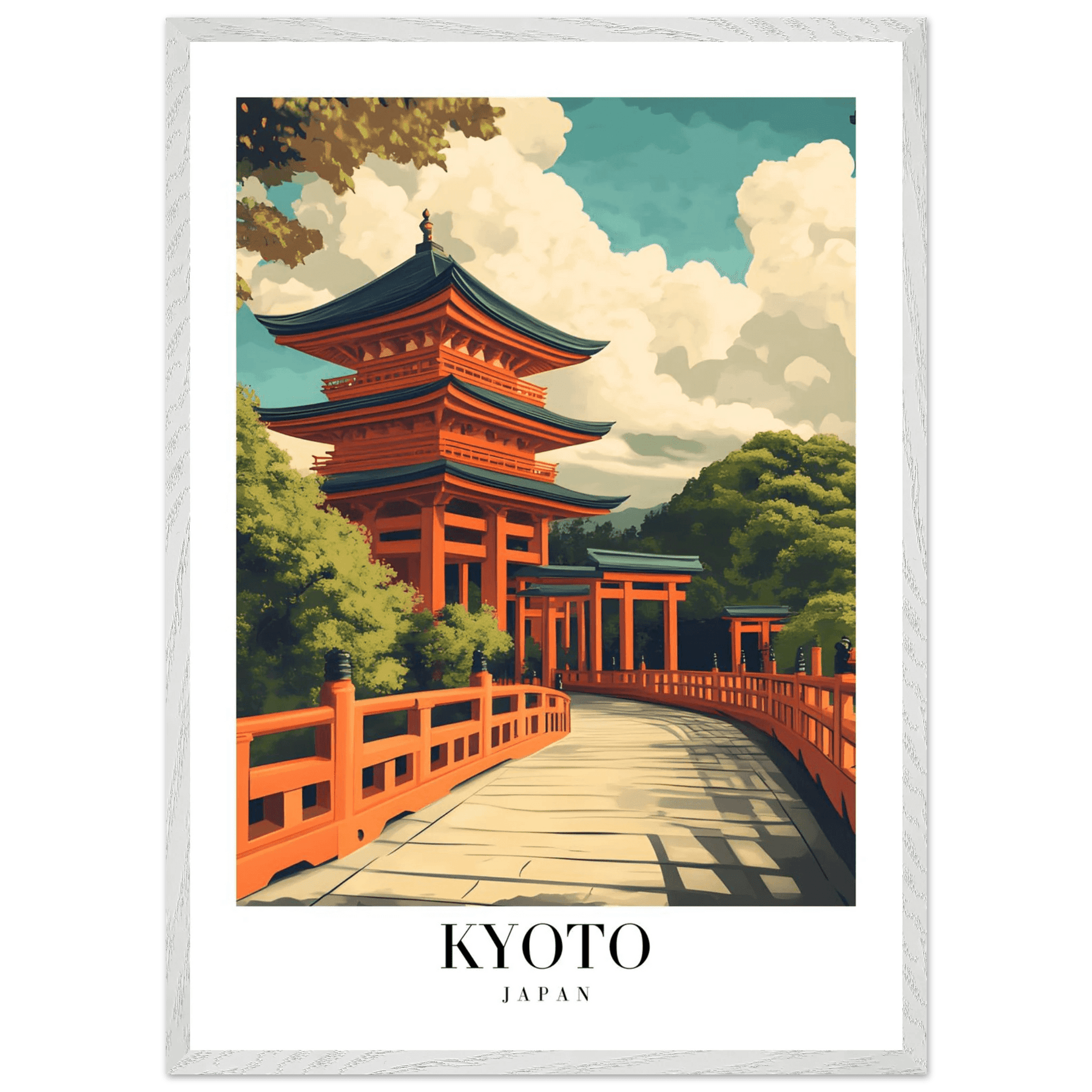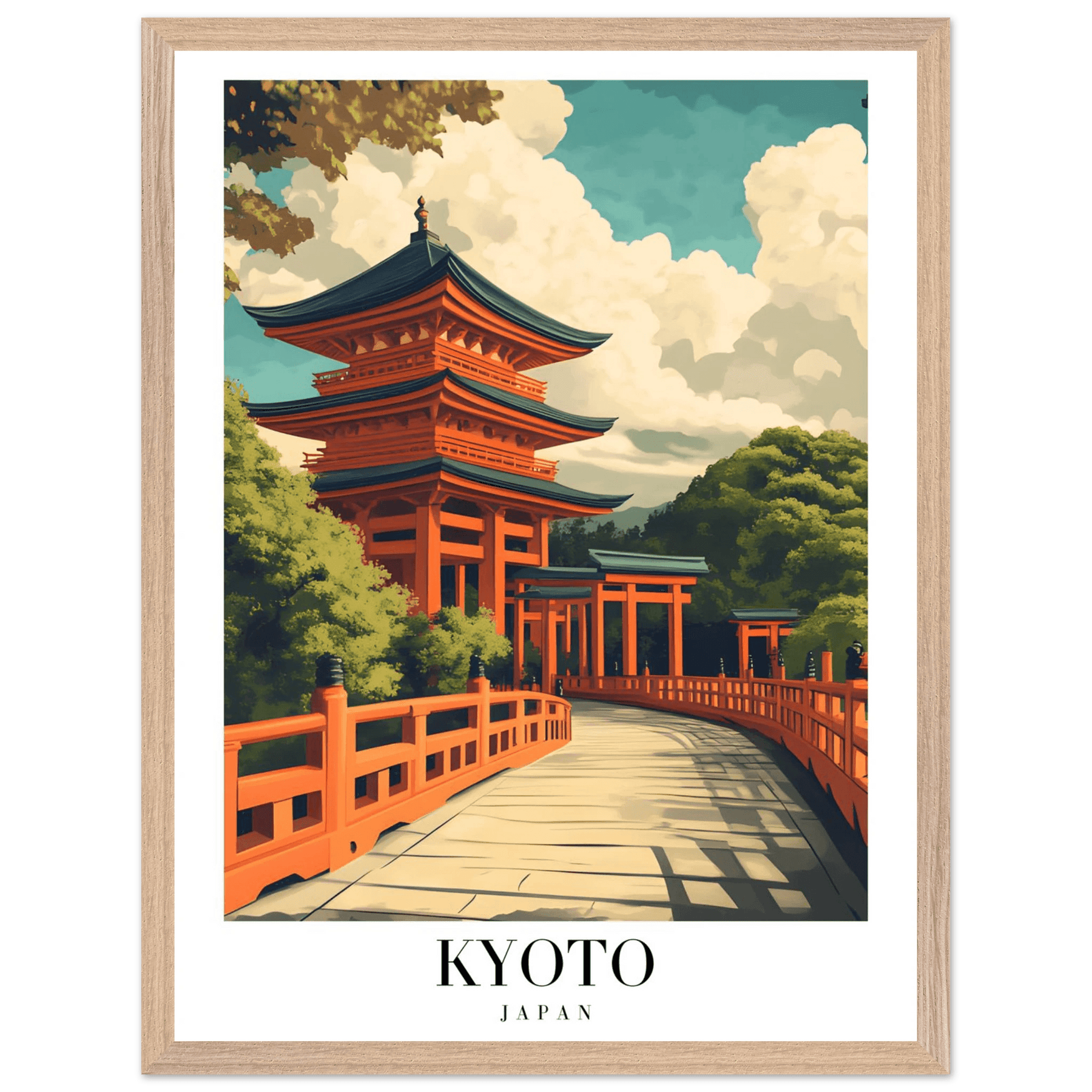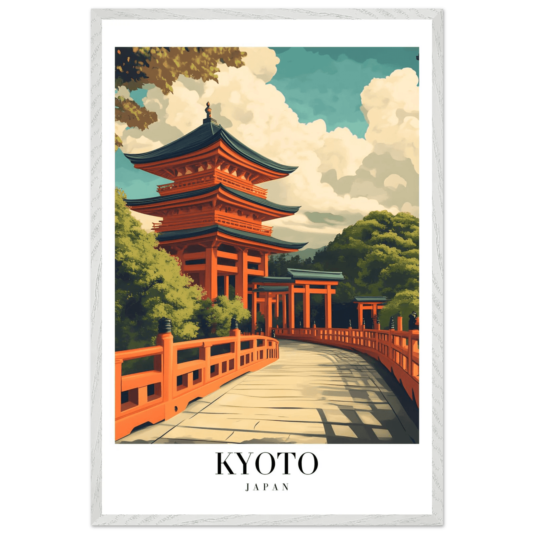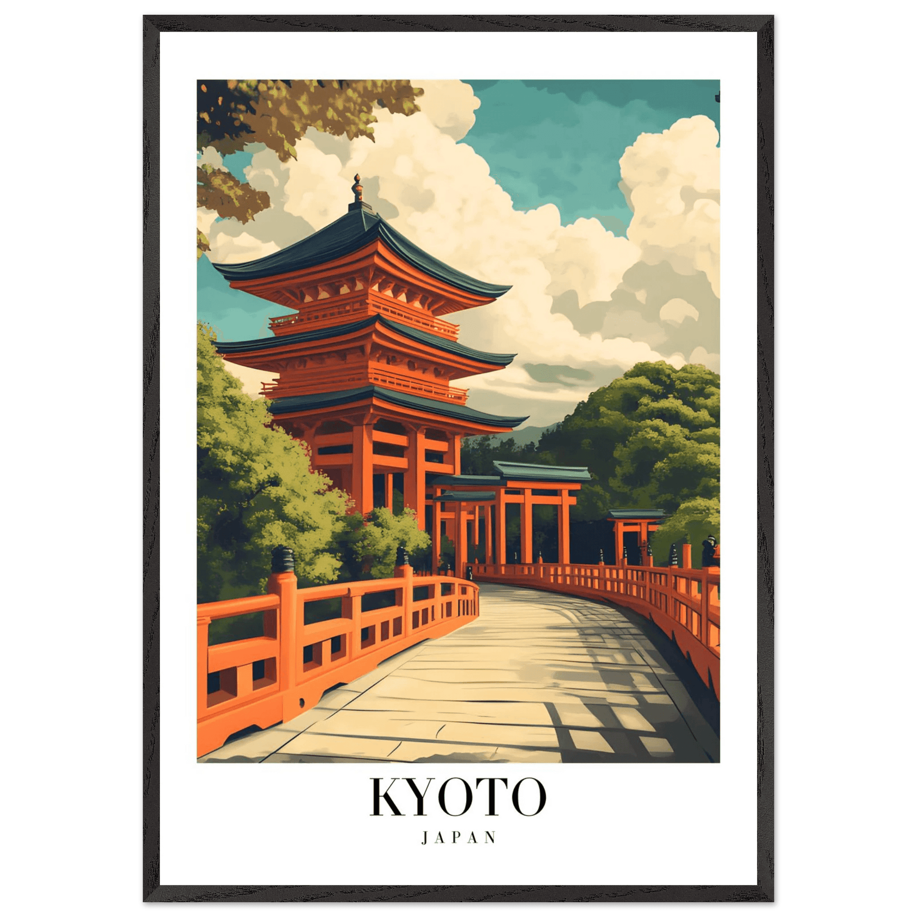 Kyoto Japan Pagoda Framed Poster – Japanese Temple Wall Art in Vibrant Orange with Wooden Frame