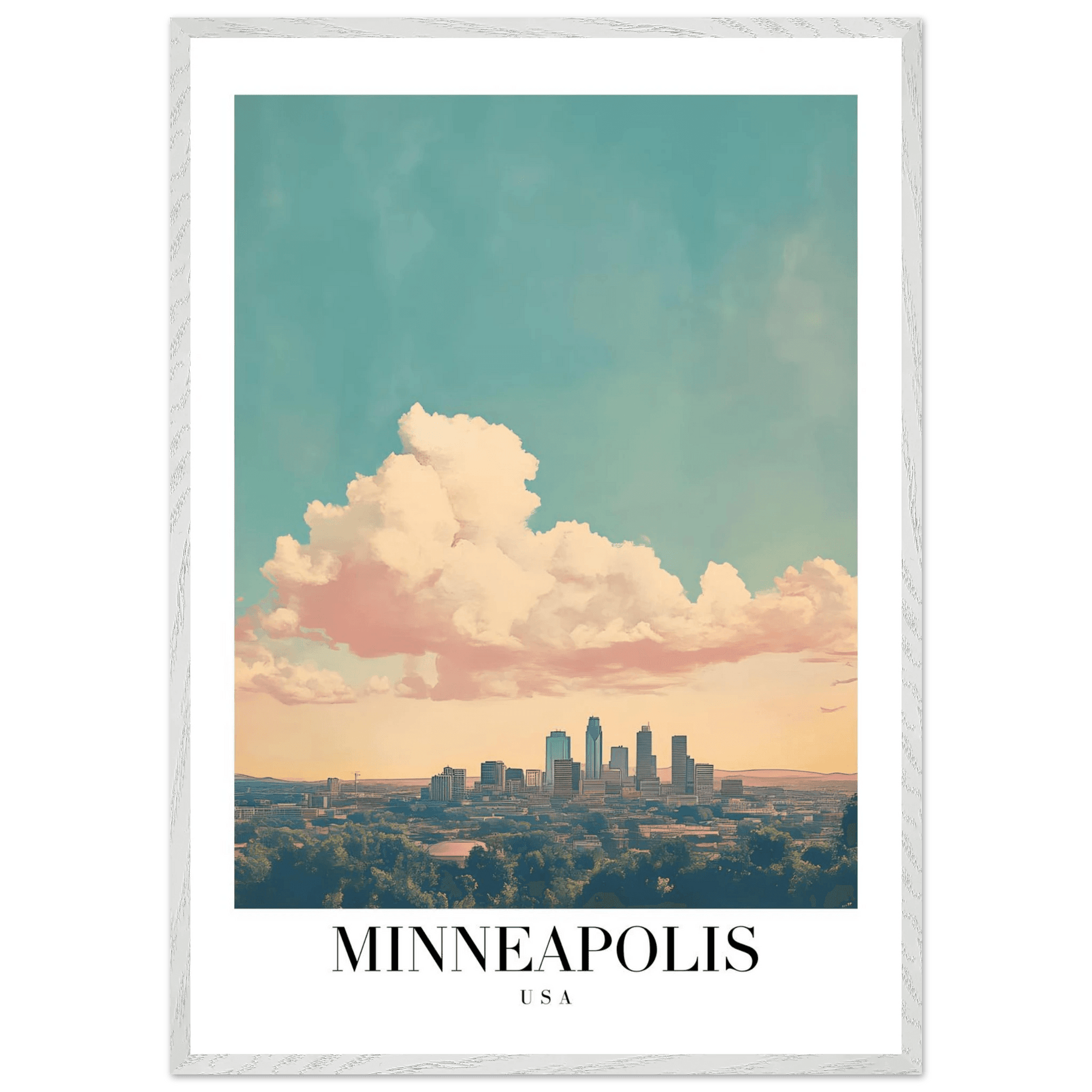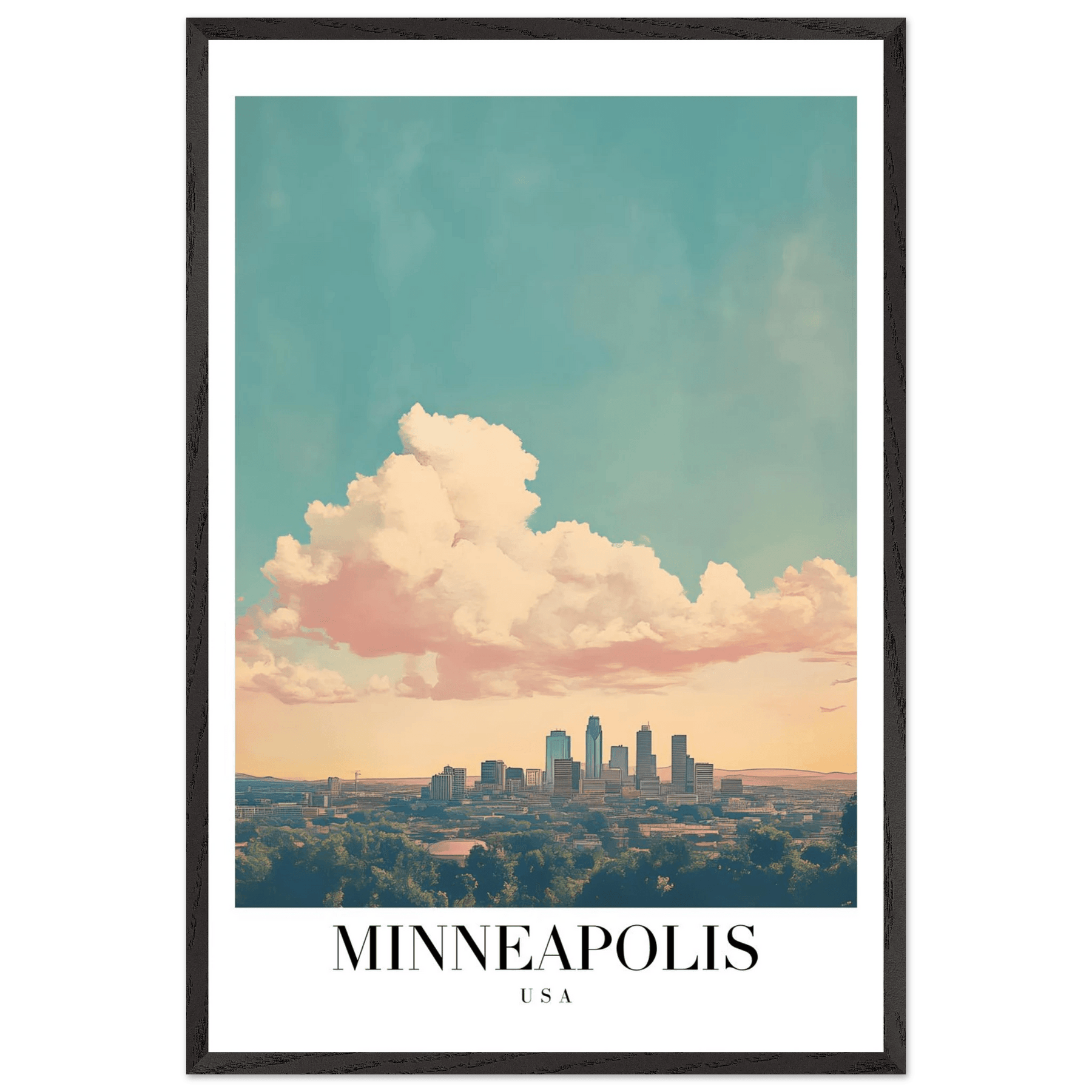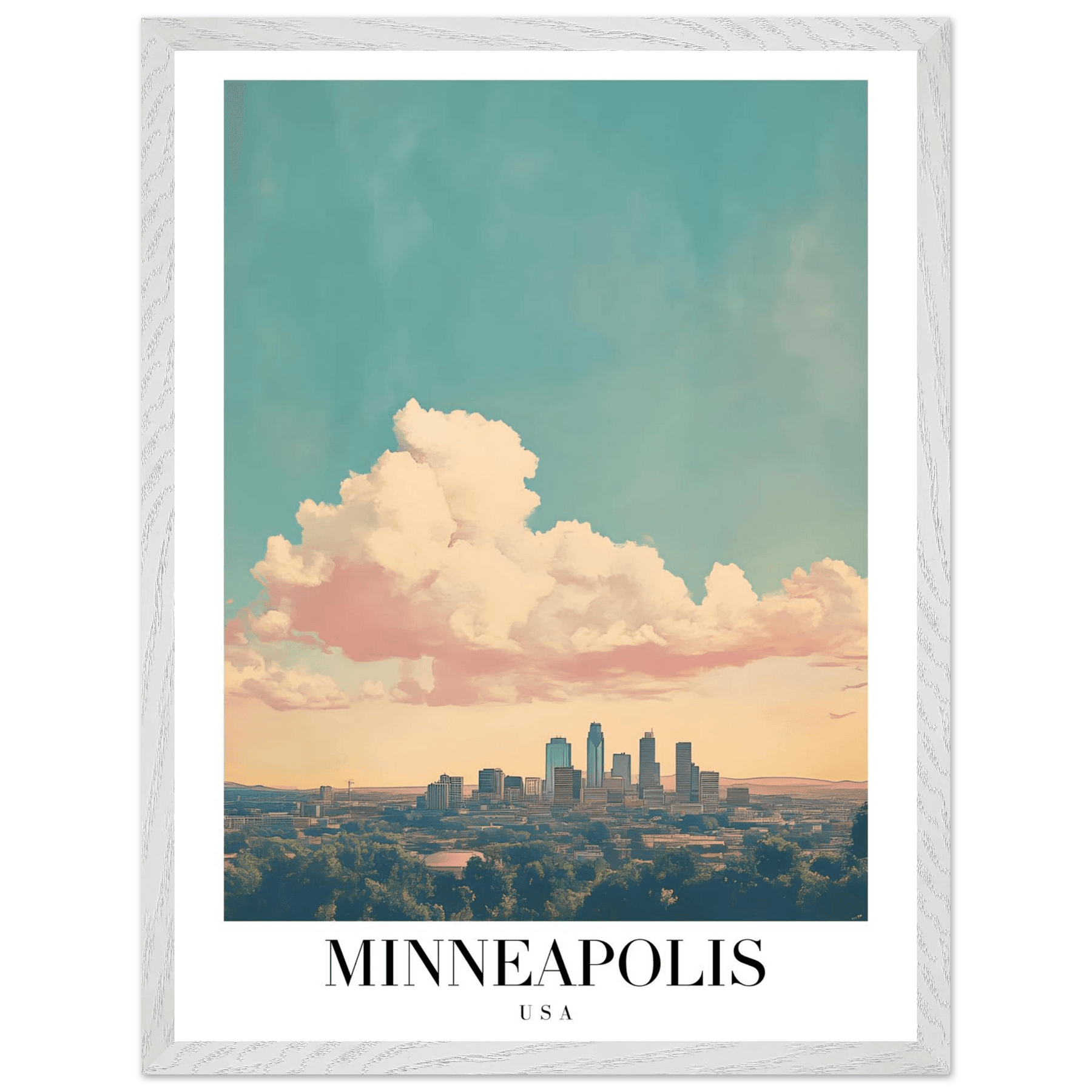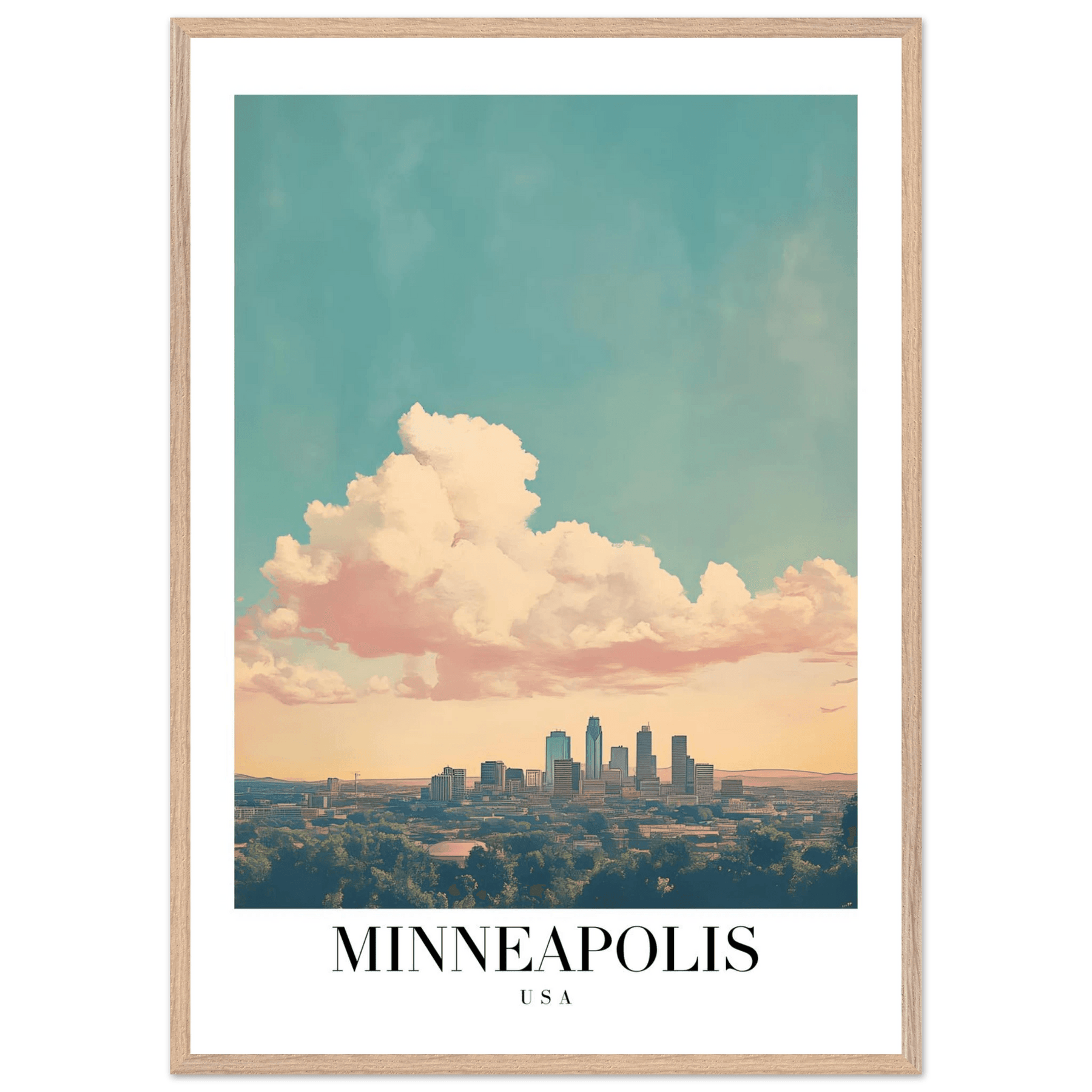Minneapolis USA Framed Poster – Pastel Dream Sky Vintage Cityscape Art with Premium Wooden Frame