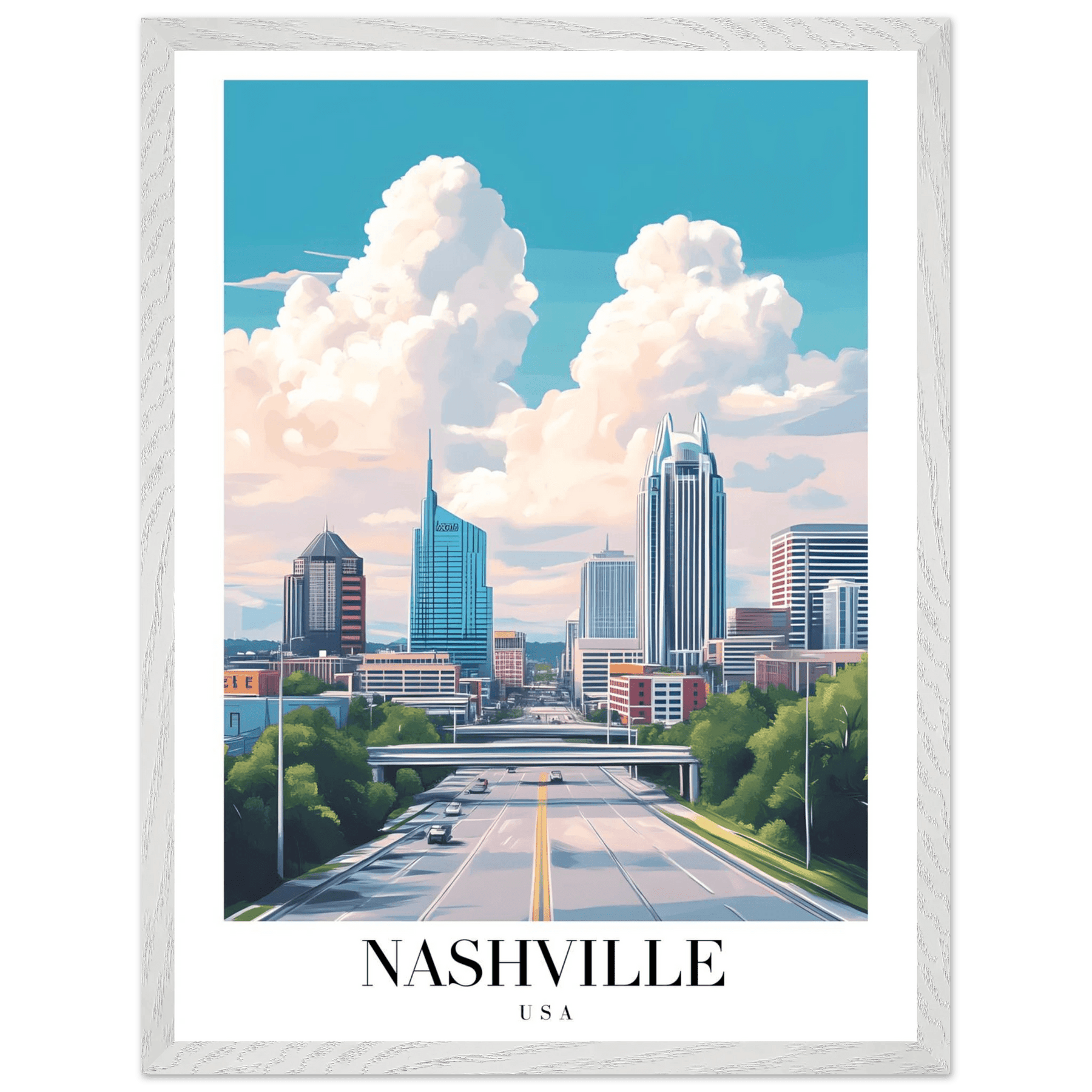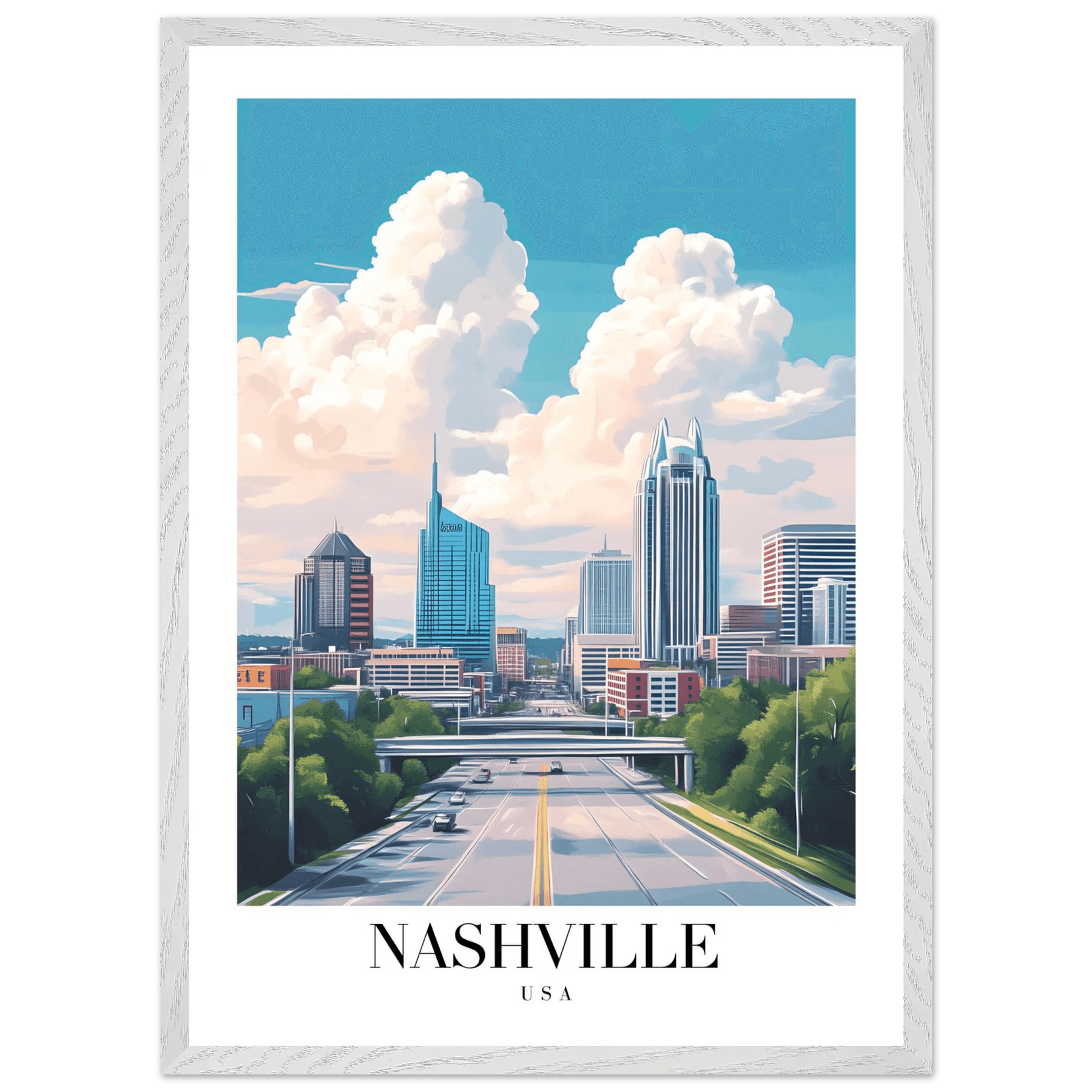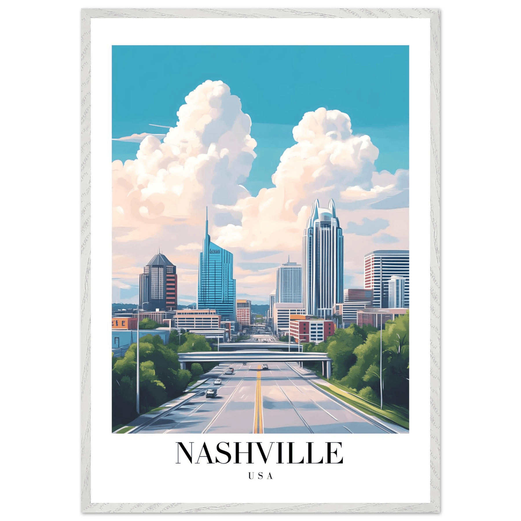 Nashville USA Cityscape Framed Poster – Modern Travel Wall Art with Wooden Frame & Your Choice of Size