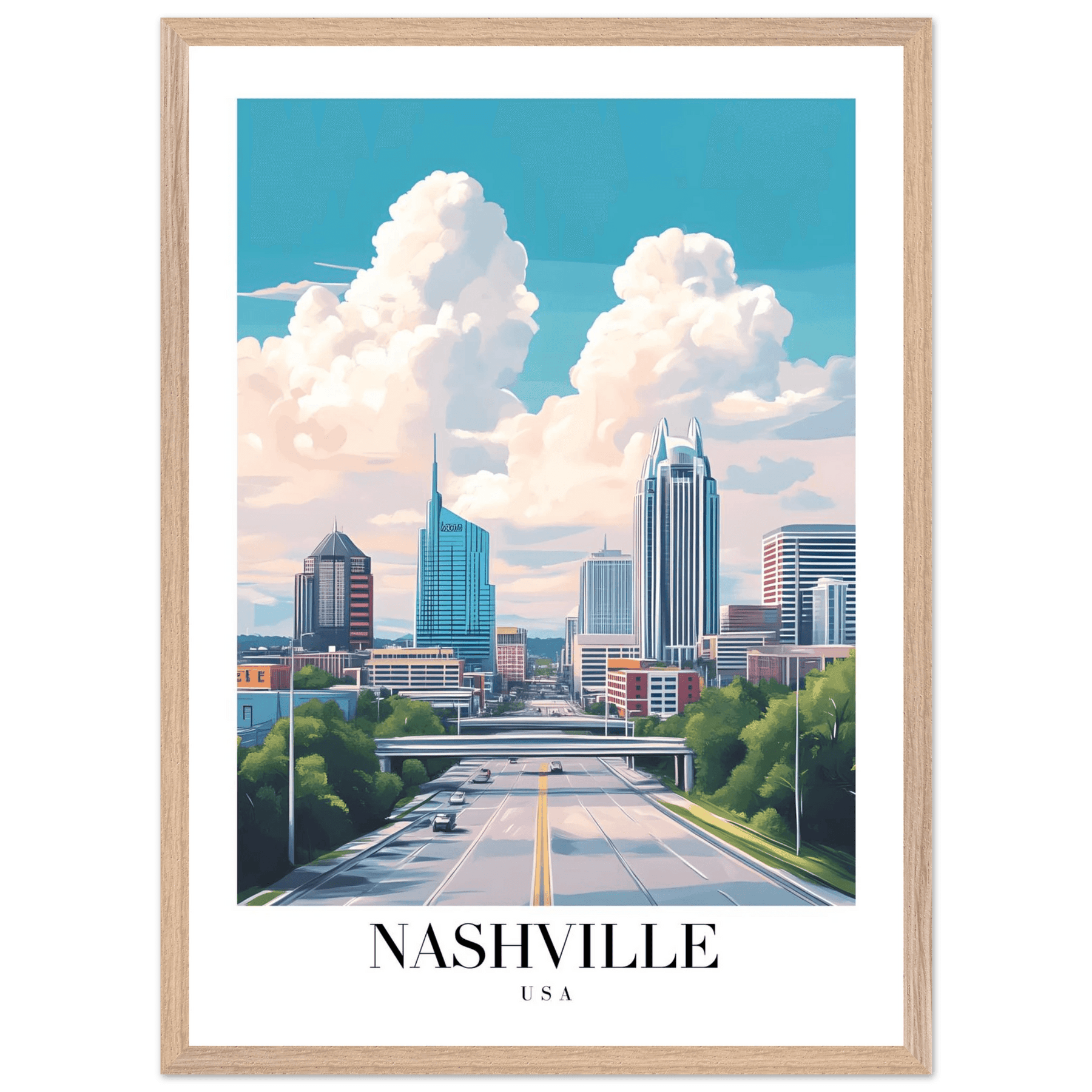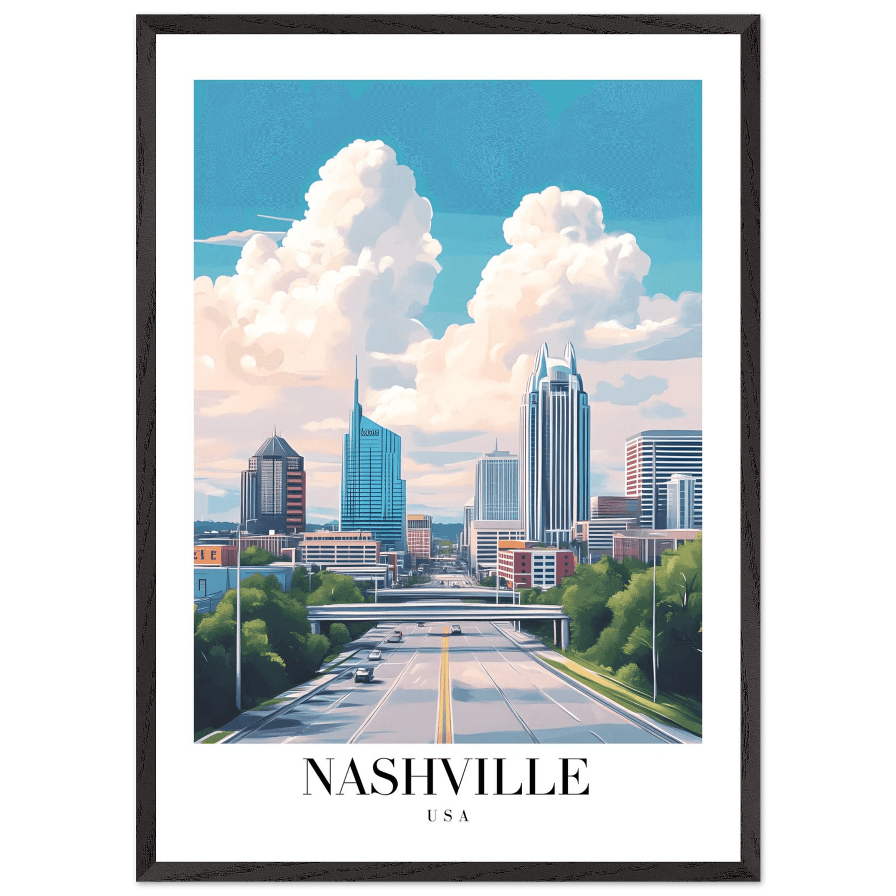 Nashville USA Cityscape Framed Poster – Modern Travel Wall Art with Wooden Frame & Your Choice of Size - Vibrantwalls