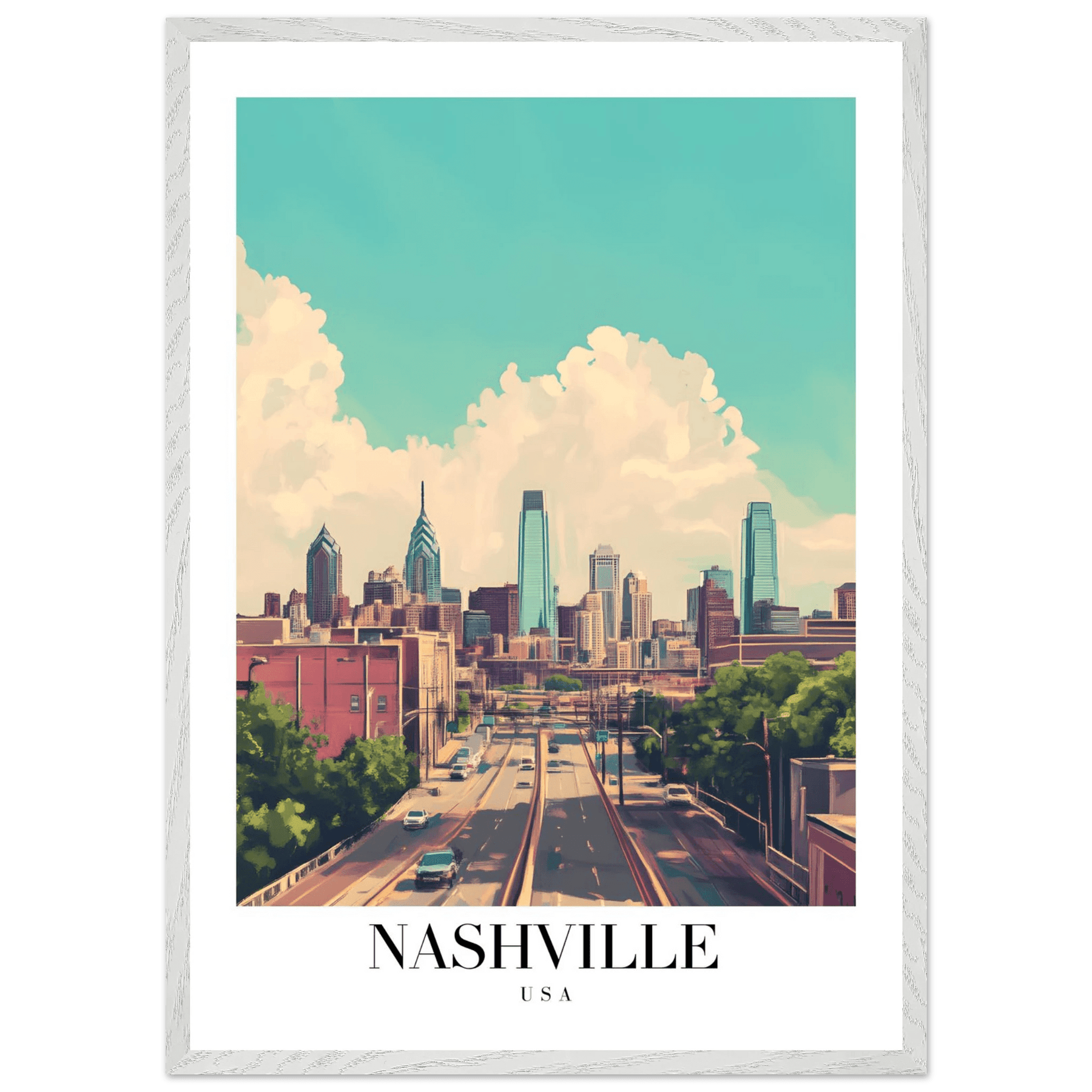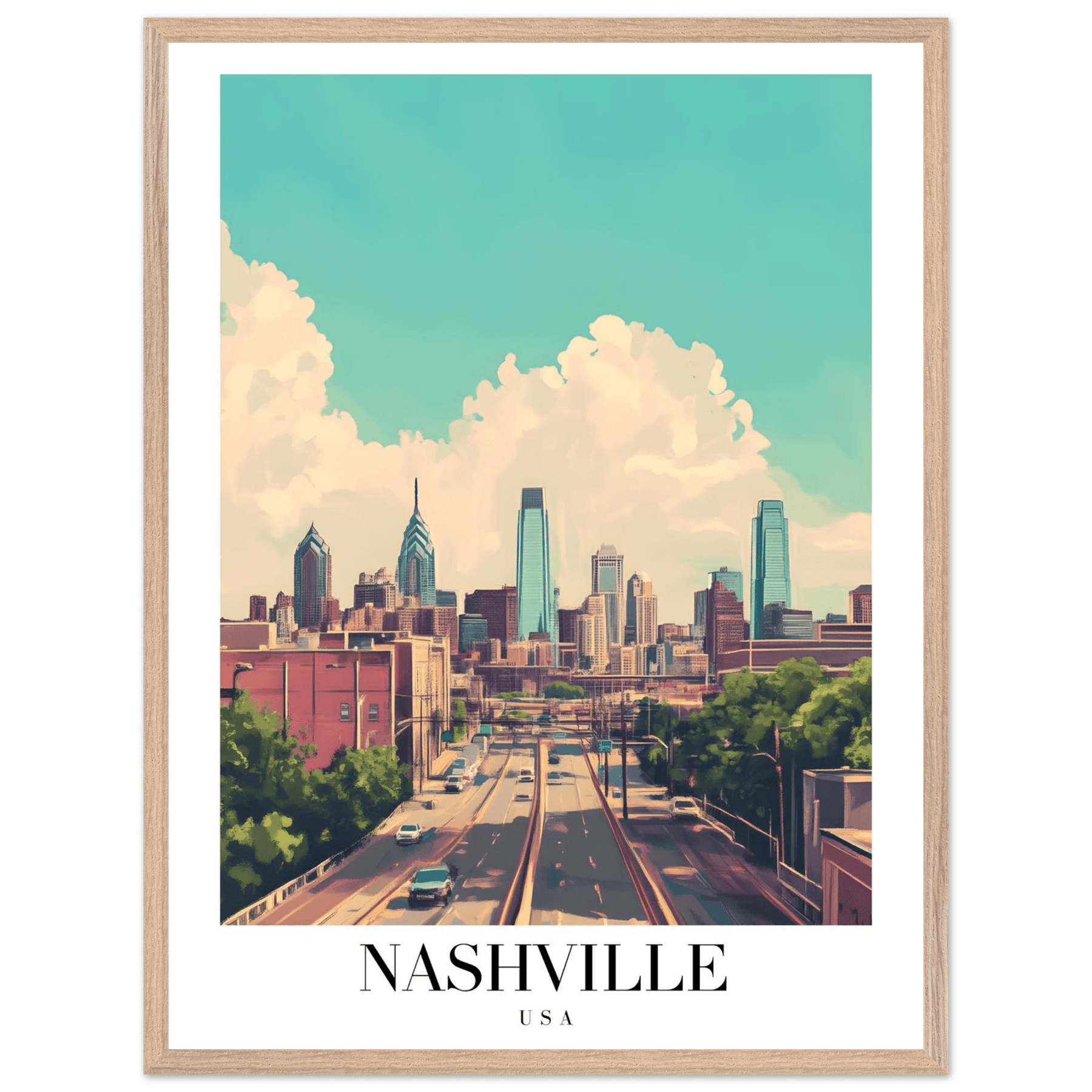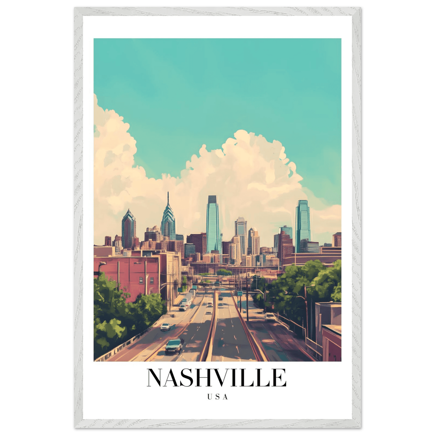 Nashville USA Framed Poster – Vibrant Urban Wall Art with Wooden Frame