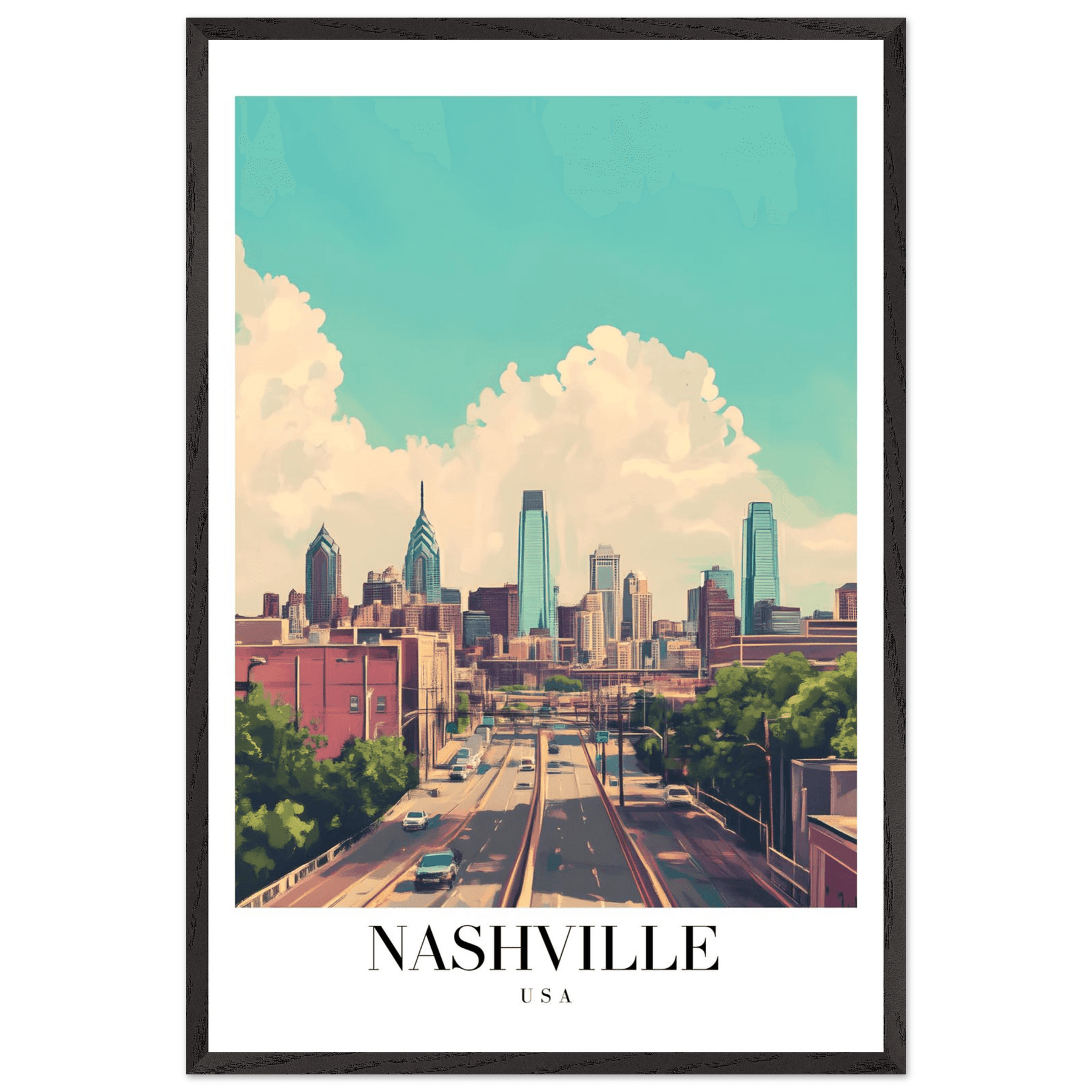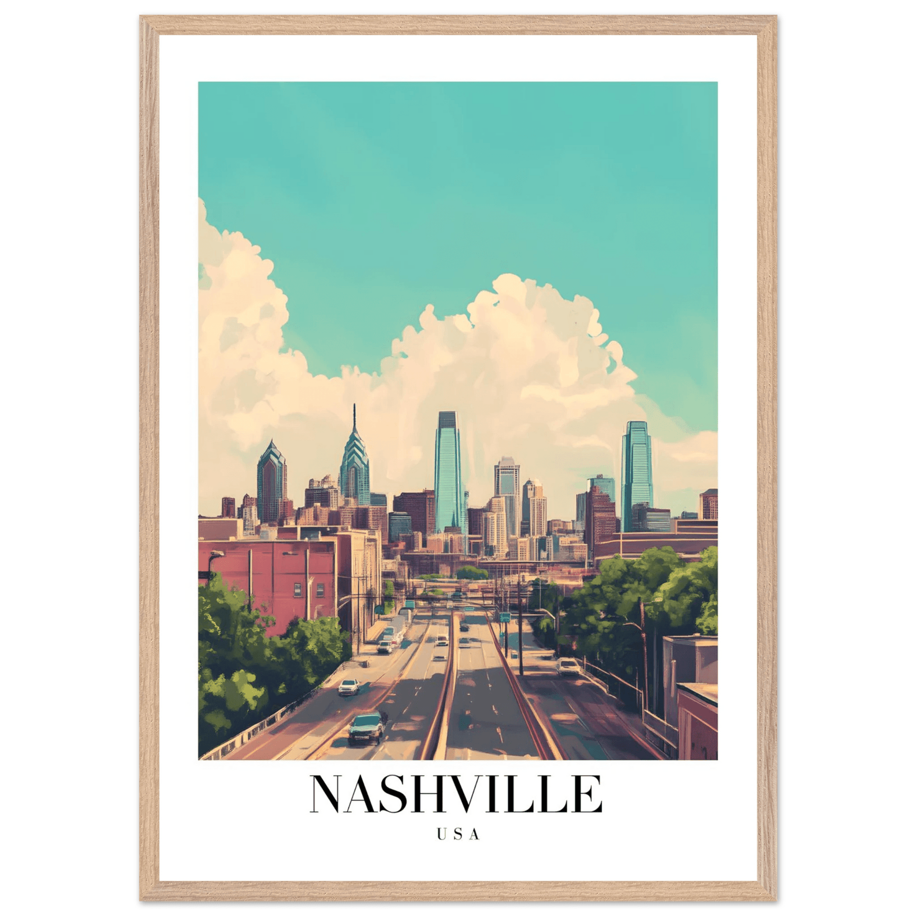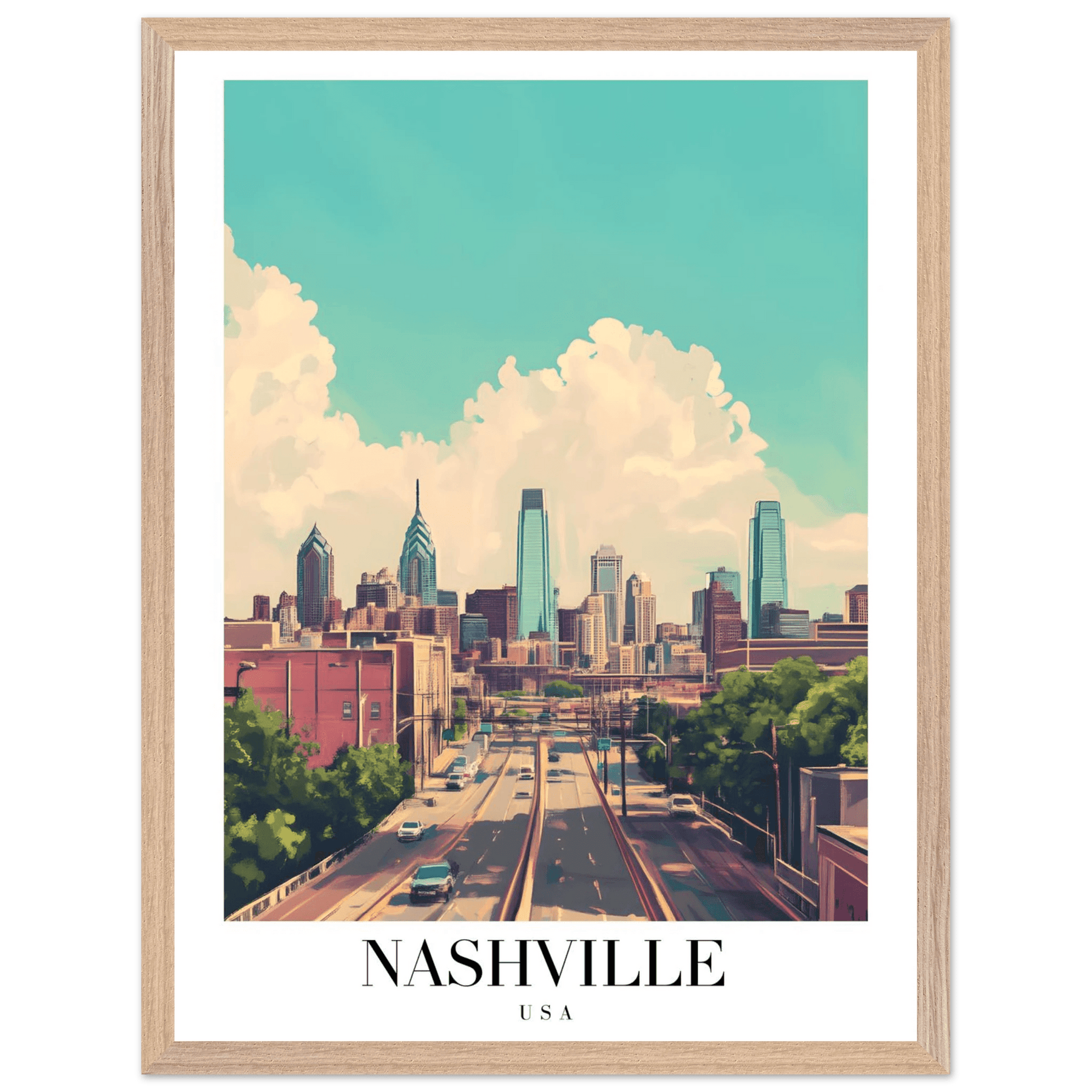 Nashville USA Framed Poster – Vibrant Urban Wall Art with Wooden Frame