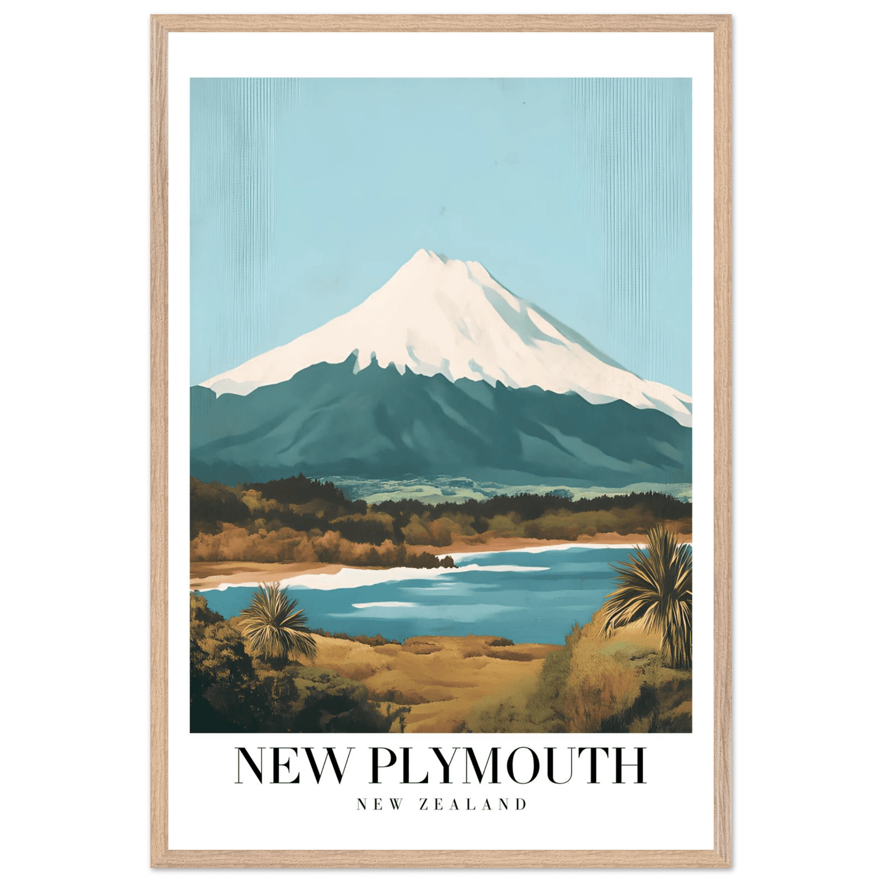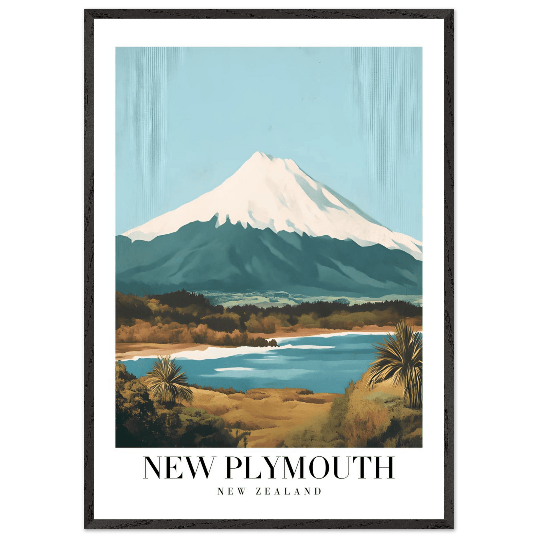New Plymouth New Zealand Framed Poster – Vintage Mount Taranaki Travel Art
