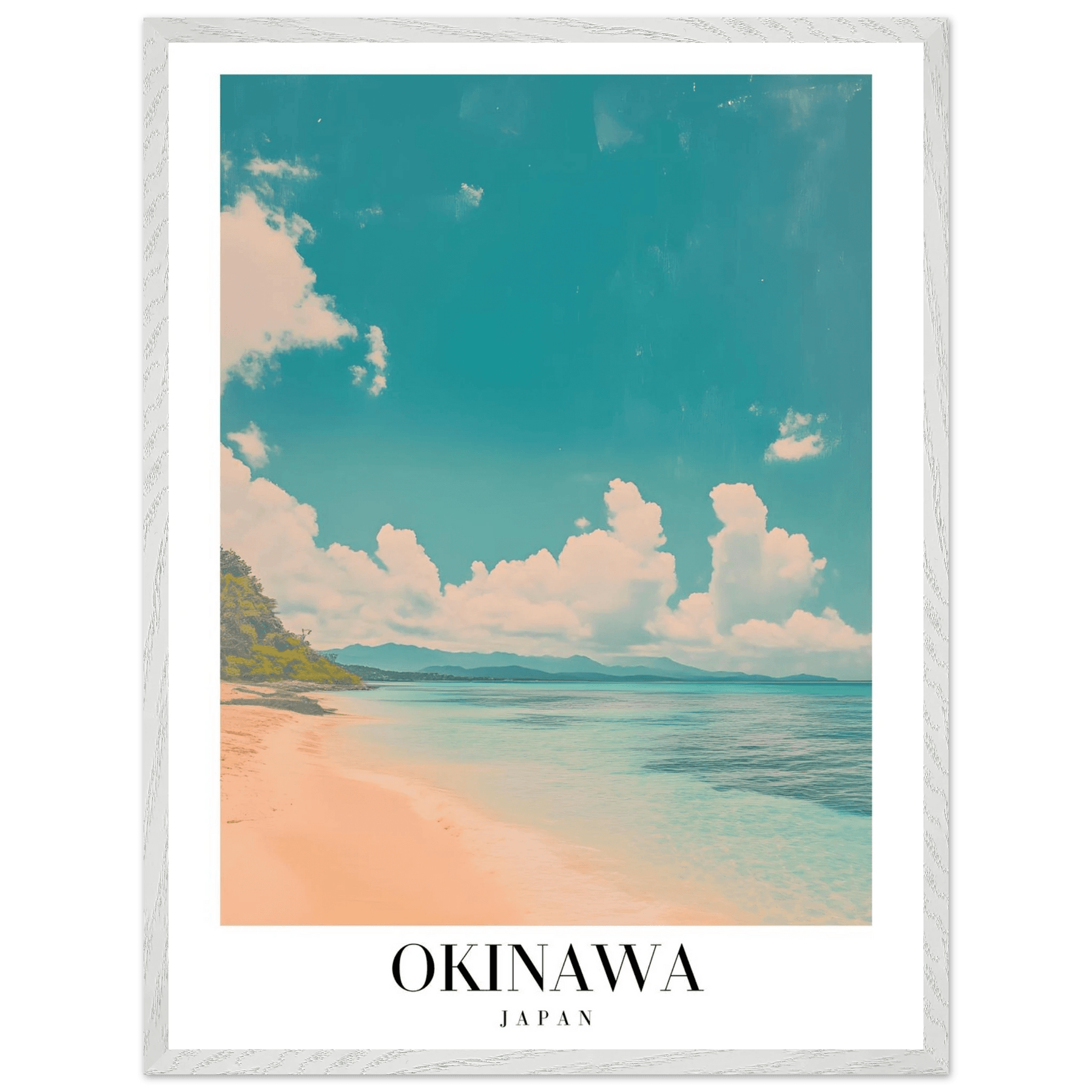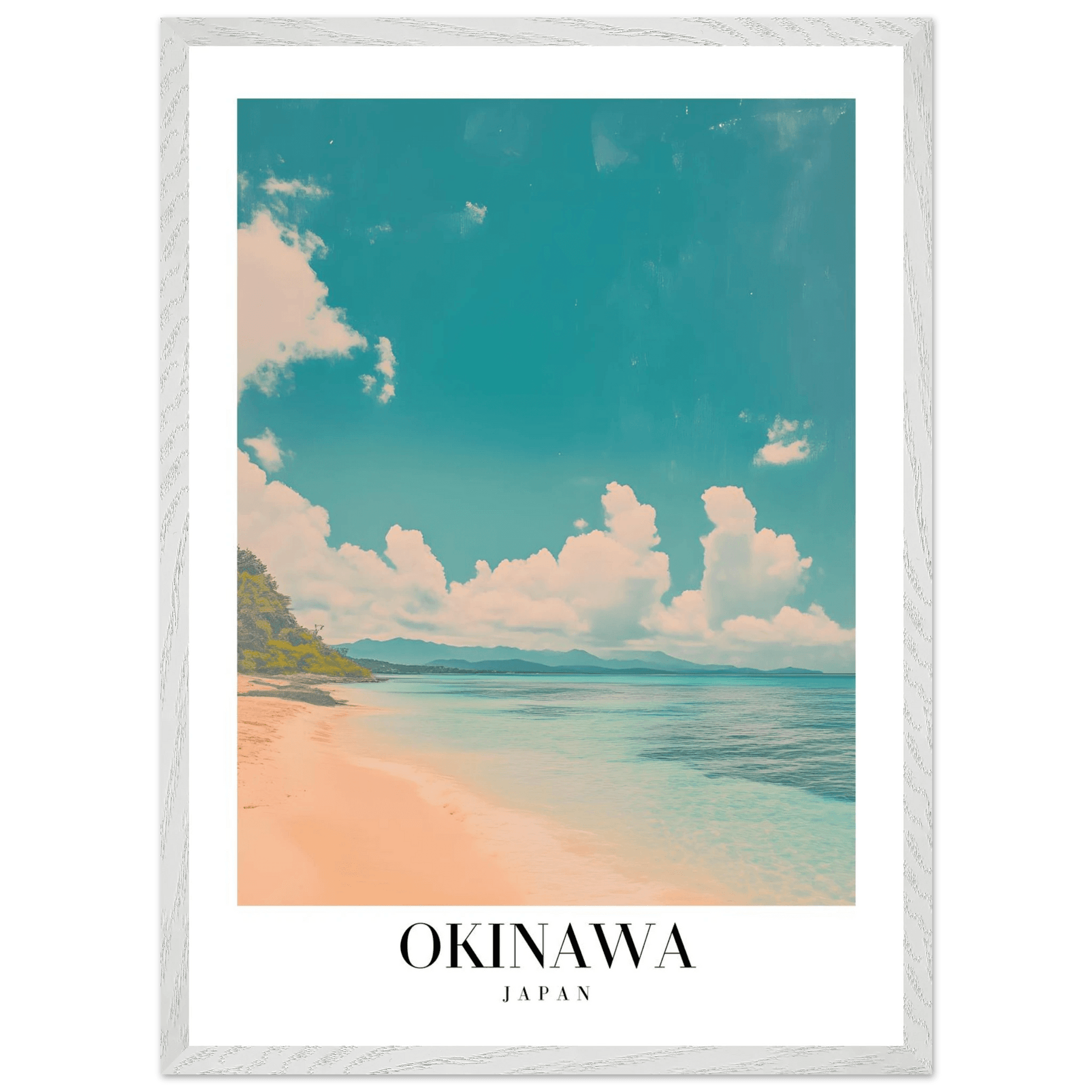Instilling a sense of tranquility and wanderlust, the Okinawa Japan Framed Poster – Vintage Beach Travel Wall Art with Wooden Frame invites you to relive memorable trips or envision new ones. This art piece works best when displayed in well-lit spaces to enhance its color saturation and nature's beauty.