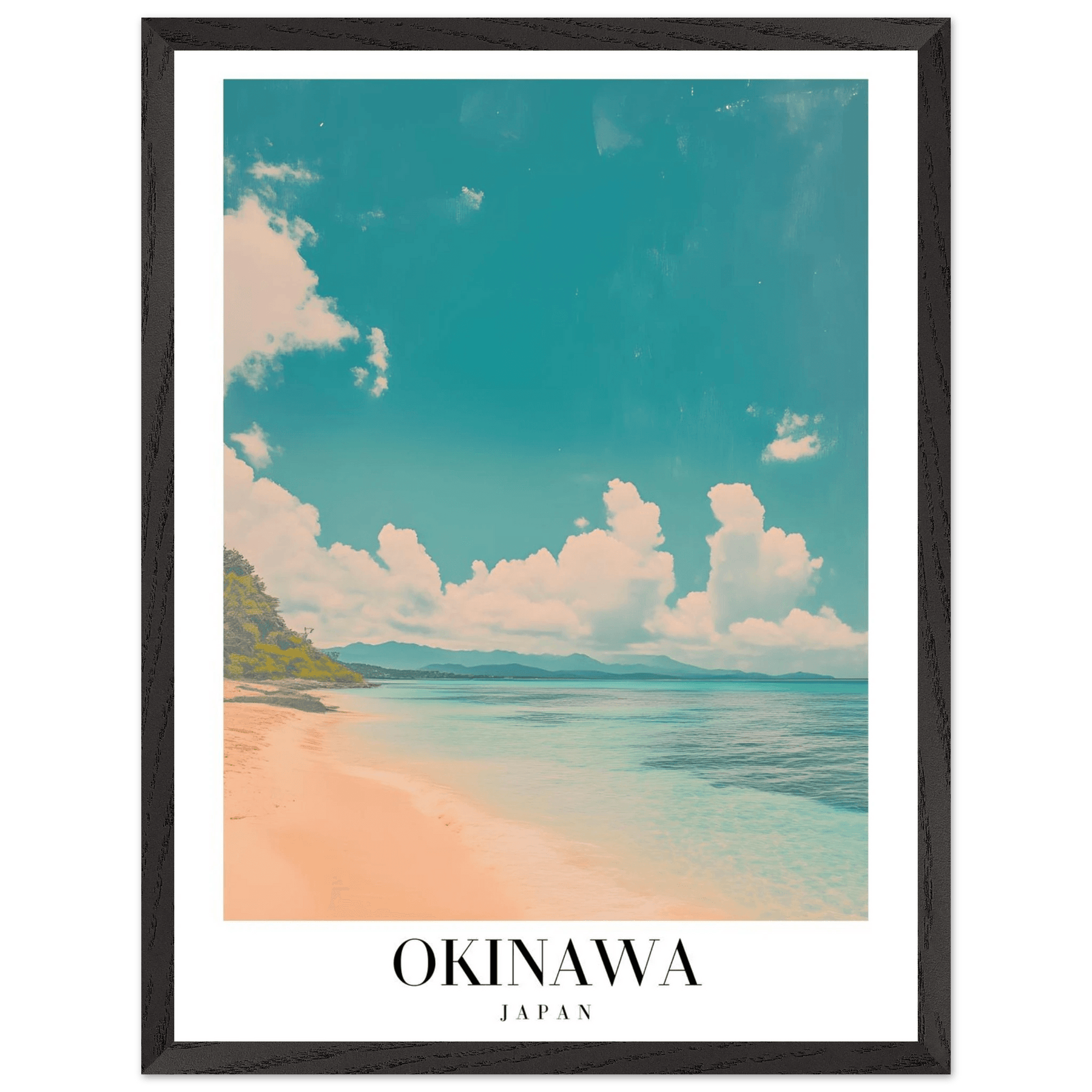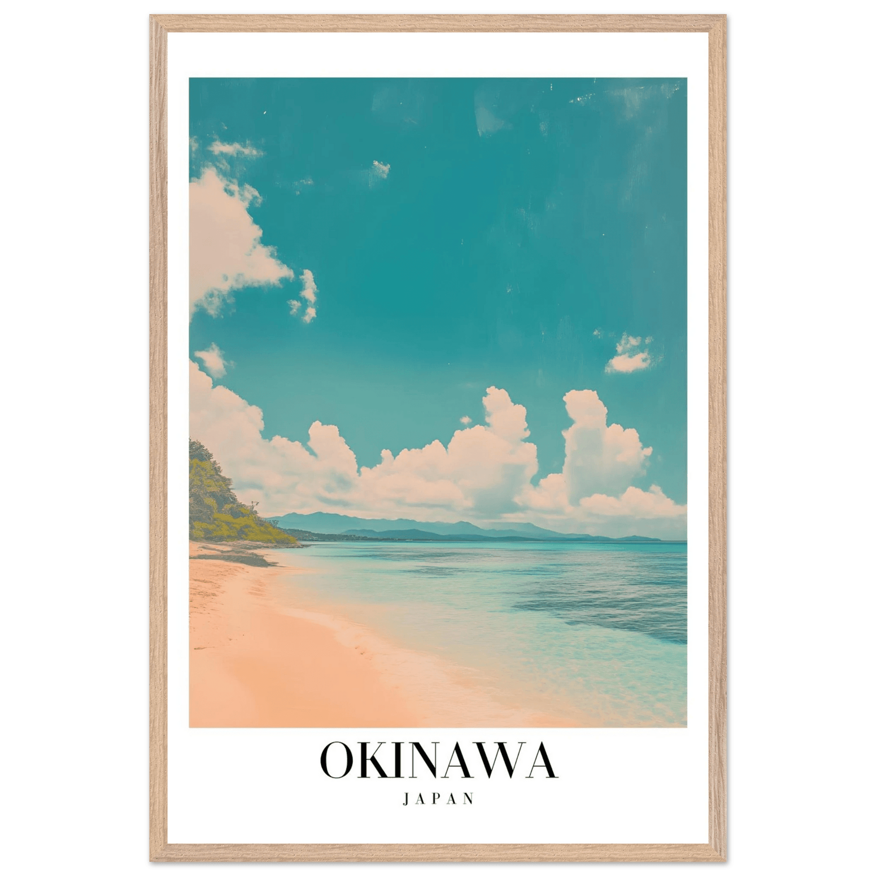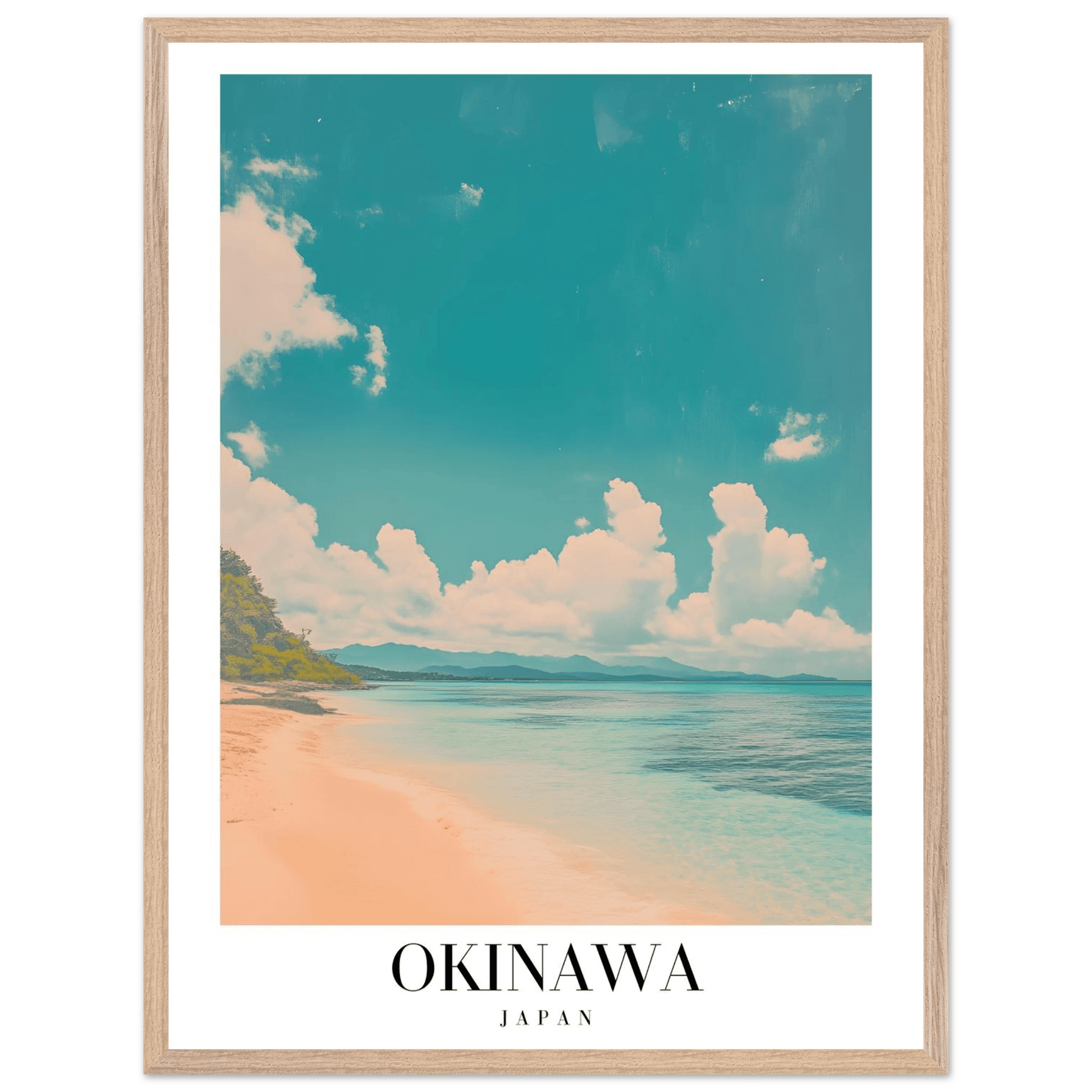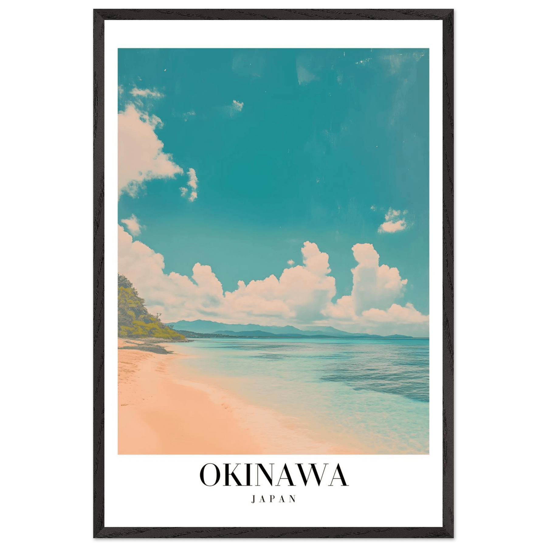 Okinawa Japan Framed Poster – Vintage Beach Travel Wall Art with Wooden Frame