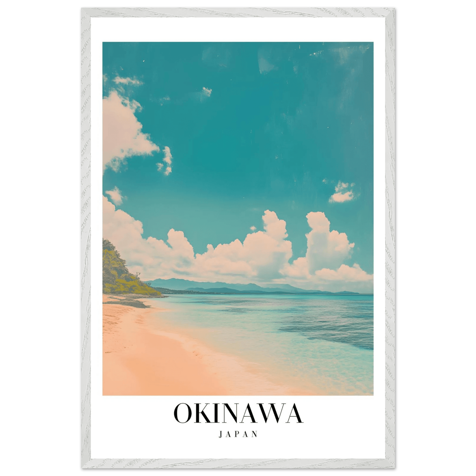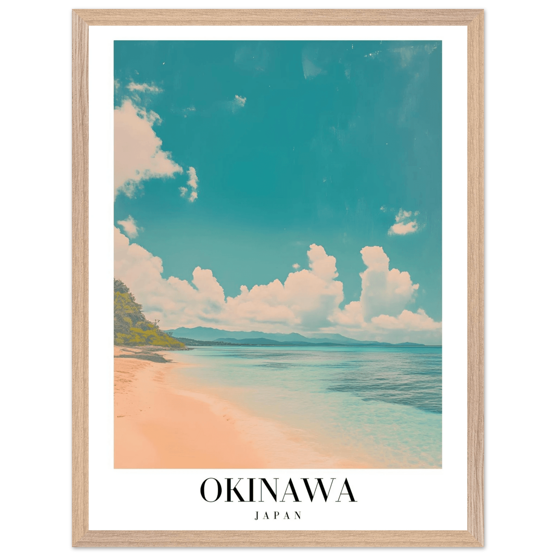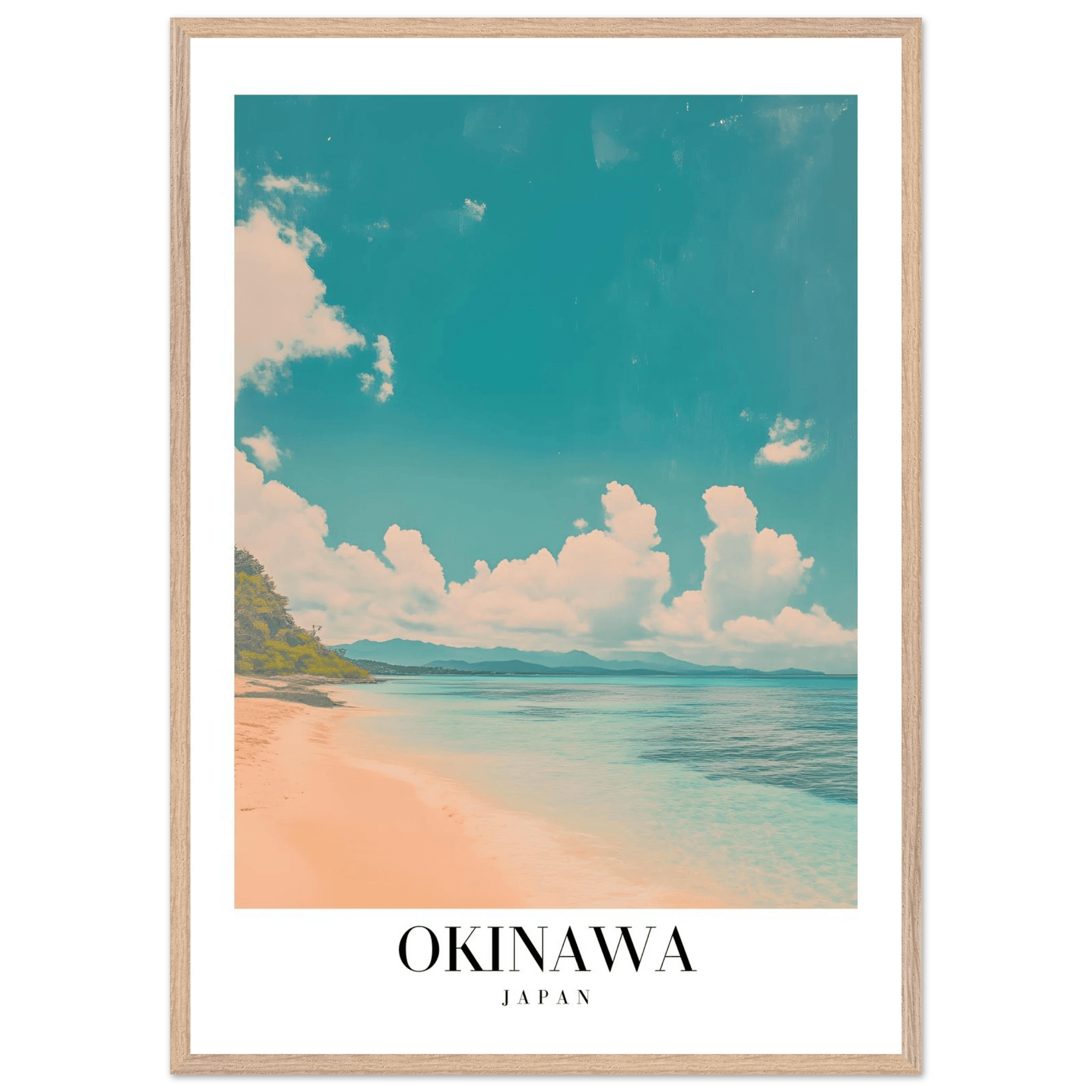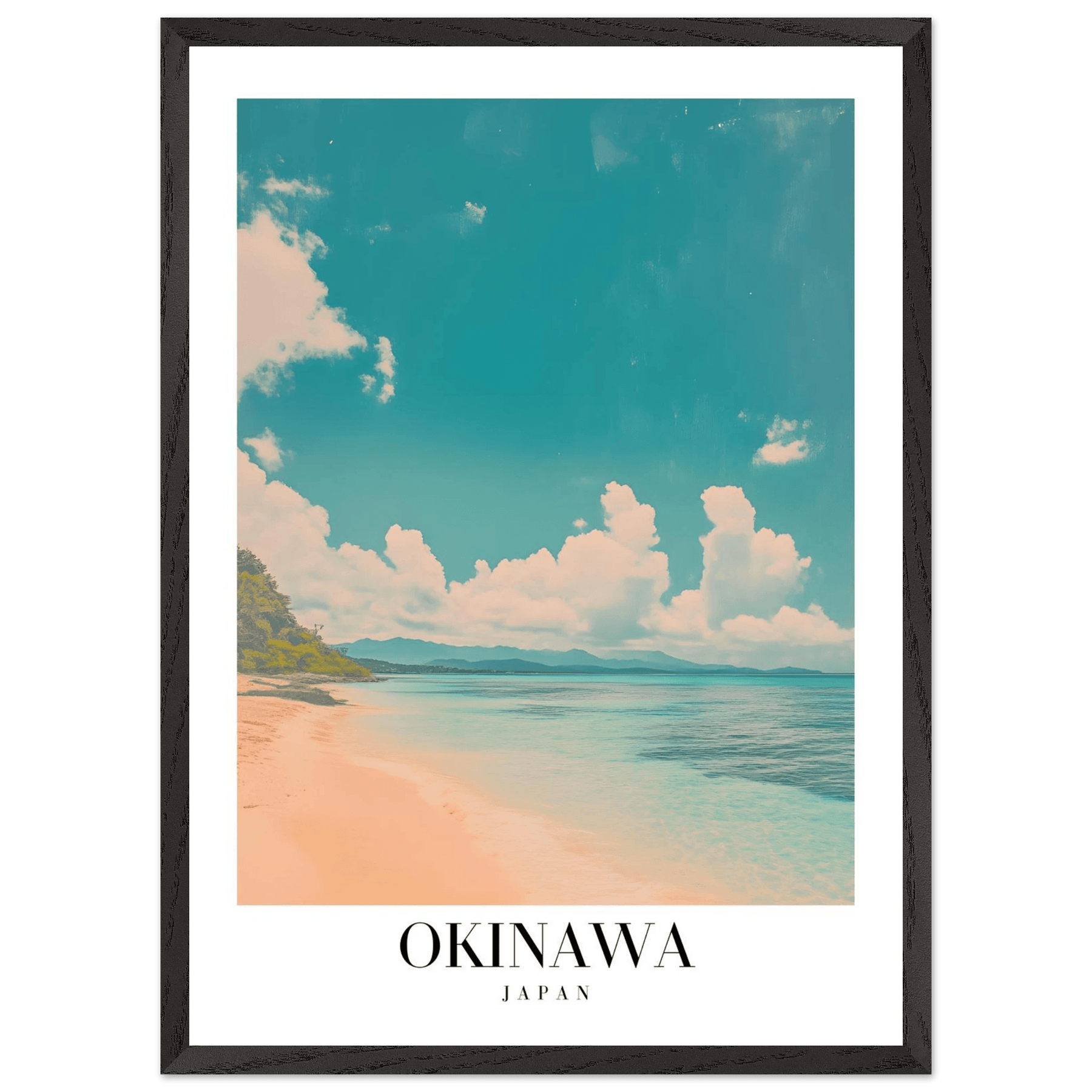 Okinawa Japan Framed Poster – Vintage Beach Travel Wall Art with Wooden Frame