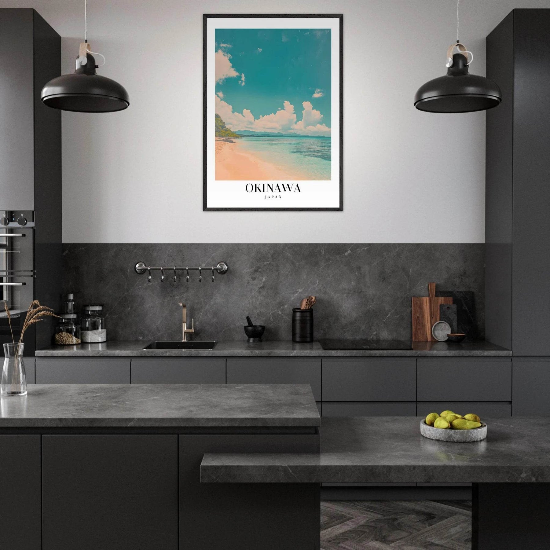 Incorporating elements of Japanese culture and natural beauty, this artwork makes a statement while providing a soothing presence in your home. Each glance at the serene beach will transport you to the soothing shores of Okinawa, creating an atmosphere of peace and relaxation.
