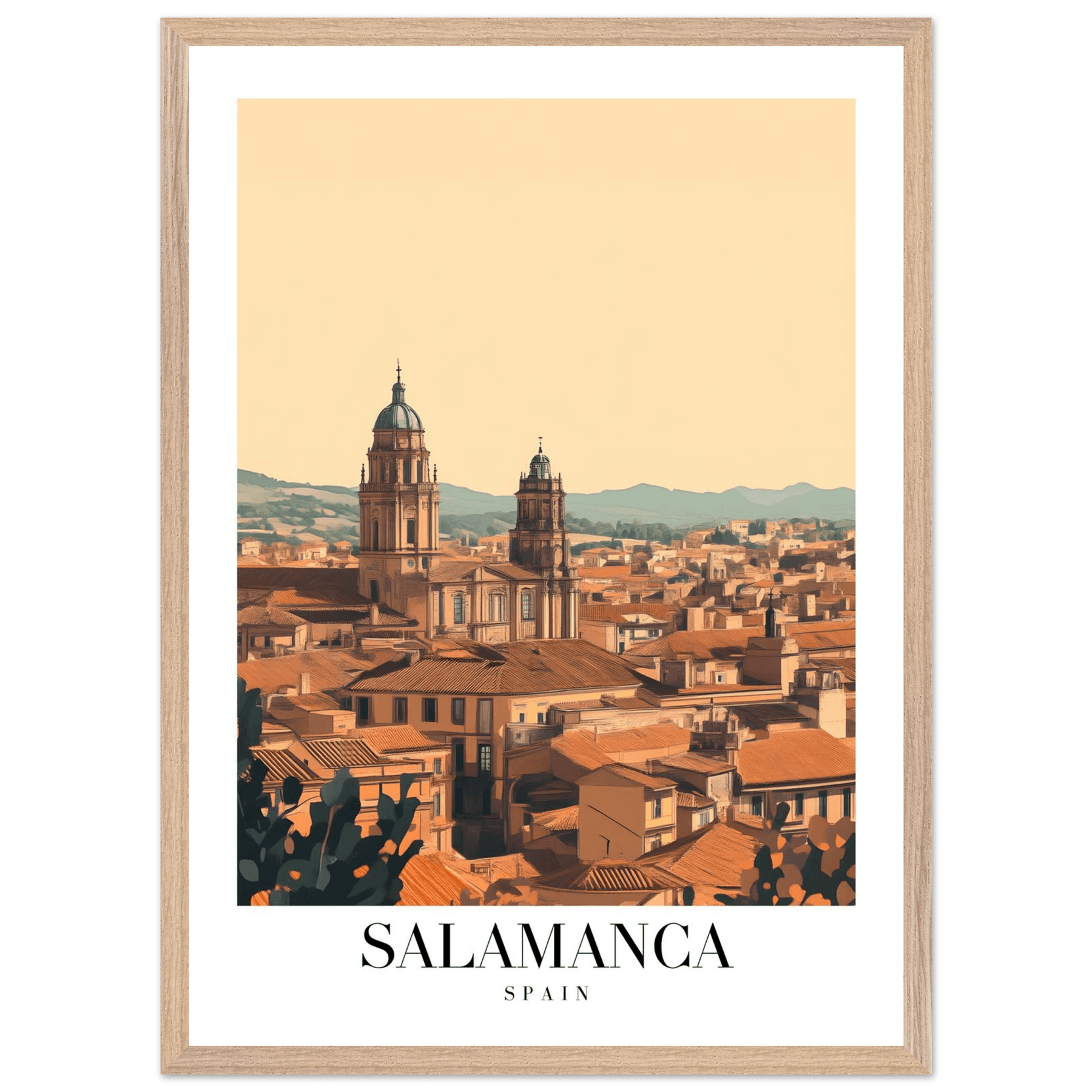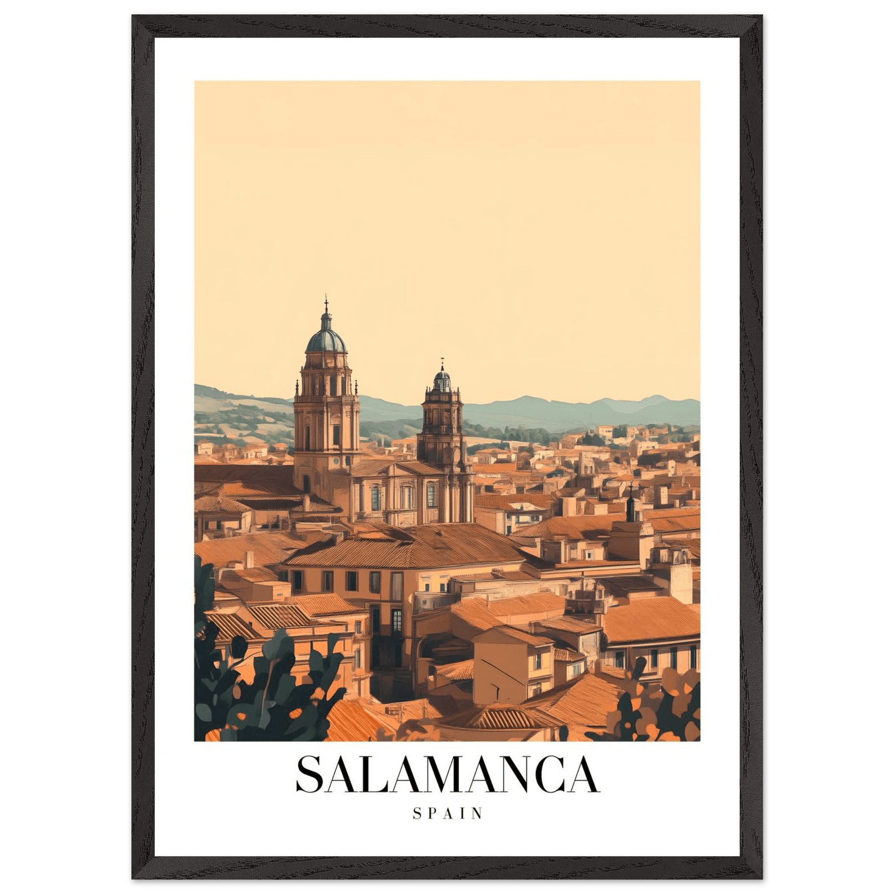 Salamanca Spain Framed Poster – Warm Hues Vintage Travel Wall Art with Wooden Frame