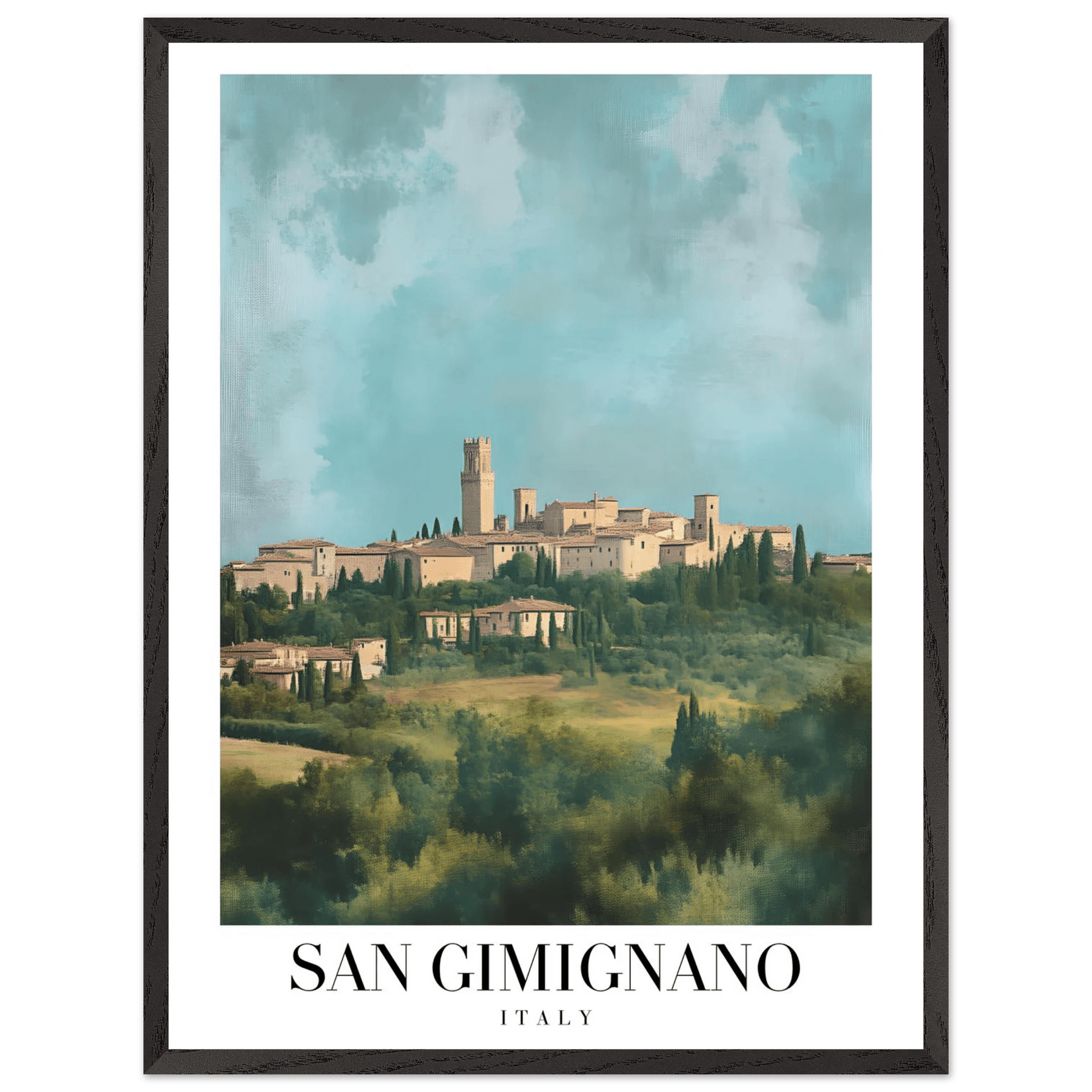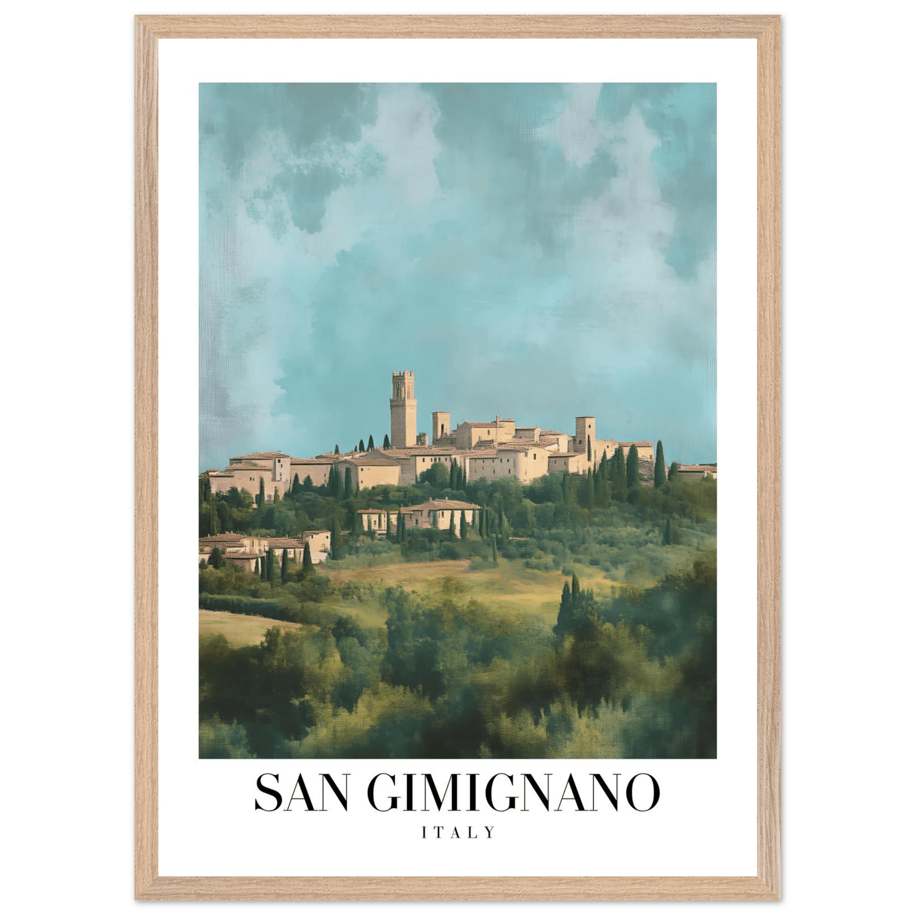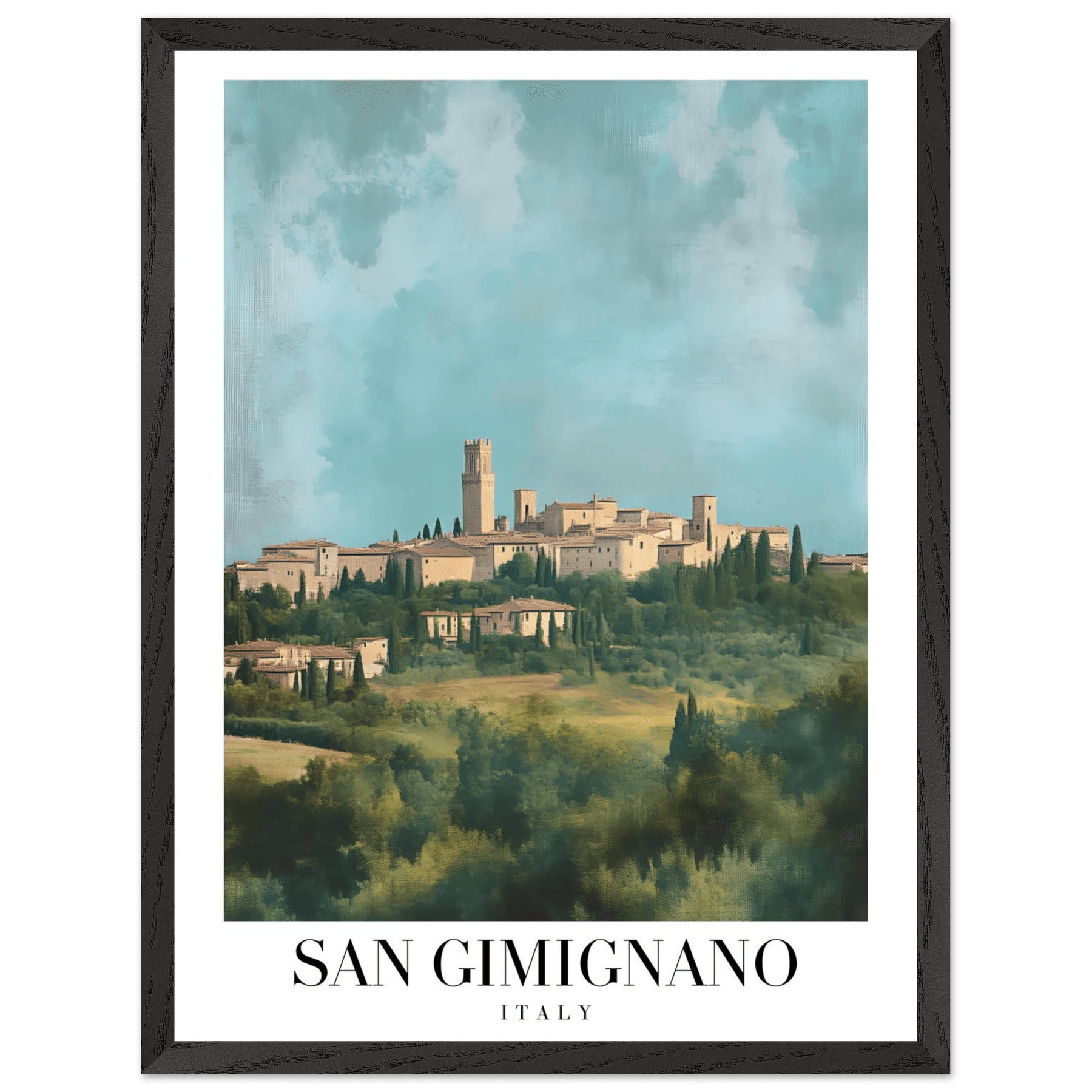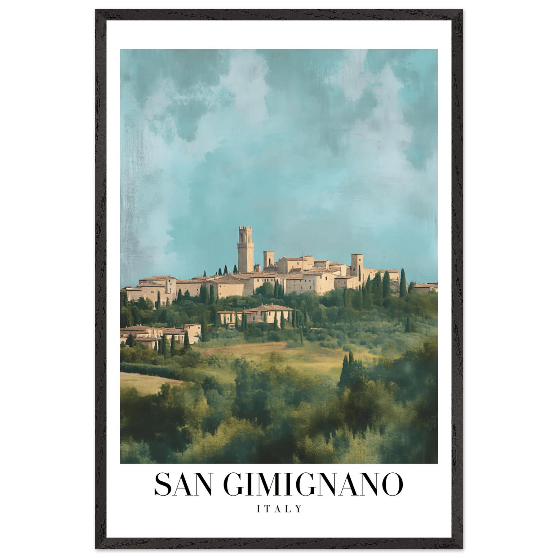 San Gimignano Italy Framed Poster – Vintage Tuscan Countryside Wall Art with Wooden Frame - Vibrantwalls
