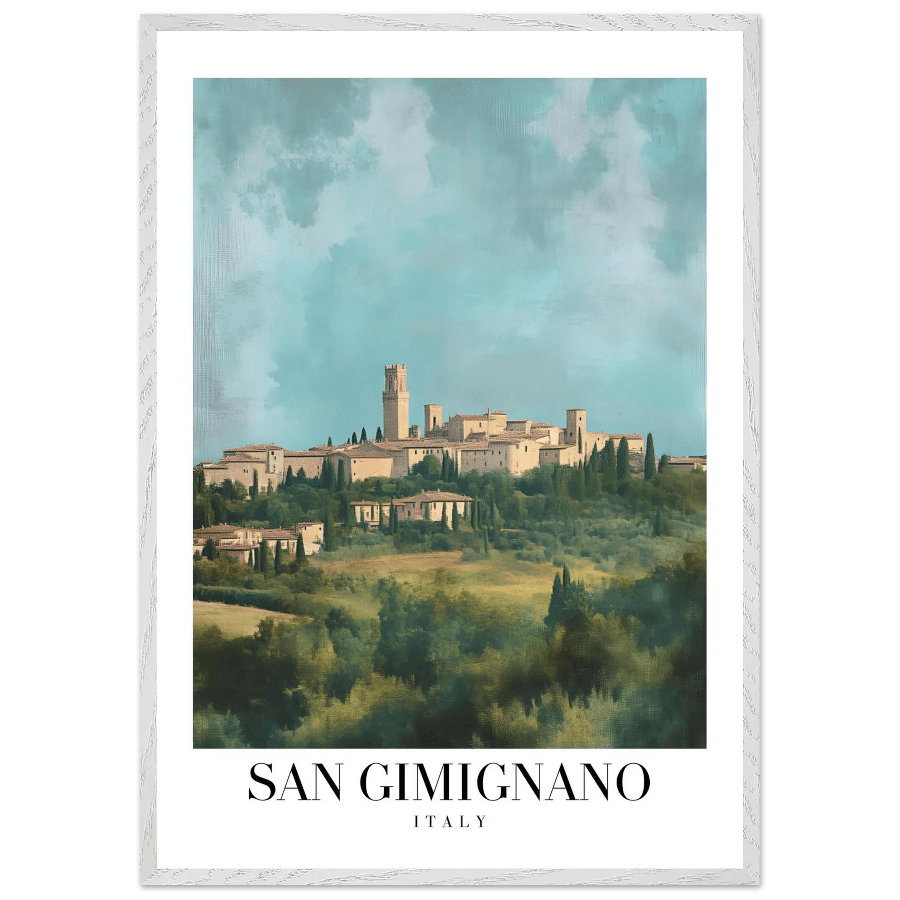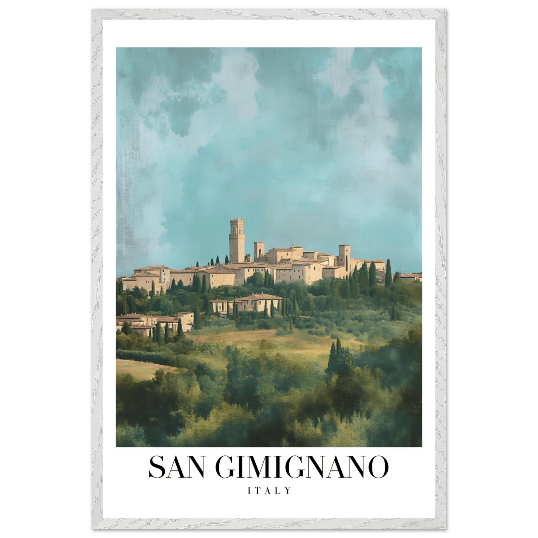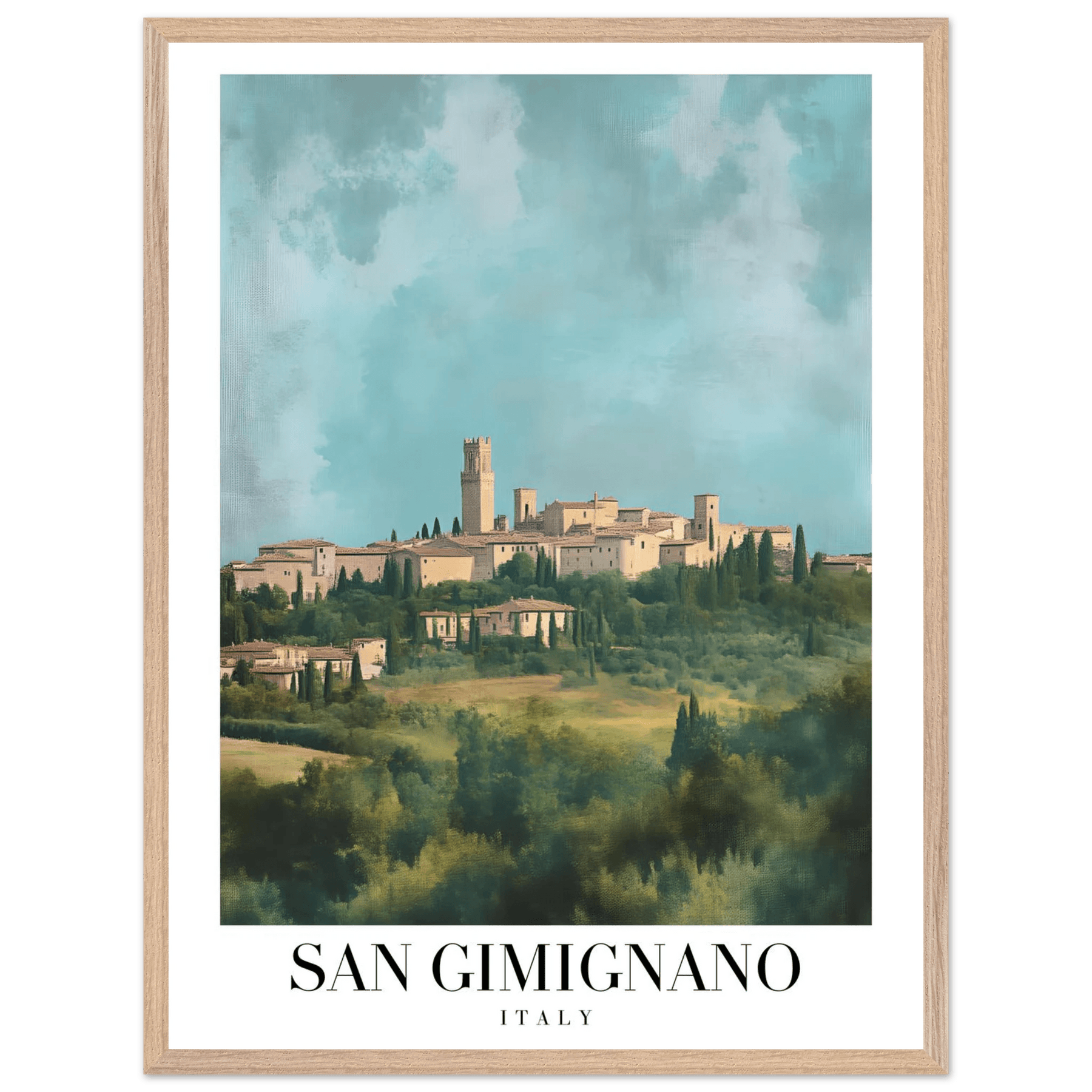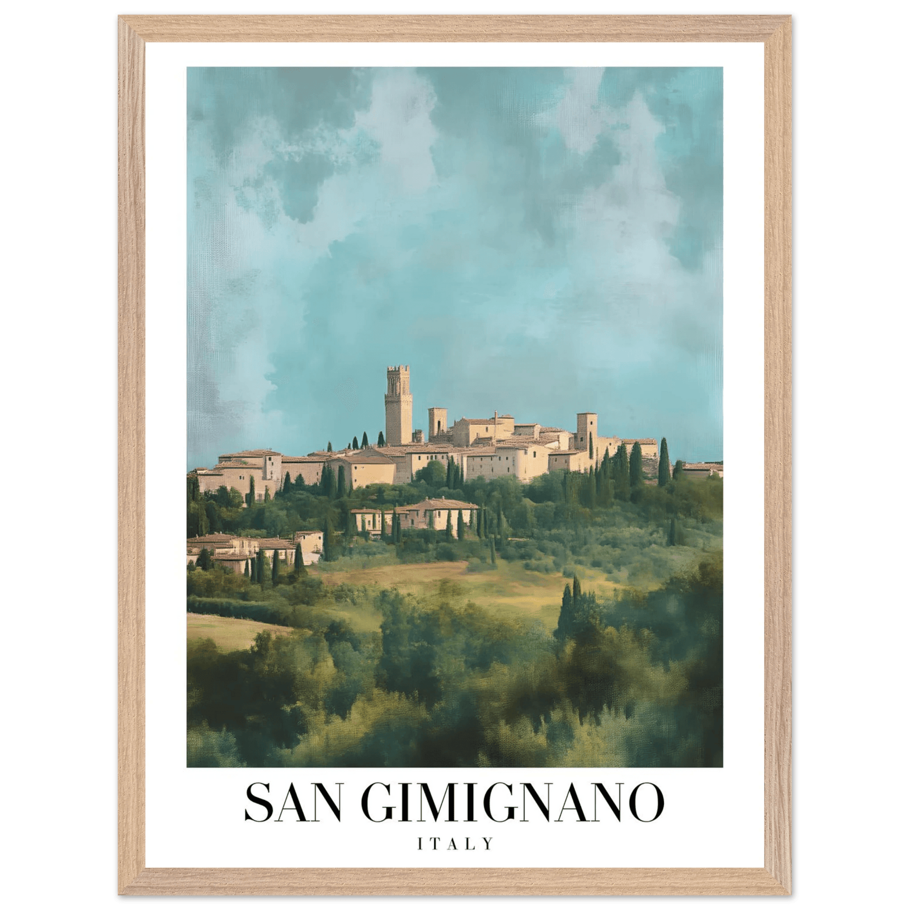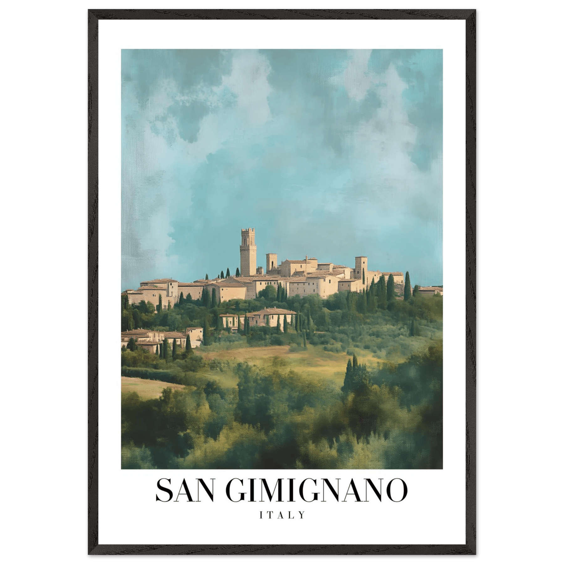 San Gimignano Italy Framed Poster – Vintage Tuscan Countryside Wall Art with Wooden Frame - Vibrantwalls