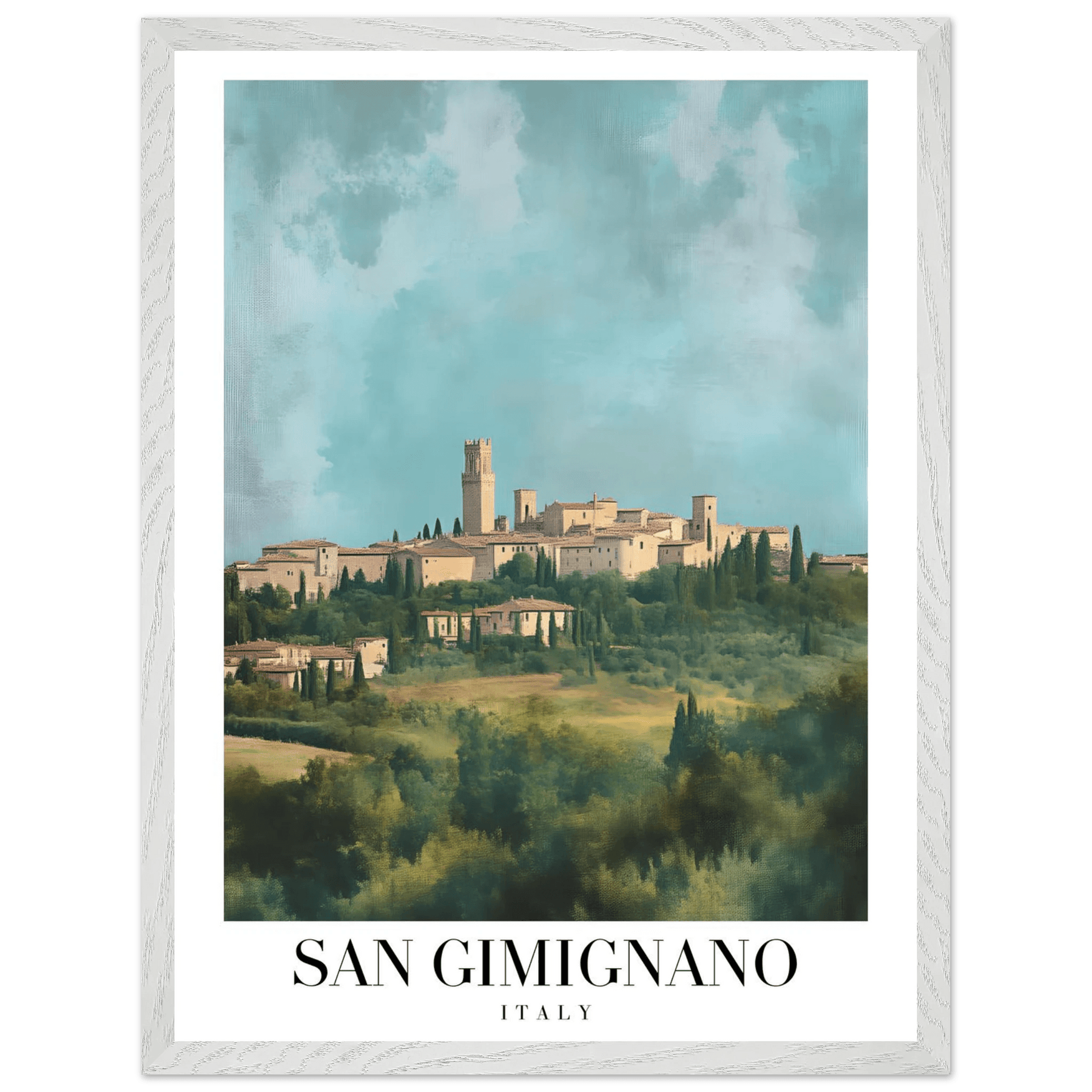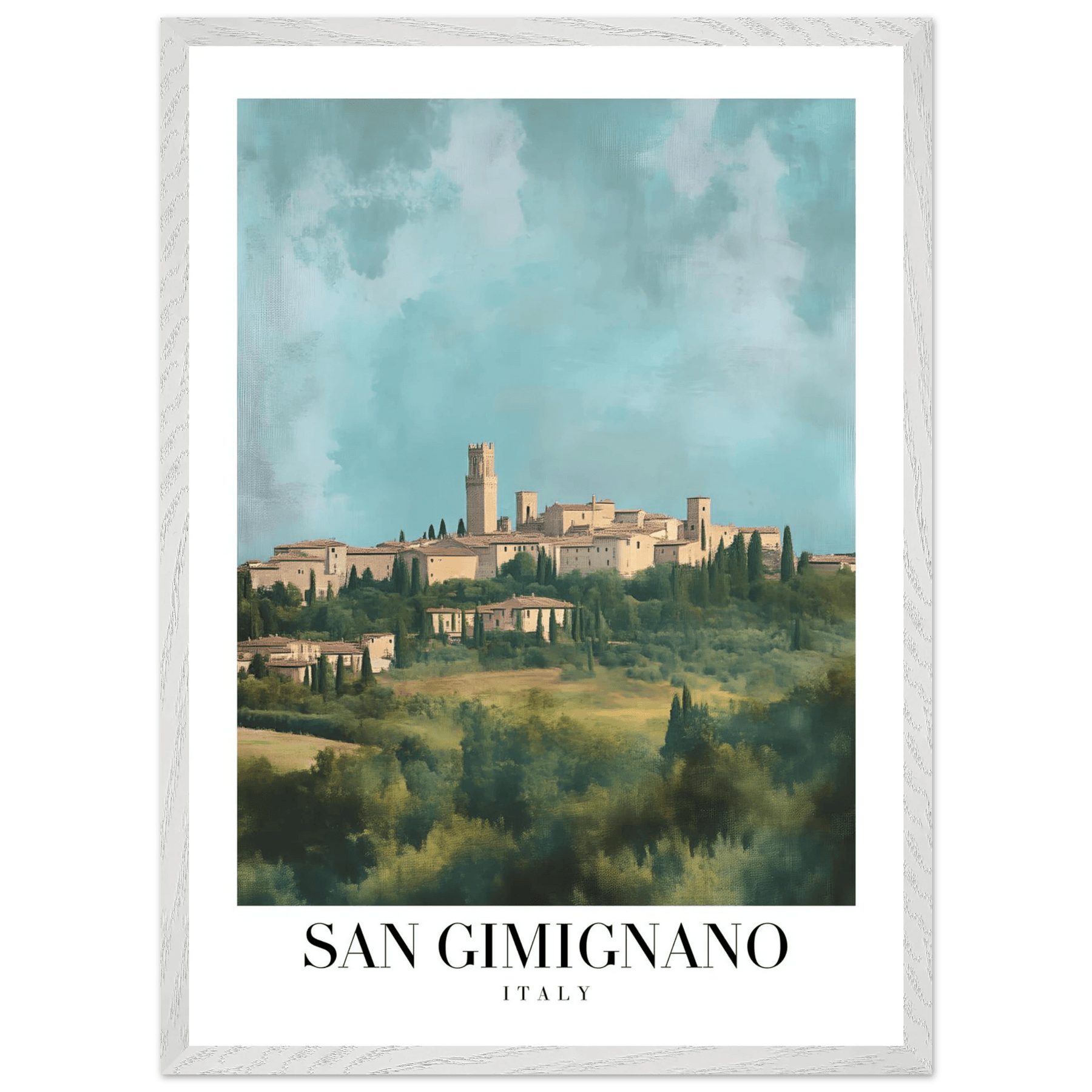 San Gimignano Italy Framed Poster – Vintage Tuscan Countryside Wall Art with Wooden Frame