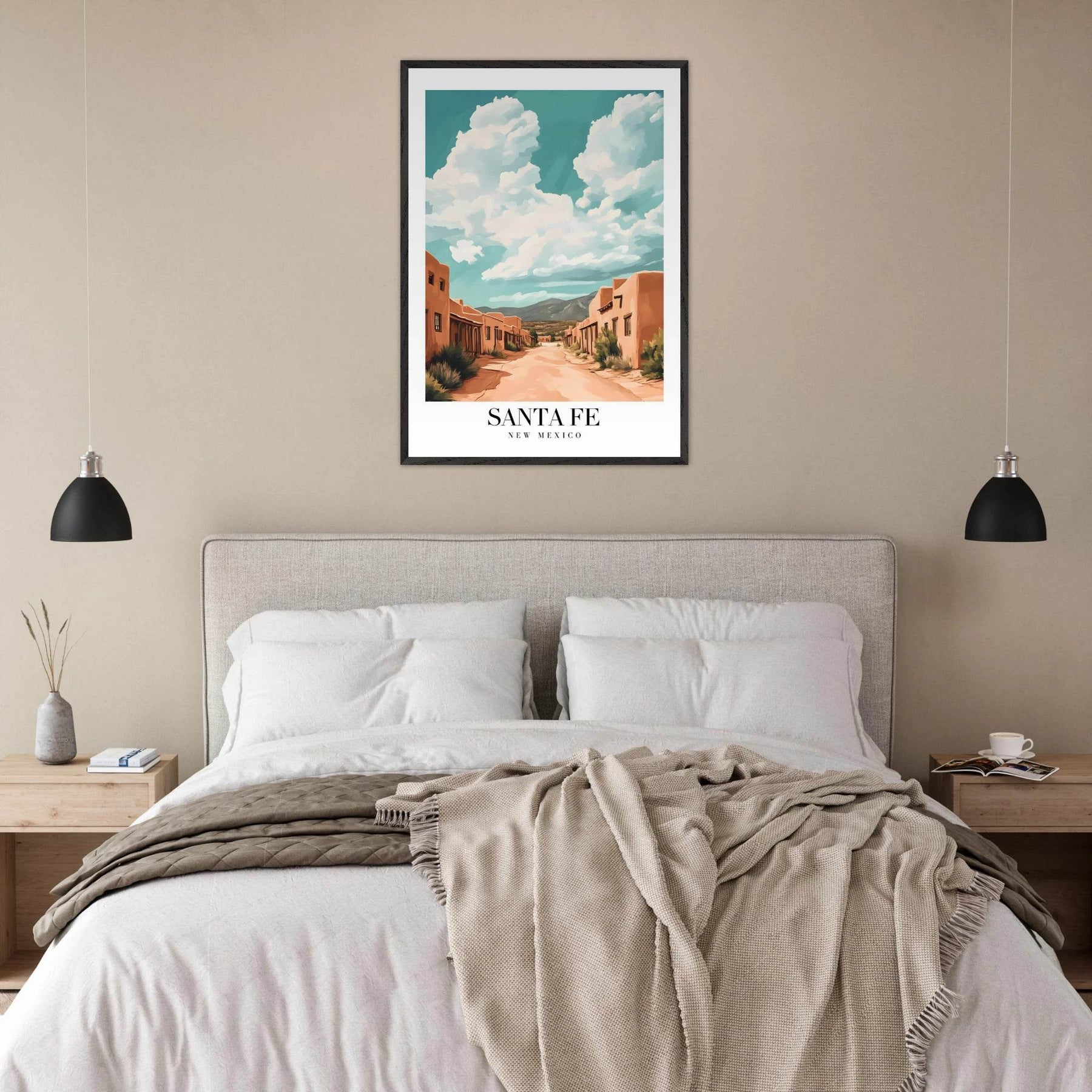 Whether you're an art collector or someone who enjoys unique home decor, this framed poster serves as a conversation starter. The Santa Fe New Mexico Framed Poster – Vintage Southwest Wall Art with Wooden Frame is perfect for:
