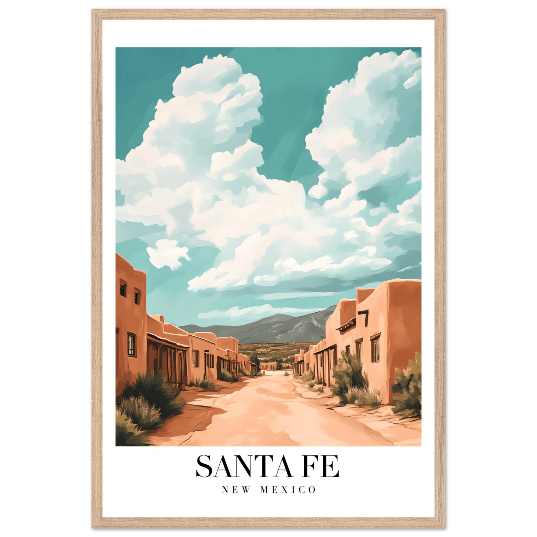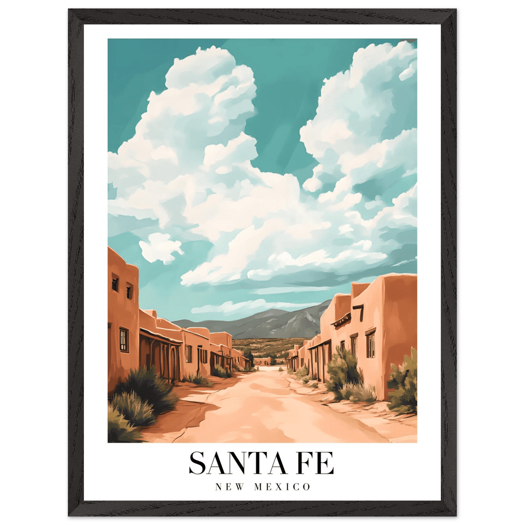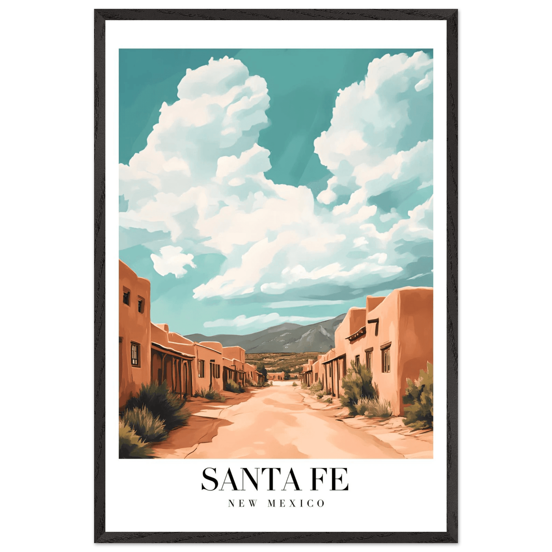 Santa Fe New Mexico Framed Poster – Vintage Southwest Wall Art with Wooden Frame