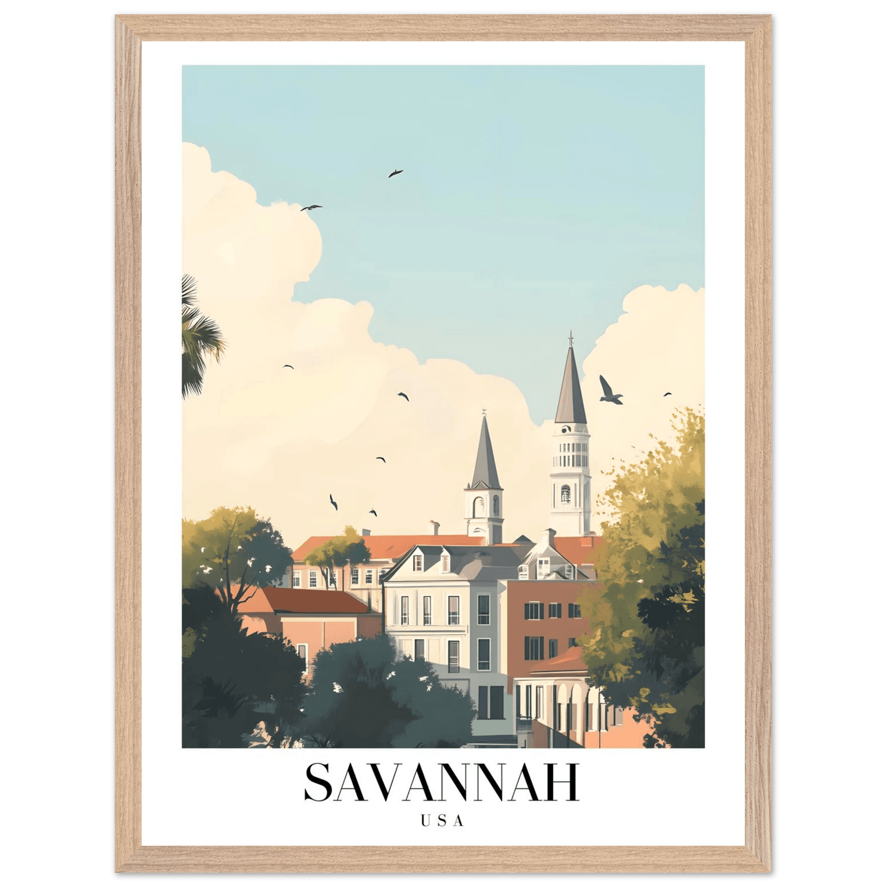 Savannah USA Framed Poster – Charming Cityscape Art with Wooden Frame - Vibrantwalls