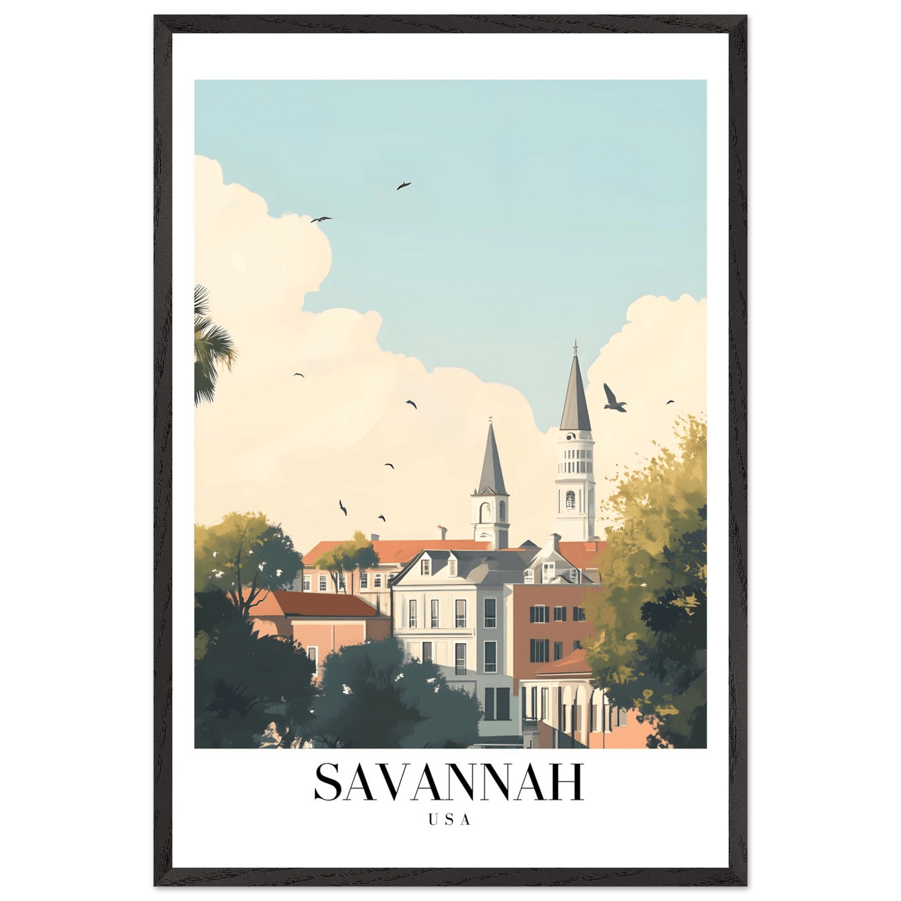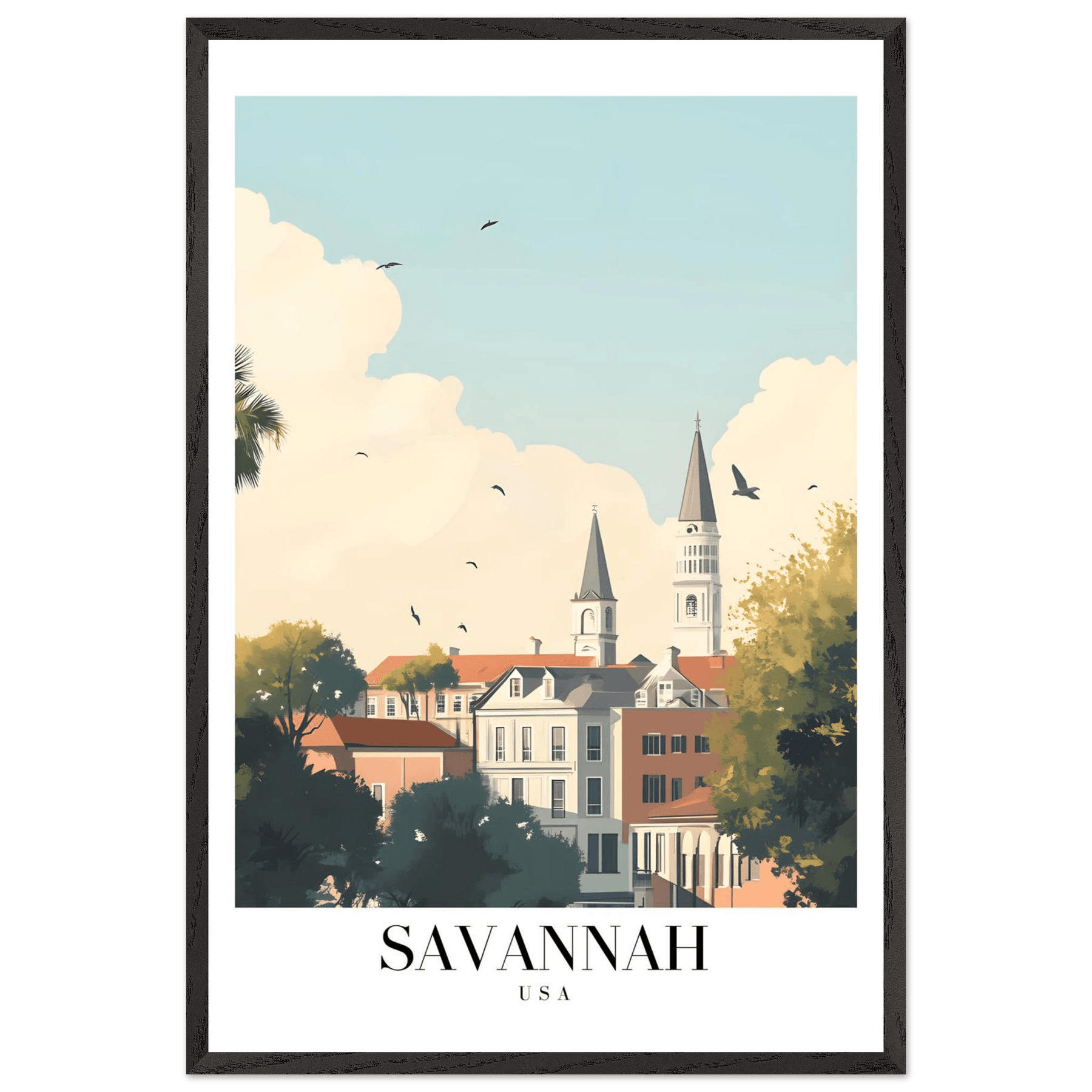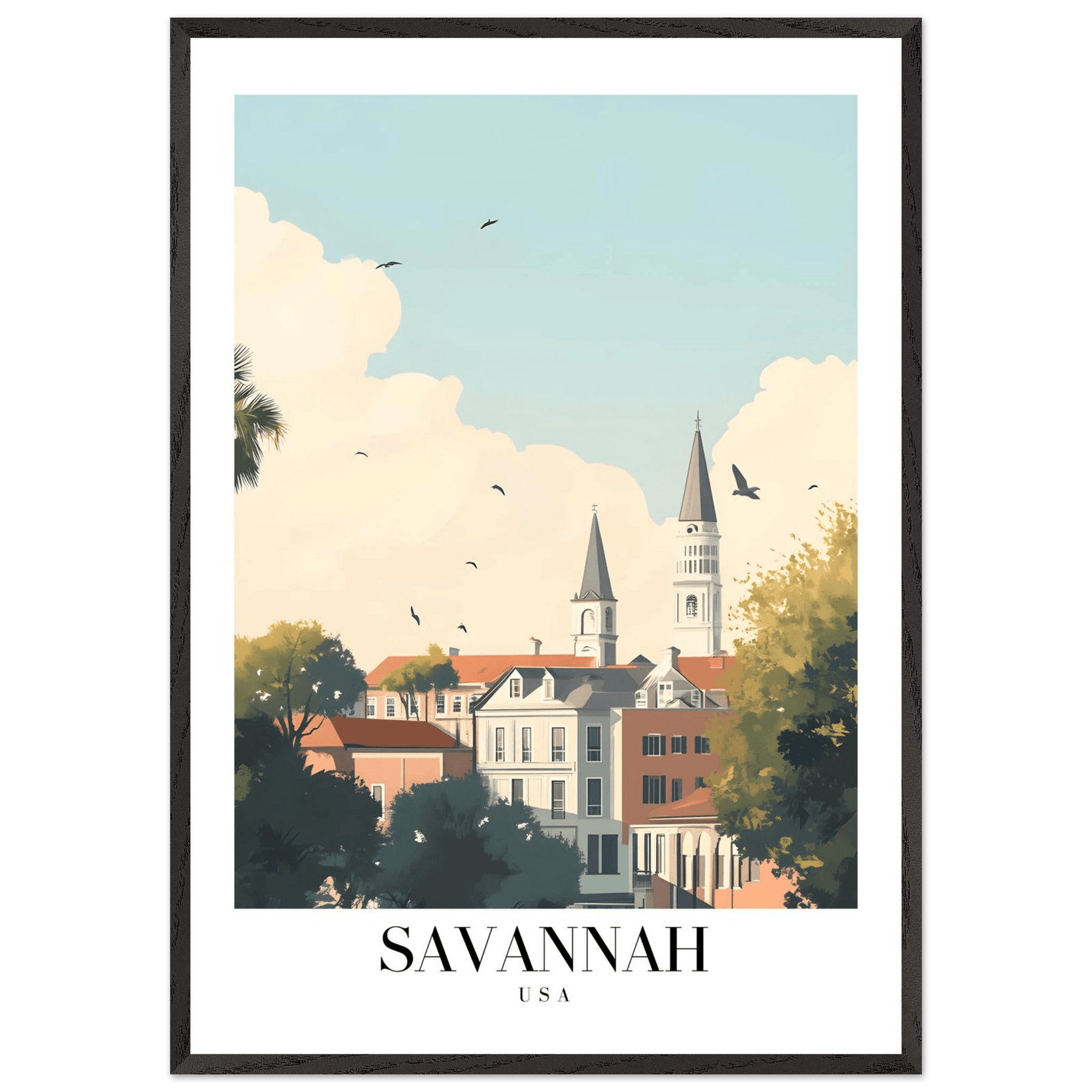 Savannah USA Framed Poster – Charming Cityscape Wall Art with Wooden Frame
