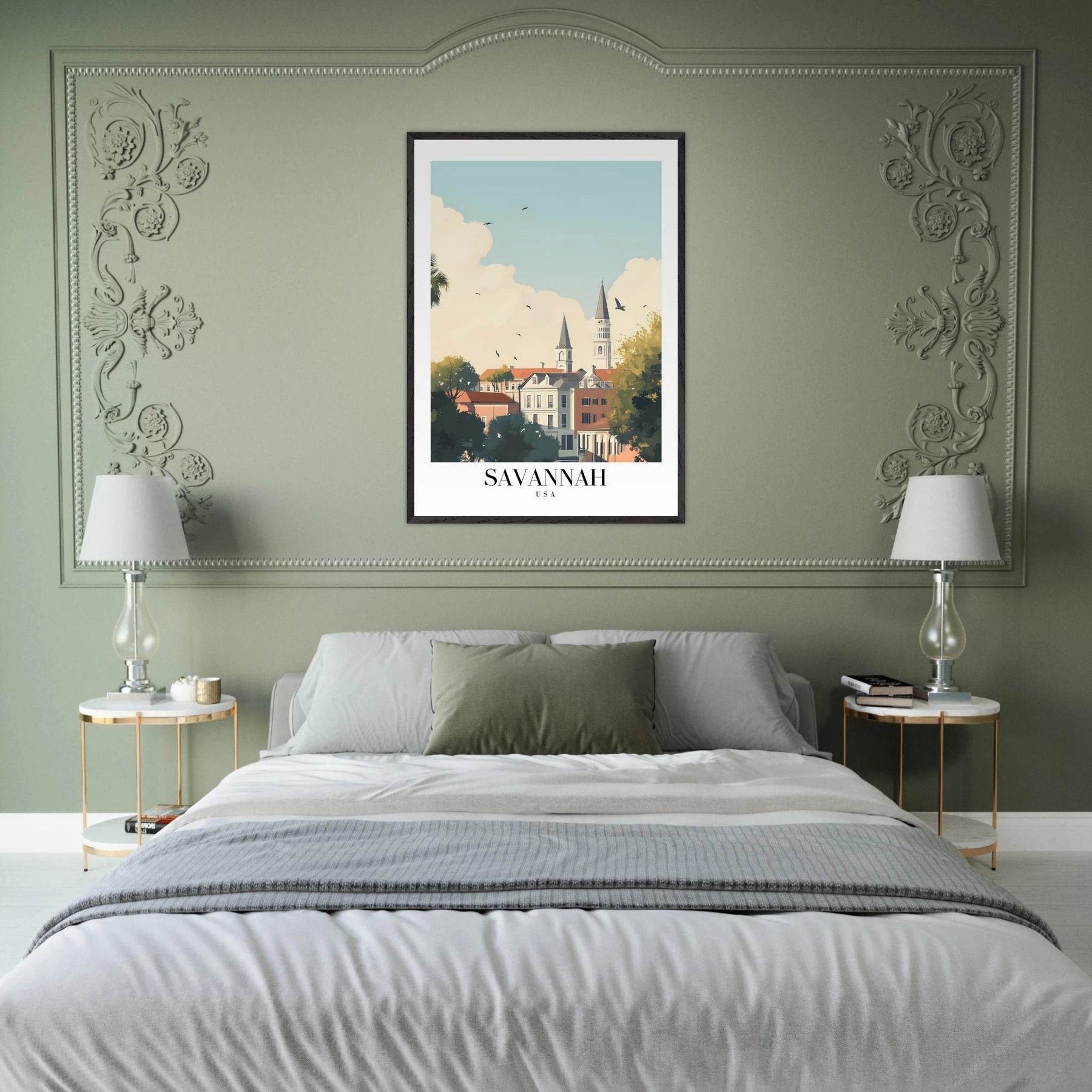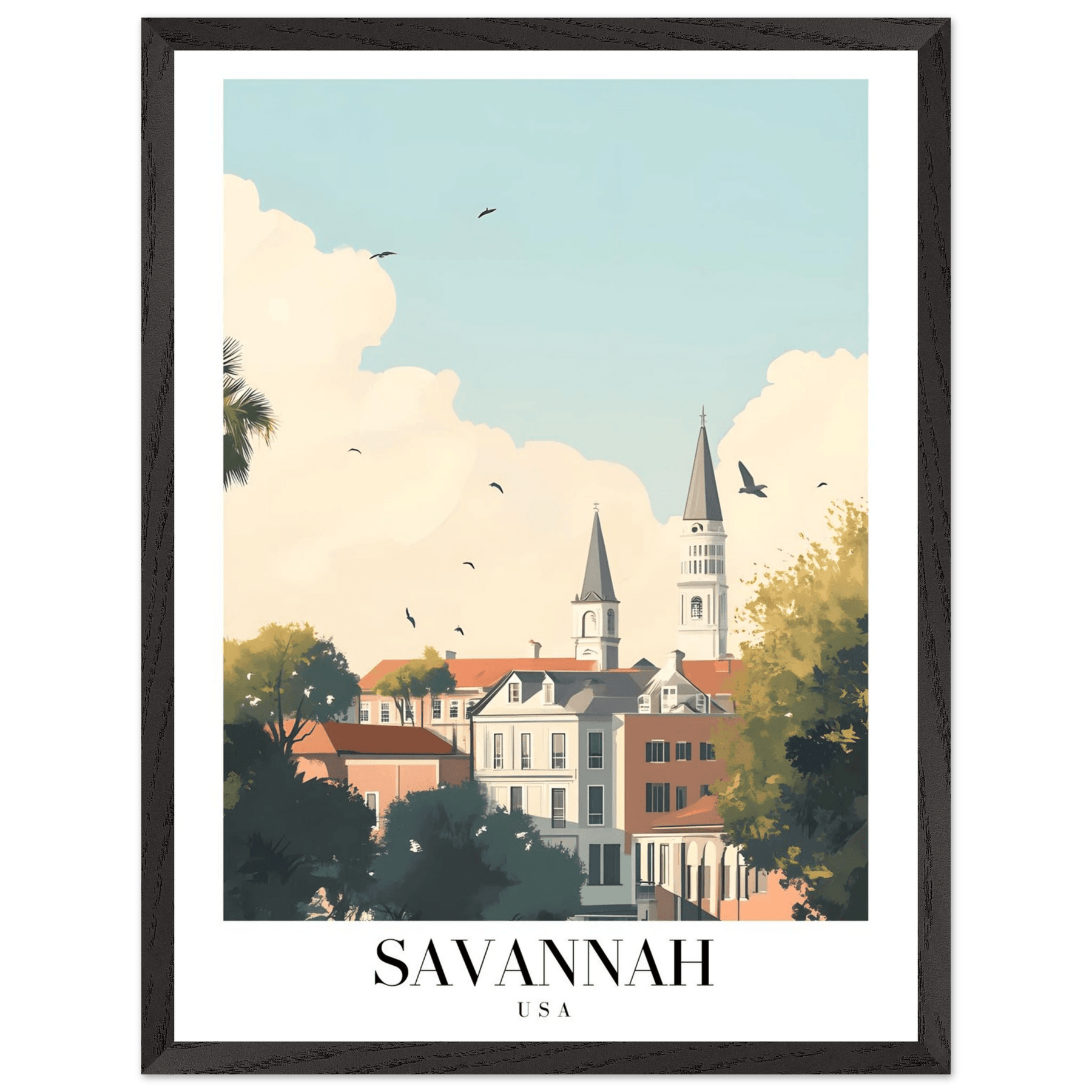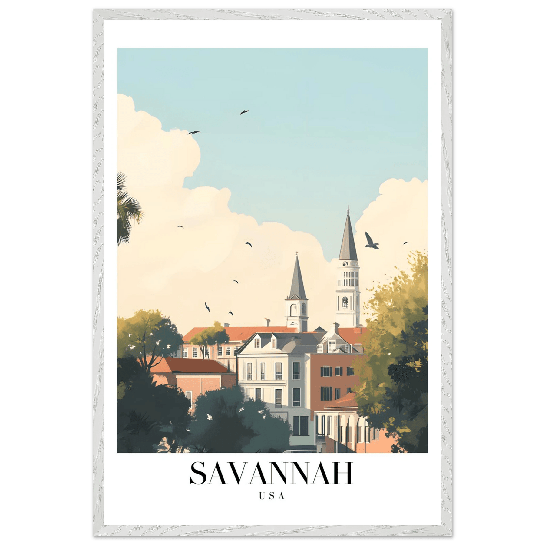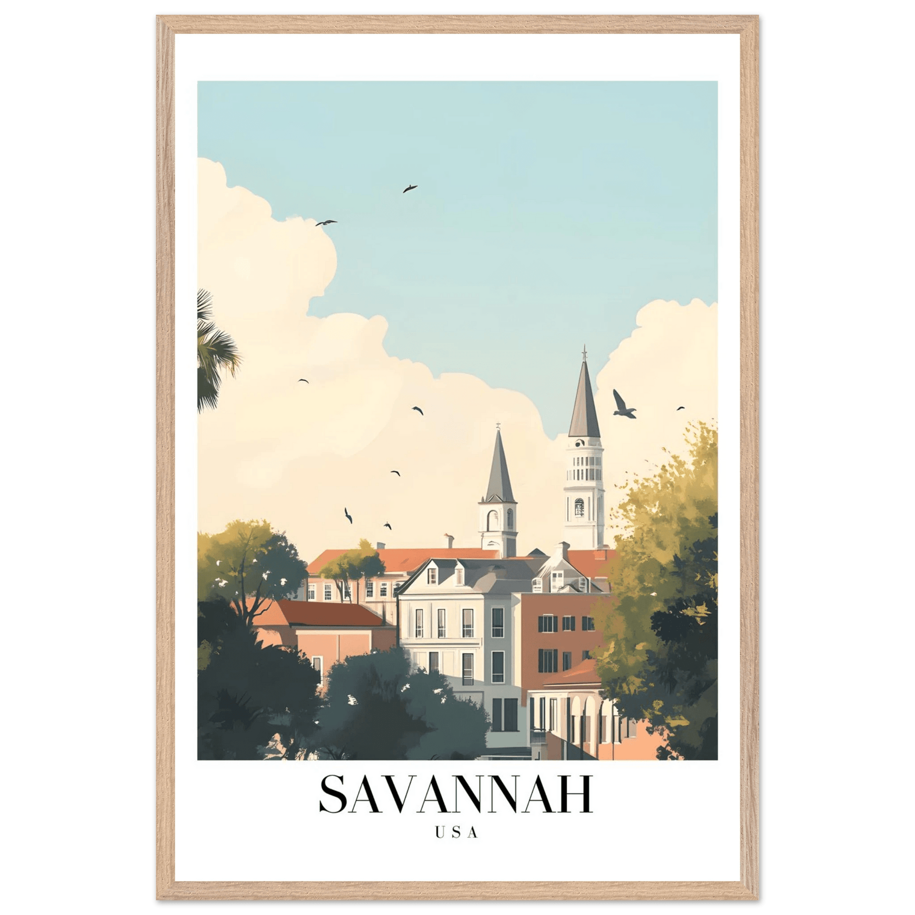 Savannah USA Framed Poster – Charming Cityscape Wall Art with Wooden Frame