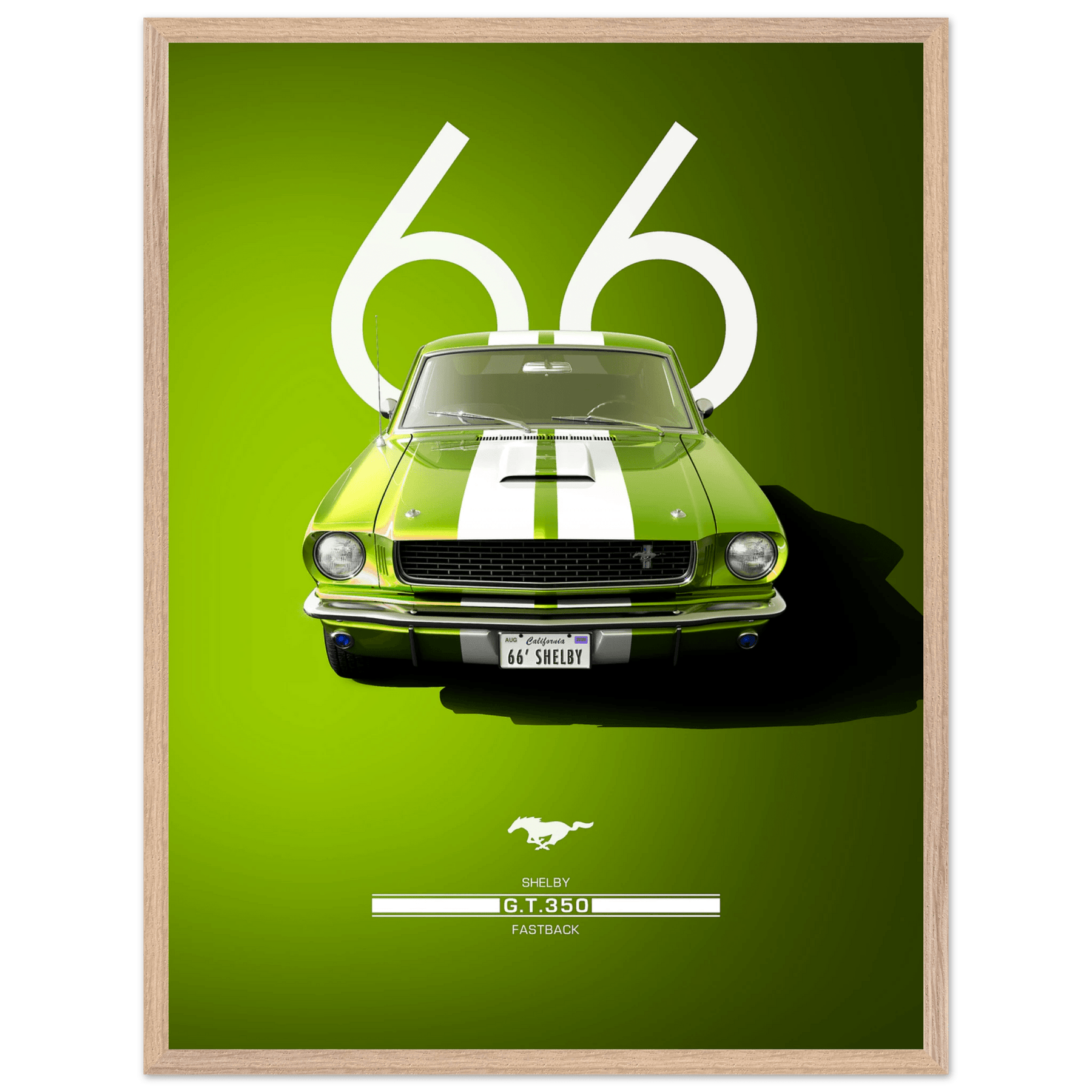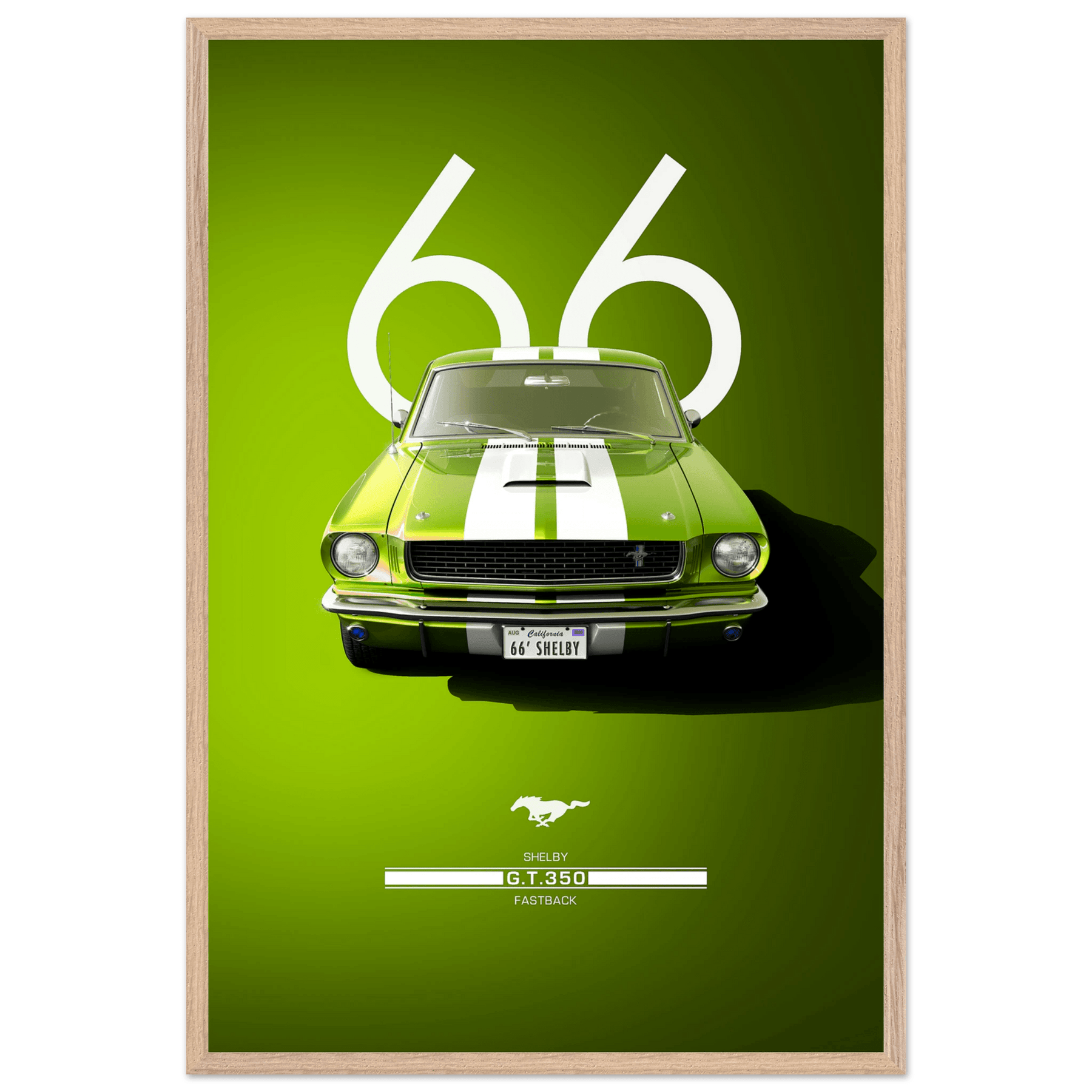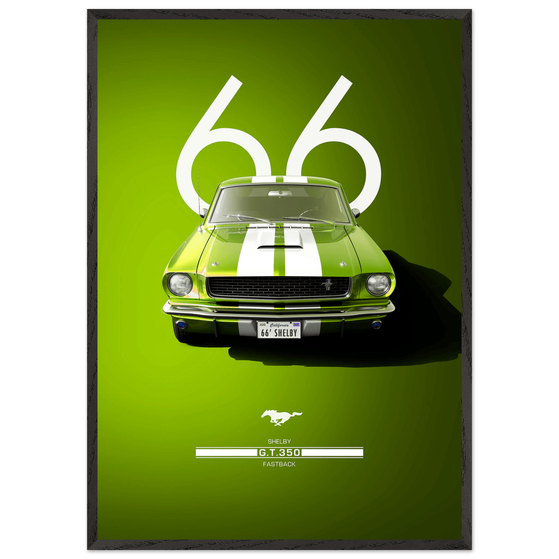 1966 Shelby GT350 Fastback Poster - Iconic Green & White Racing Stripes | Premium Framed Art, Ready-to-Hang