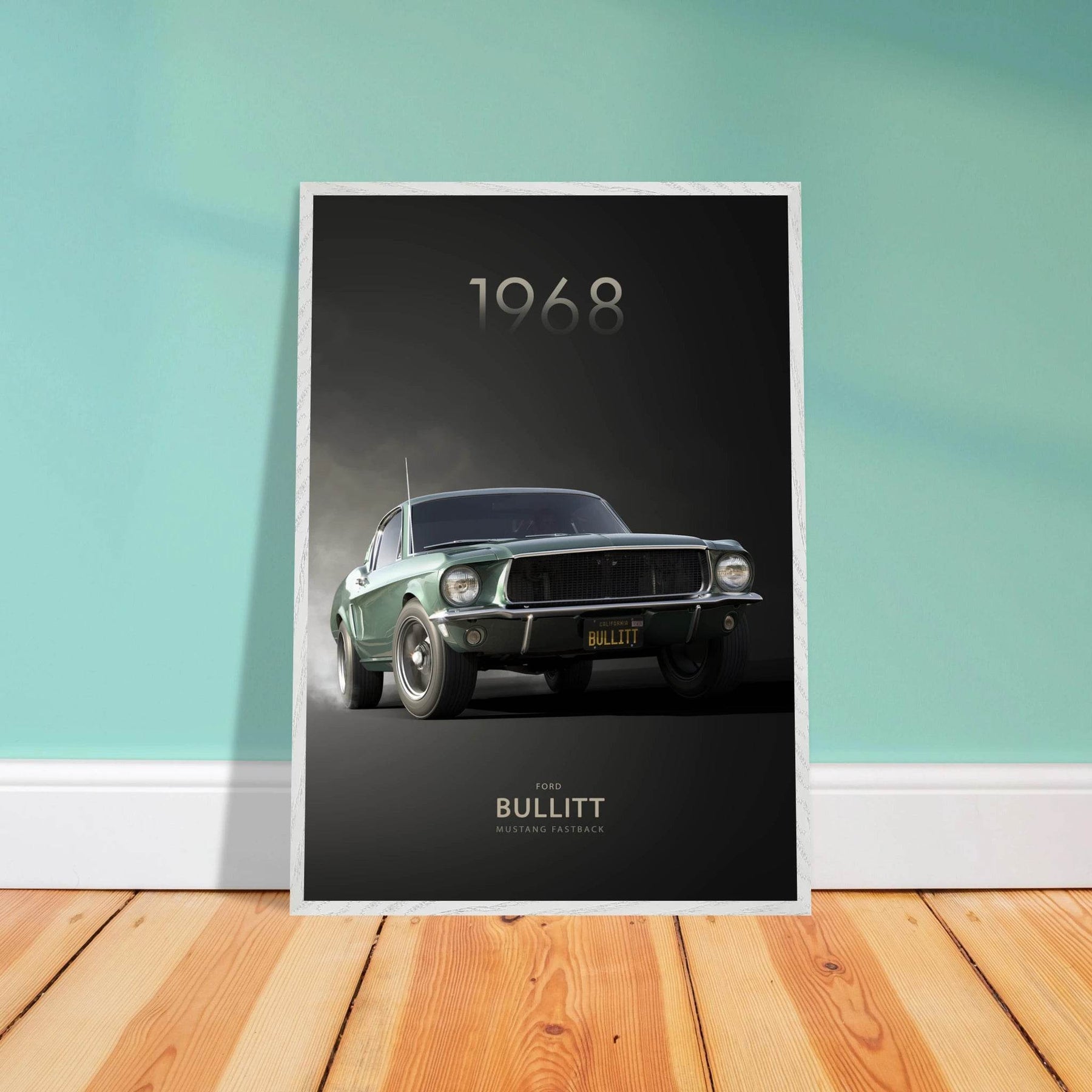 The 1968 Bullitt Mustang GT - 50th Anniversary Framed Poster | Iconic Green, Ready-to-Hang, Premium Quality is a celebration of one of cinema's most iconic cars. Known for its unique color and power, this limited edition framed poster captures the spirit of the chase in the classic film 'Bullitt.' With a striking green hue and meticulous details, this poster is perfect for any car enthusiast or film lover. The high-quality print and elegant framing ensure that this piece will not only add style to your décor but also be a conversation starter among friends and family.