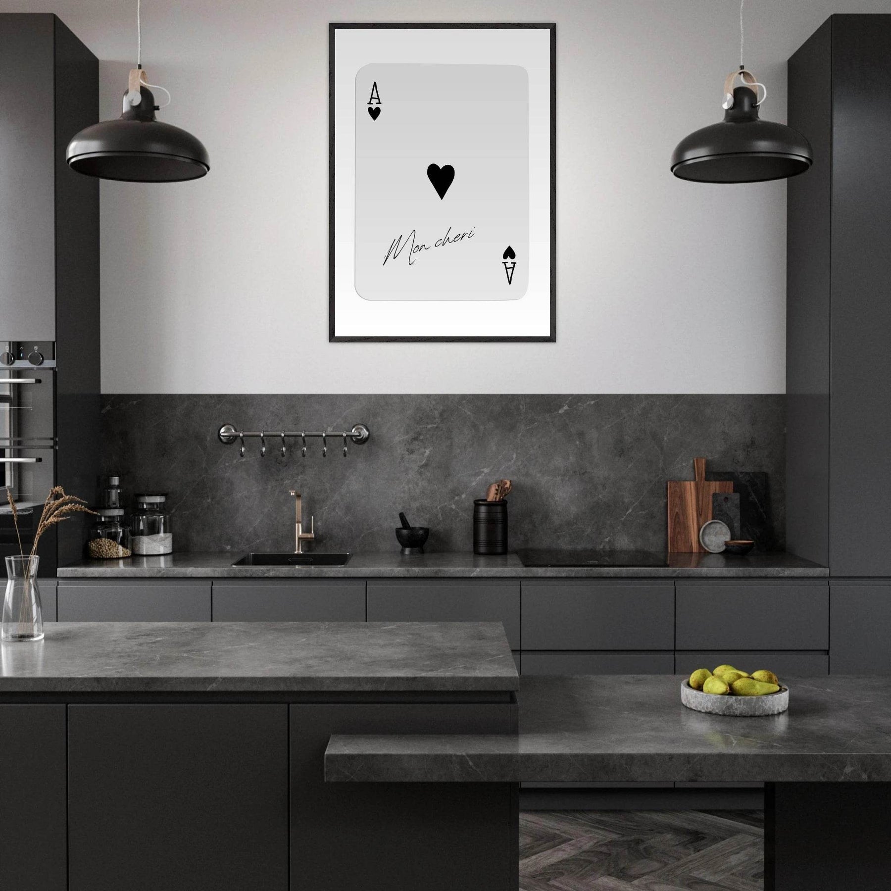 The Ace of Hearts 'Mon Cheri' Art Print - Framed Poker Card Poster, Eco-Friendly Wood Frame is a perfect blend of art and functionality. This unique piece showcases the iconic Ace of Hearts card, which symbolizes love and passion, making it an excellent addition to any poker enthusiast's collection or as a stylish decor piece for your home. Featuring a stunning design, this art print encapsulates the spirit of card games while bringing an elegant touch to your living space.