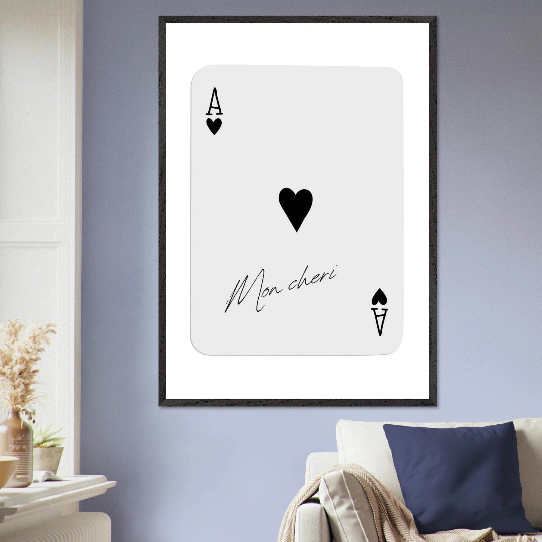 Ace of Hearts 'Mon Cheri' Art Print - Framed Poker Card Poster, Eco-Friendly Wood Frame