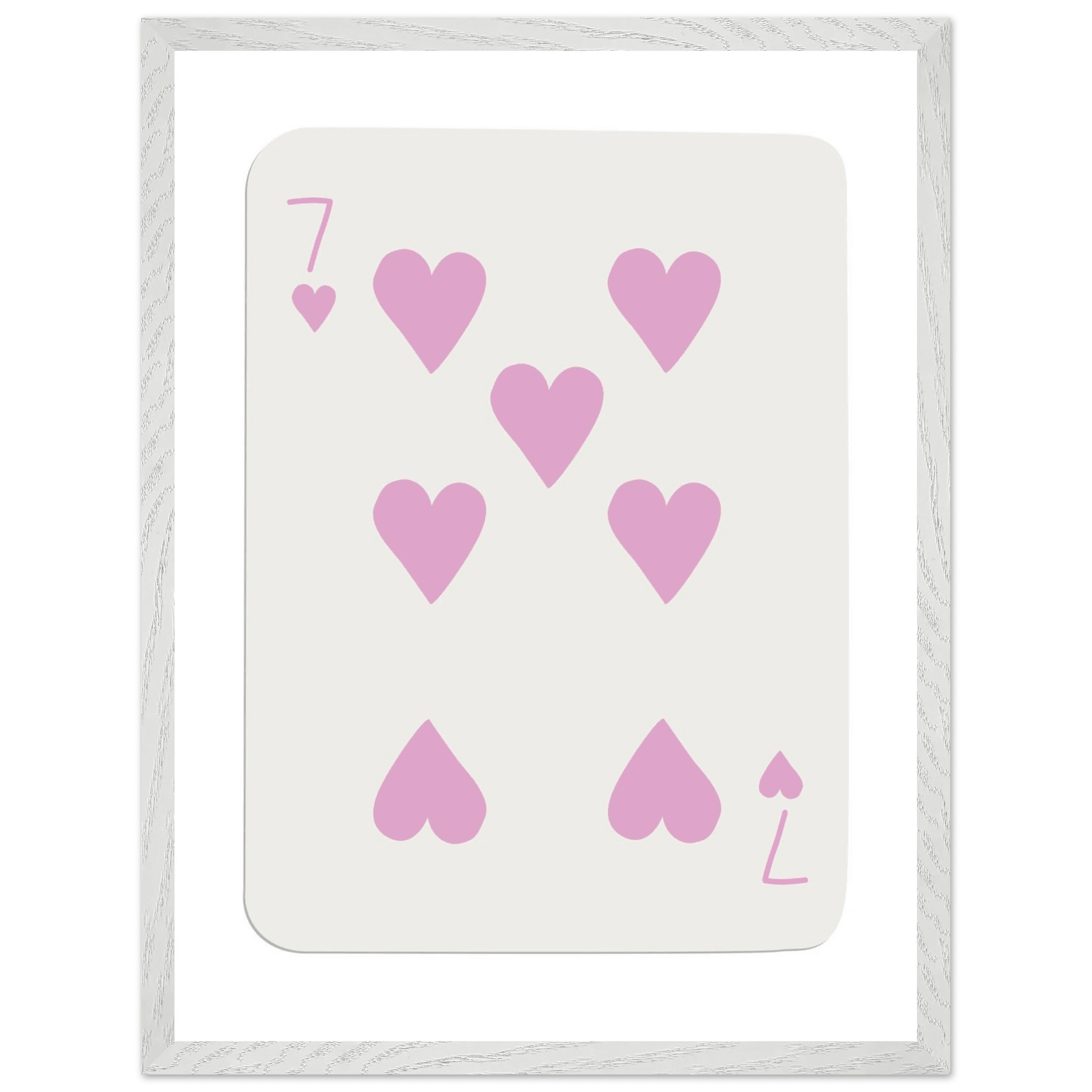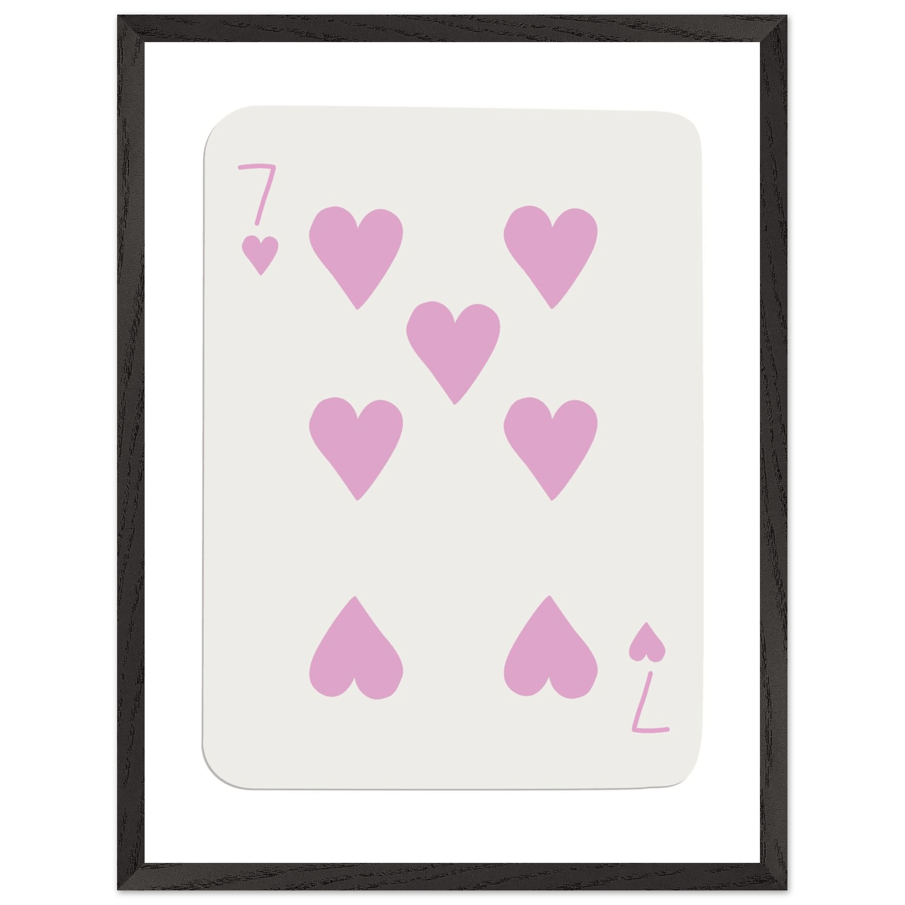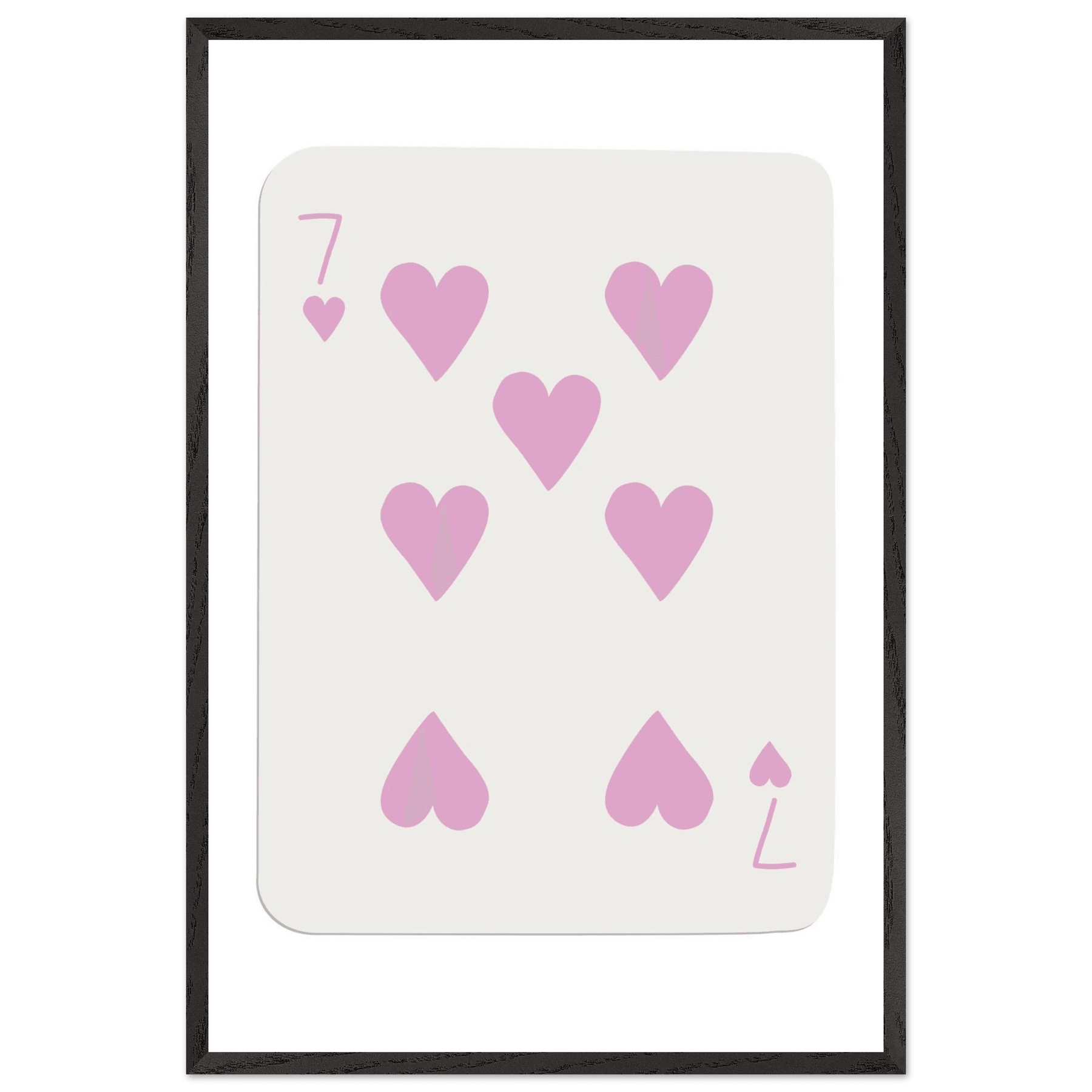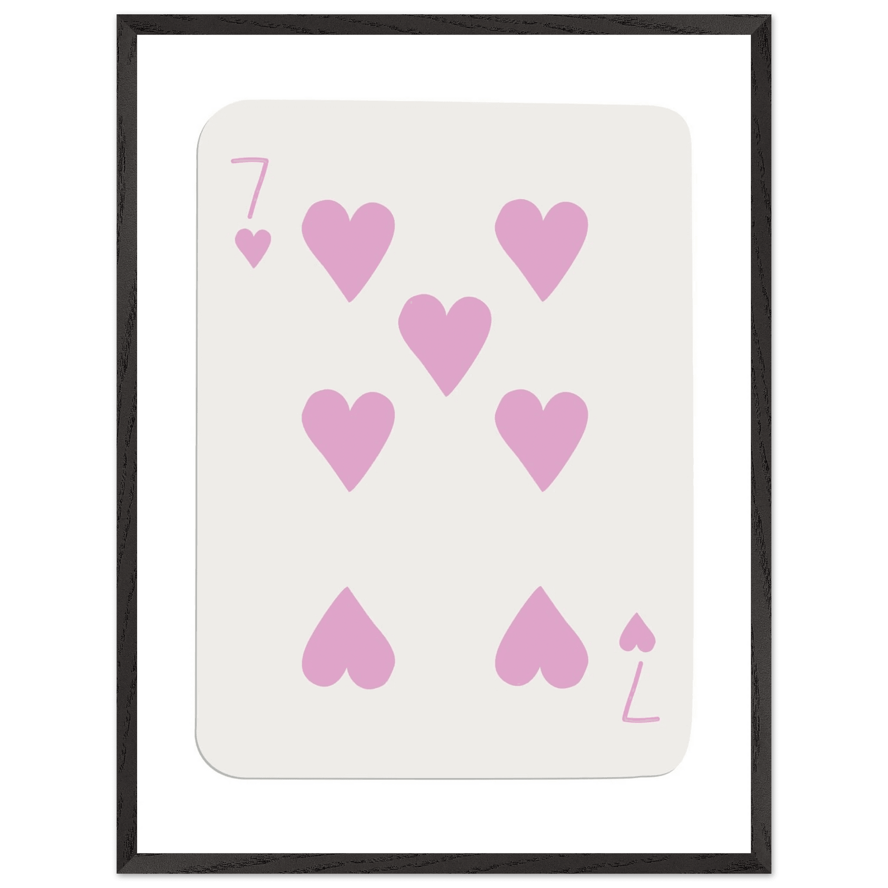 Charming Seven of Hearts Poker Card Print - Mounted Framed Poster Art with Eco-Friendly Wood Frame