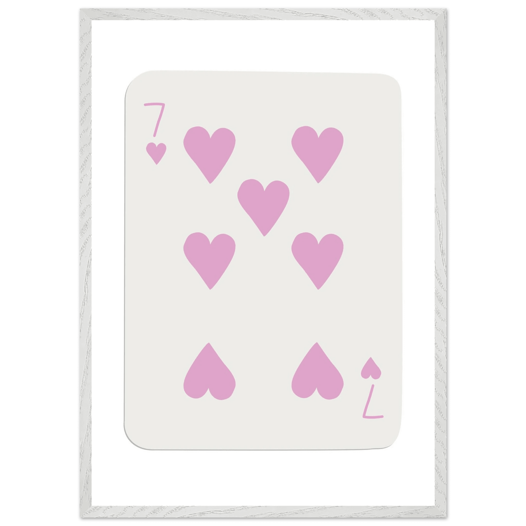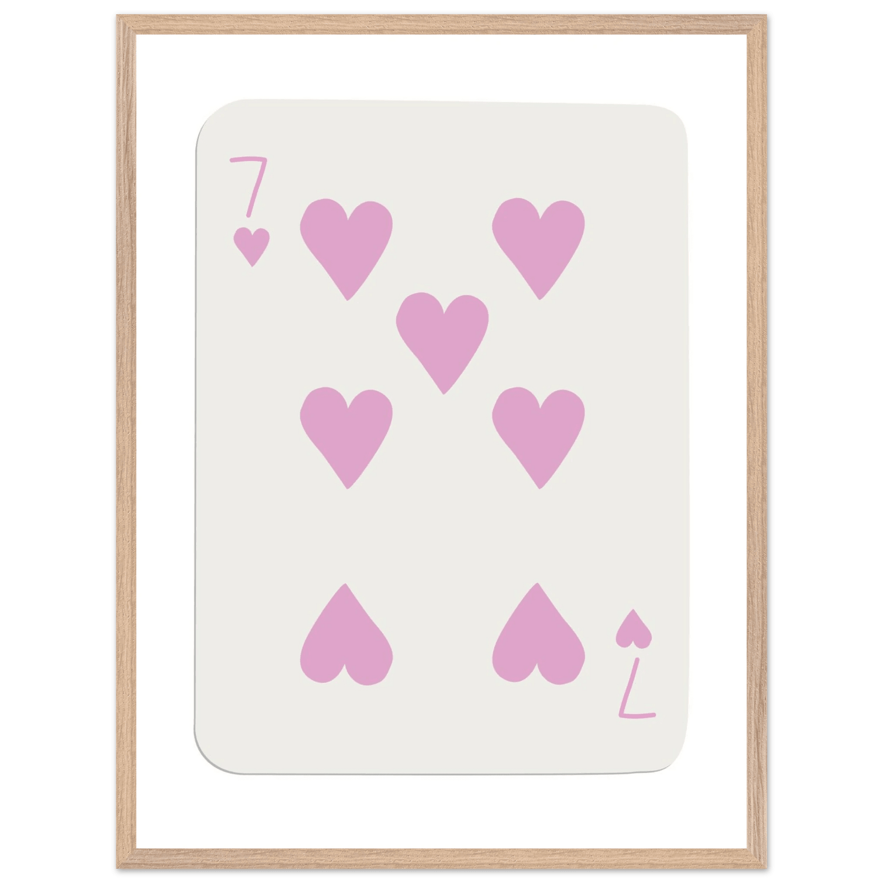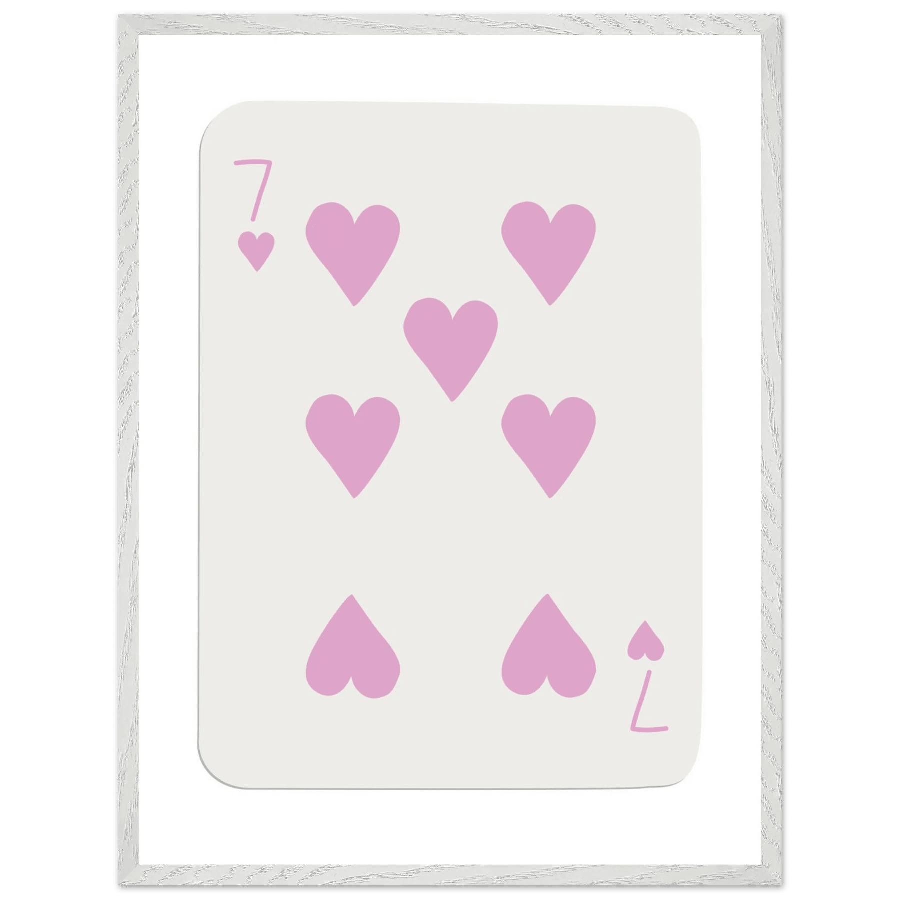 Charming Seven of Hearts Poker Card Print - Mounted Framed Poster Art with Eco-Friendly Wood Frame