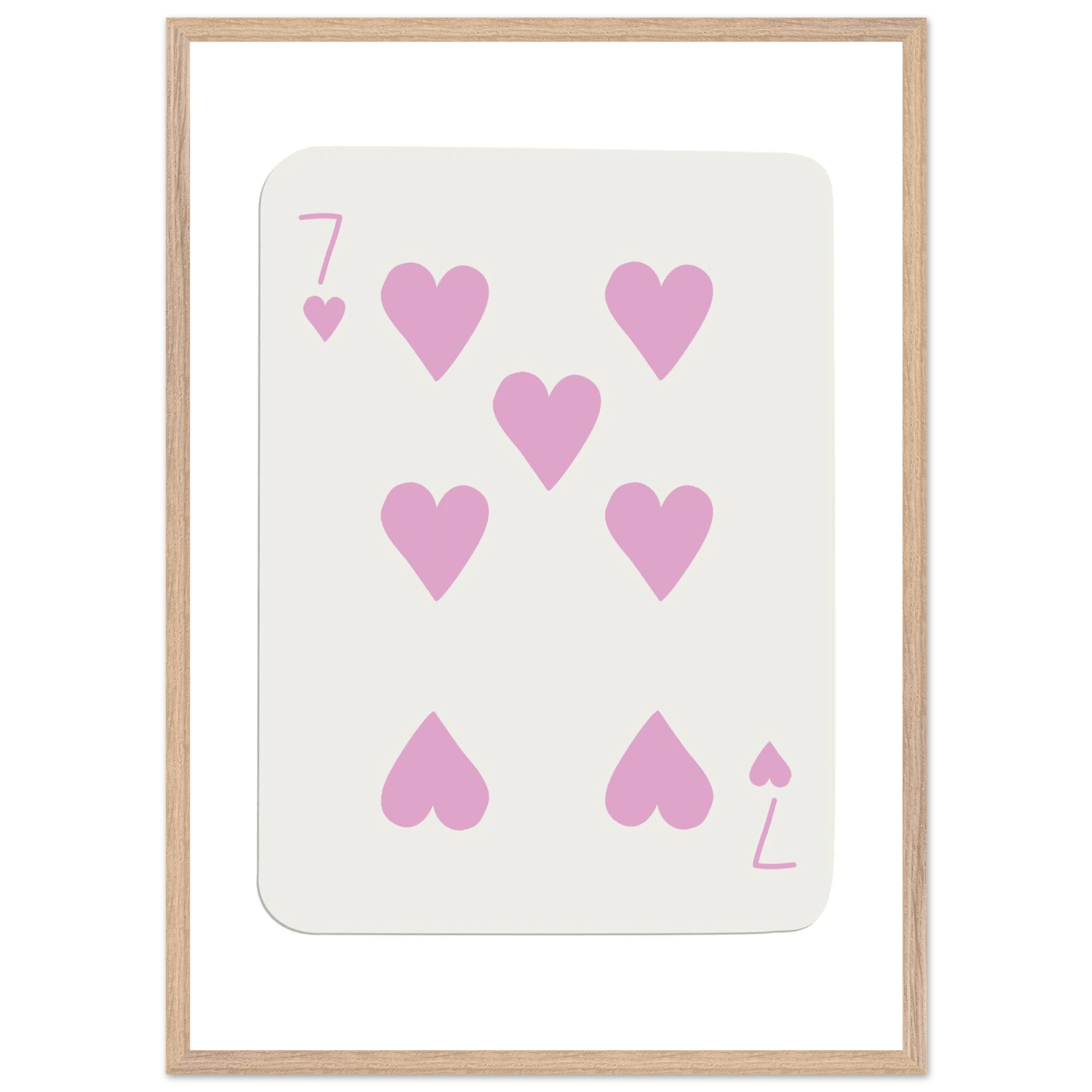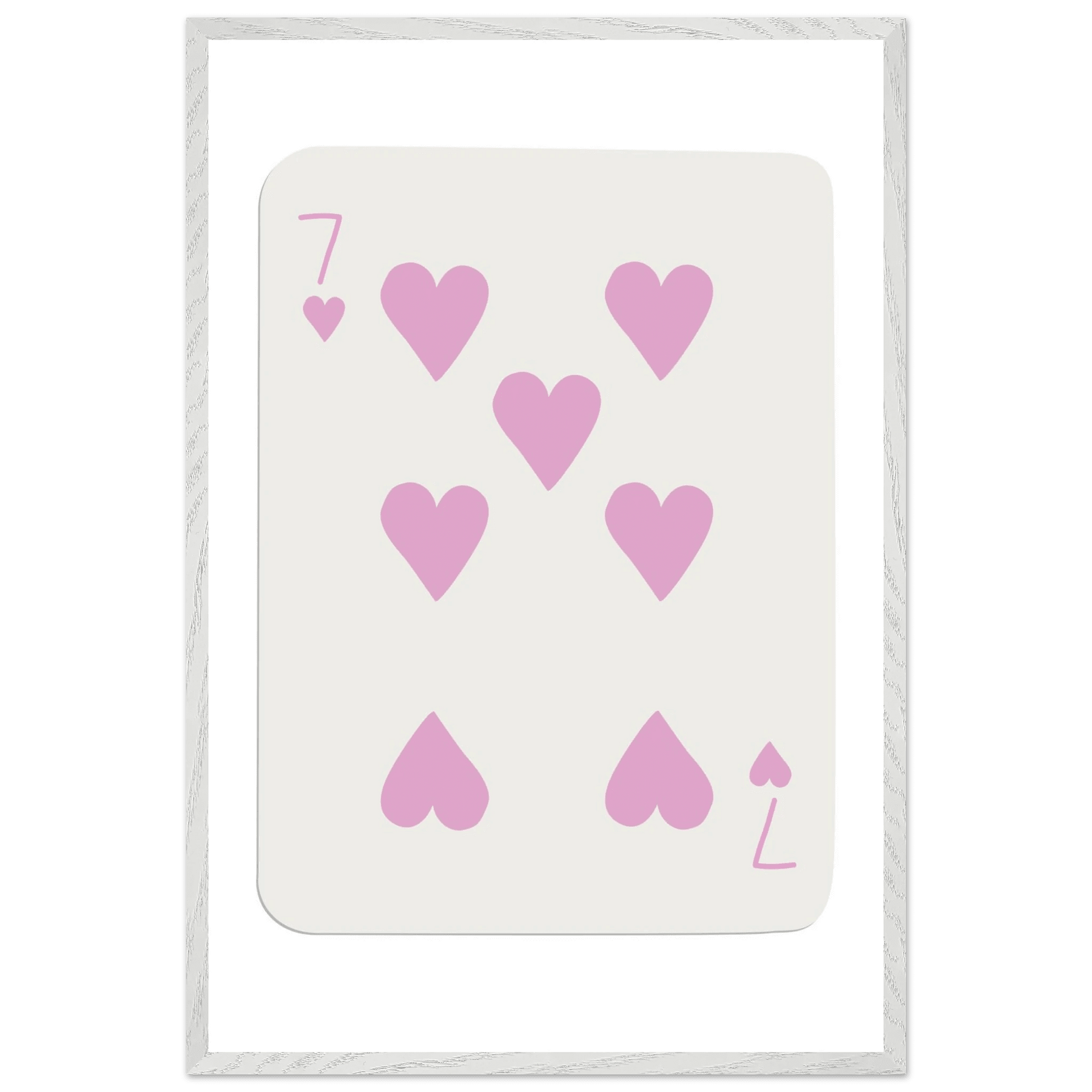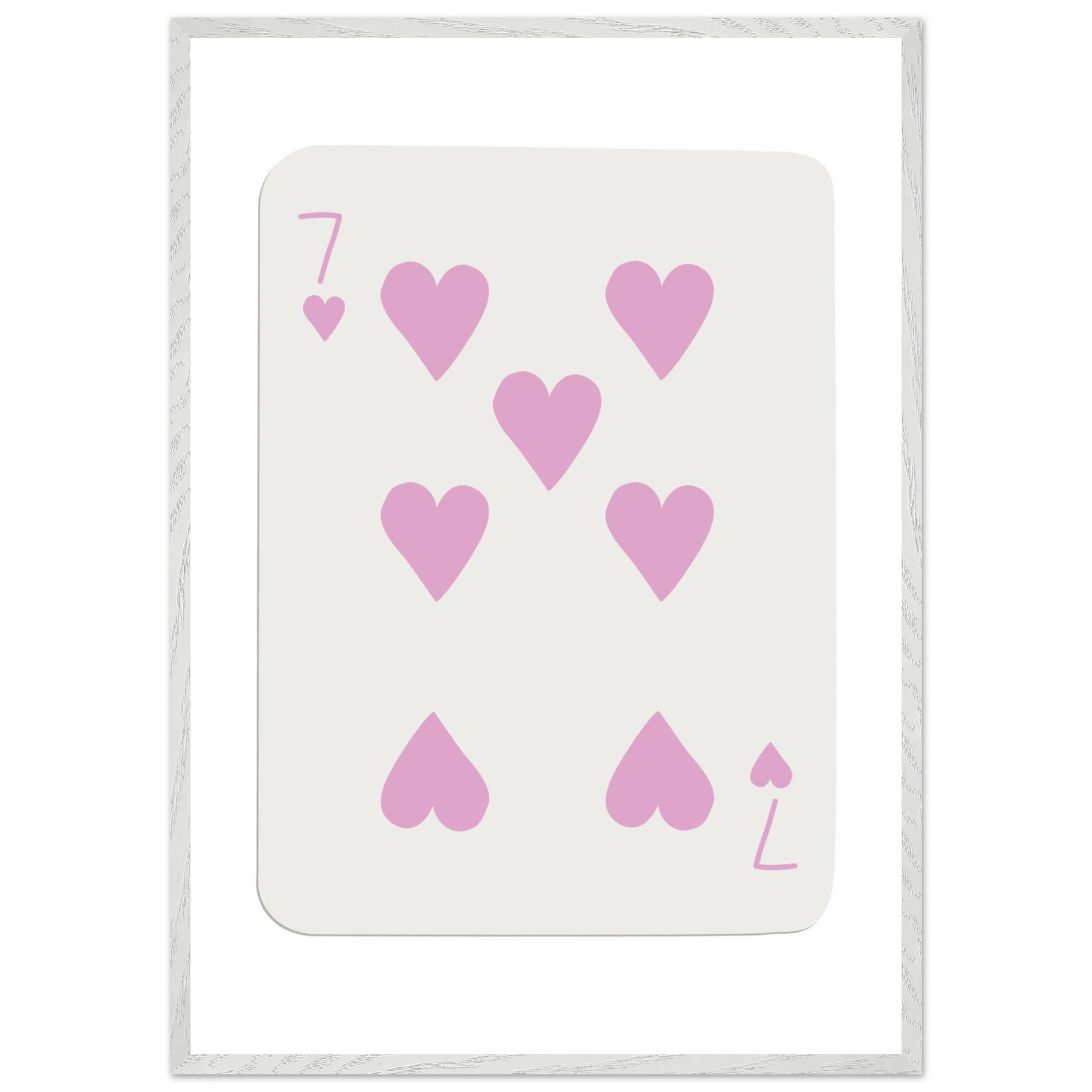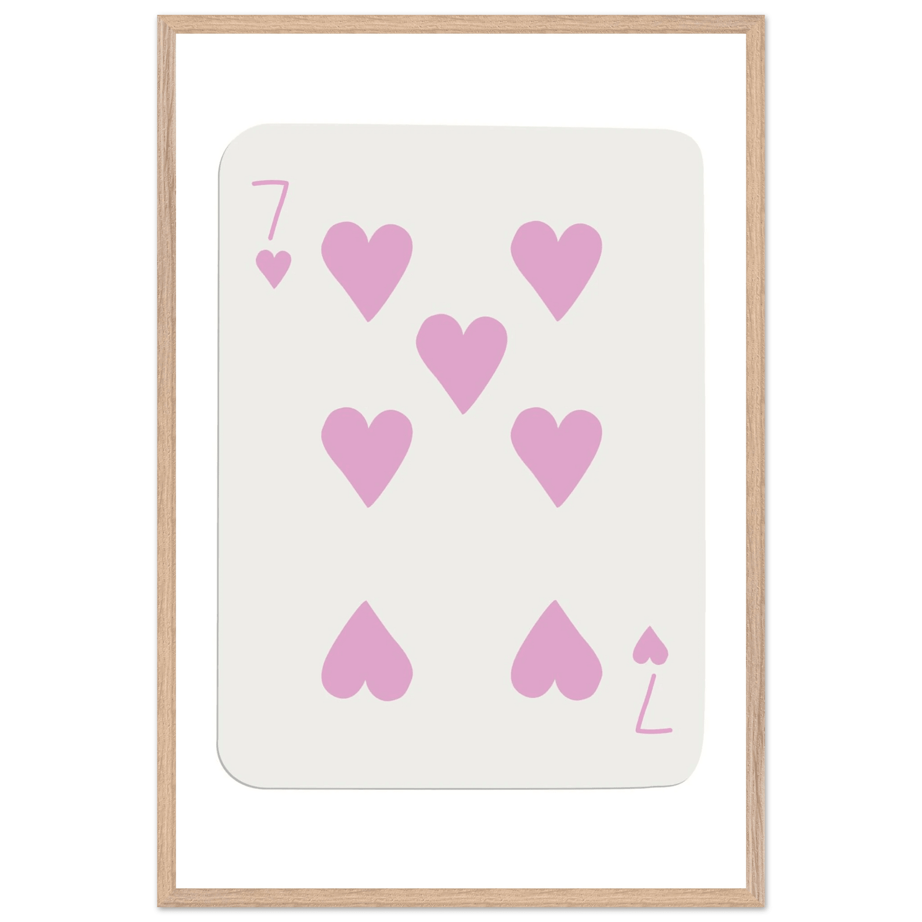 Charming Seven of Hearts Poker Card Print - Mounted Framed Poster Art with Eco-Friendly Wood Frame