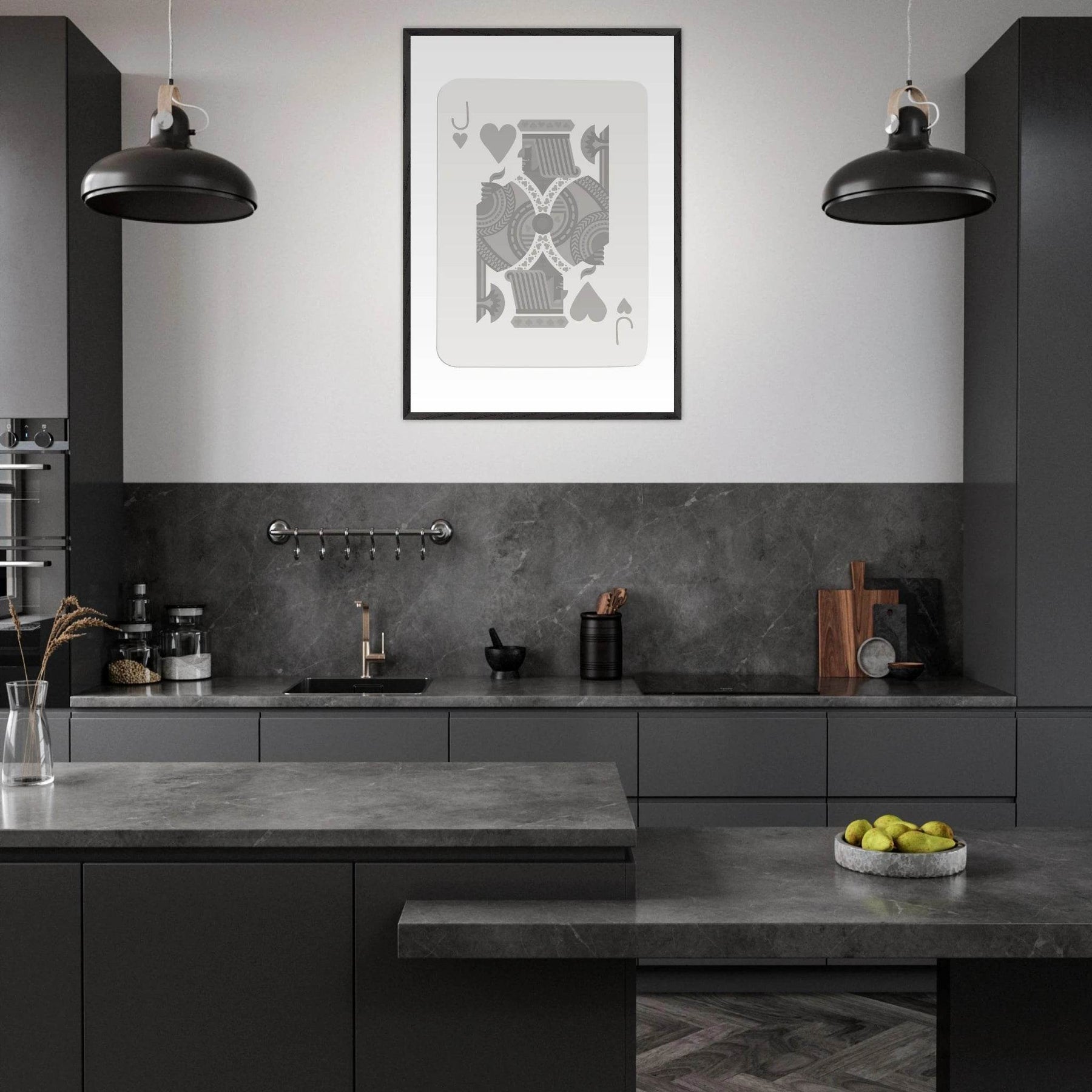 The Jack of Hearts Poker Card Print is meticulously crafted with materials that respect the environment, making it a conscientious choice for those who value sustainability. The grey and white color scheme complements various interior styles, from contemporary to eclectic, making it a versatile addition to any room.