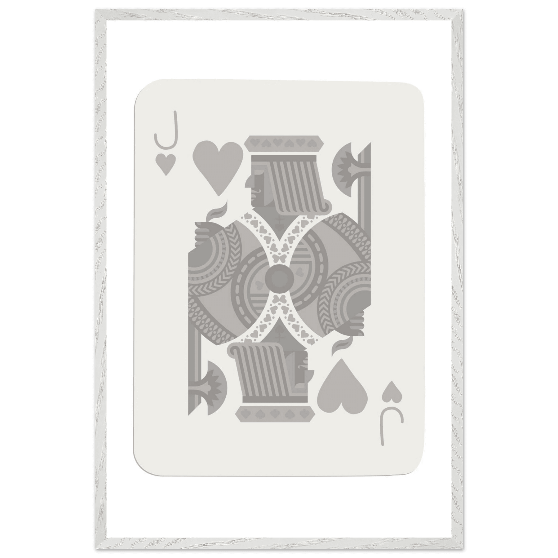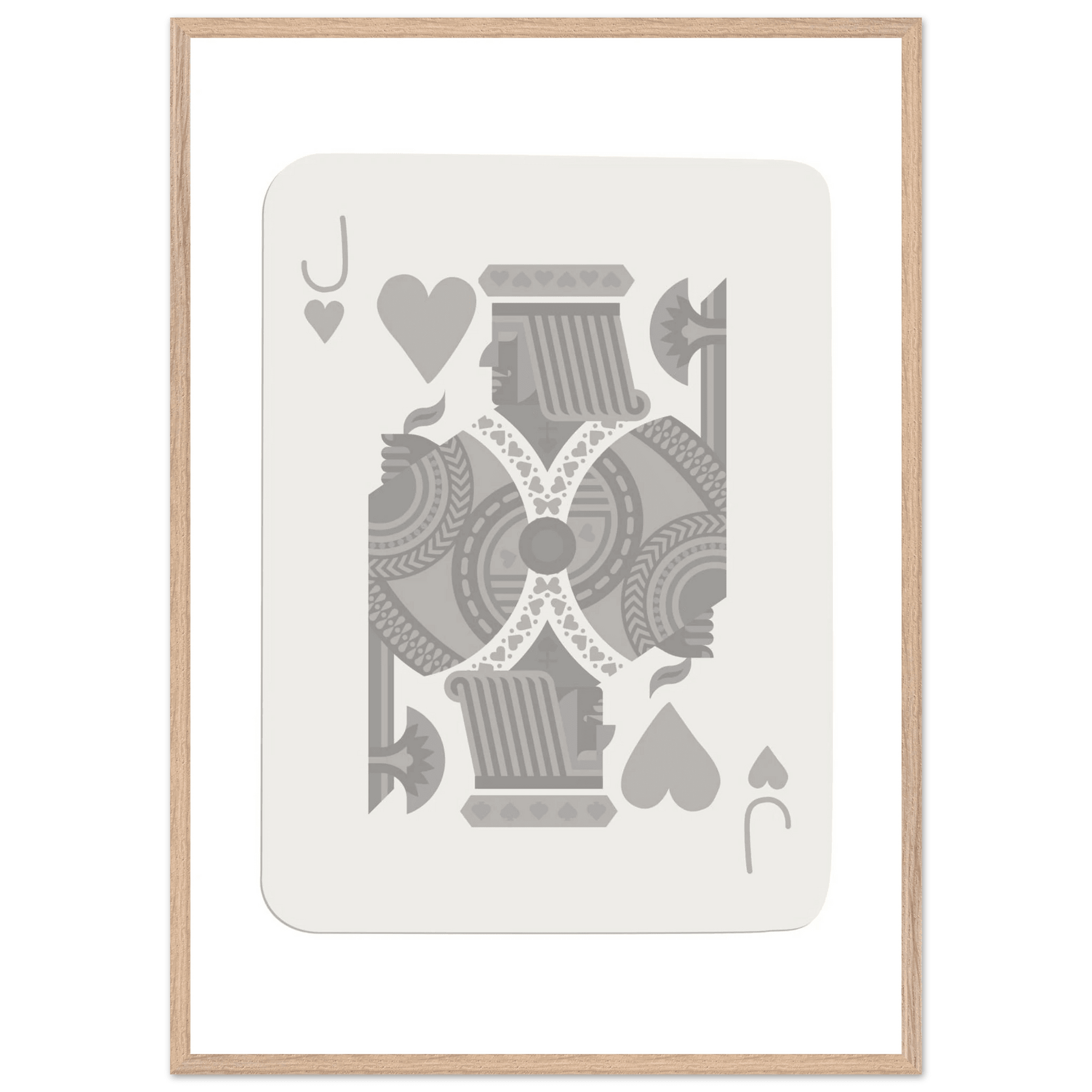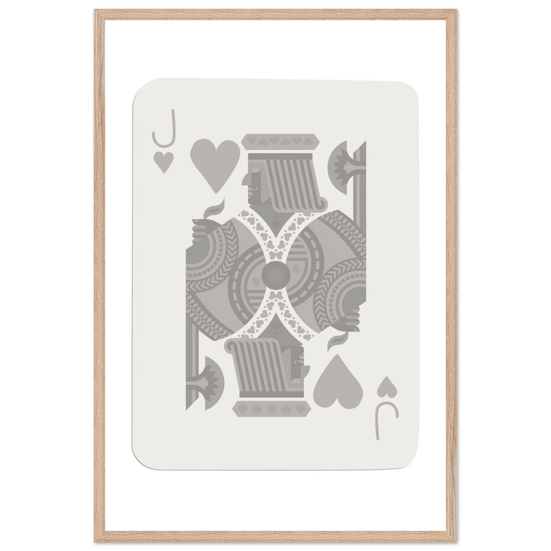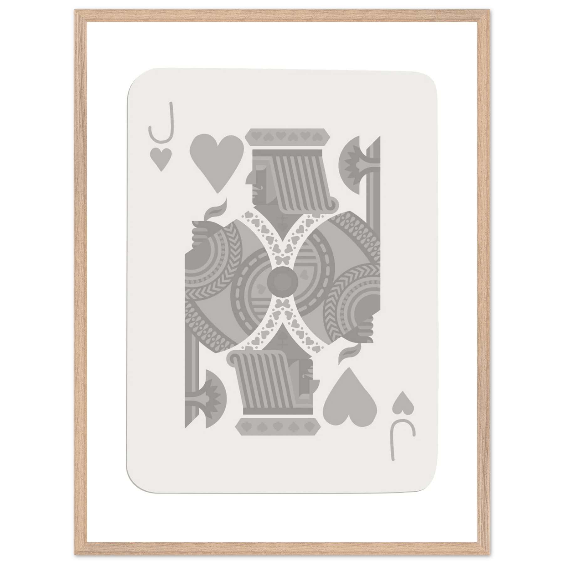 Jack of Hearts Poker Card Print - Minimalist Grey & White Art - Framed Poster, Eco-Friendly Wood
