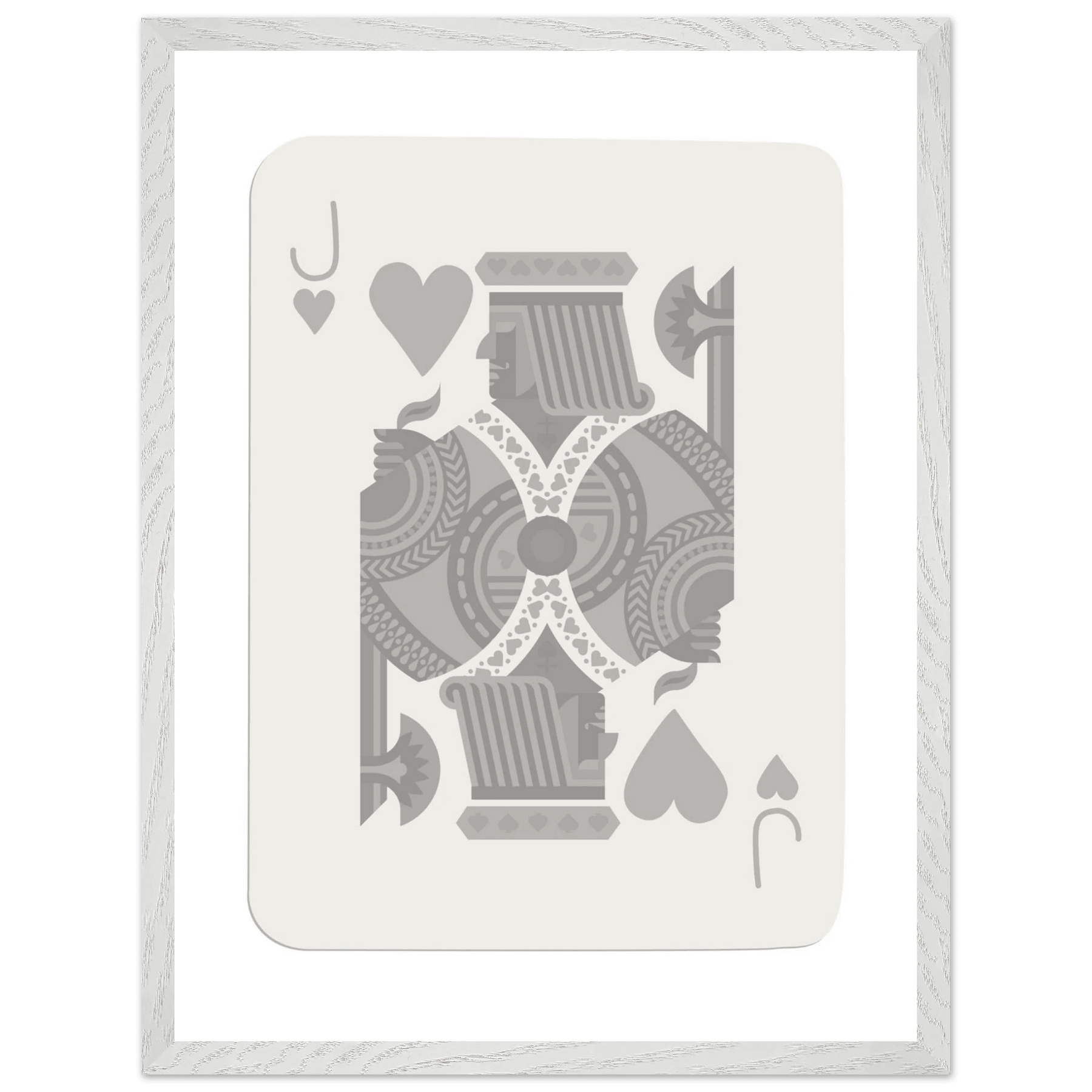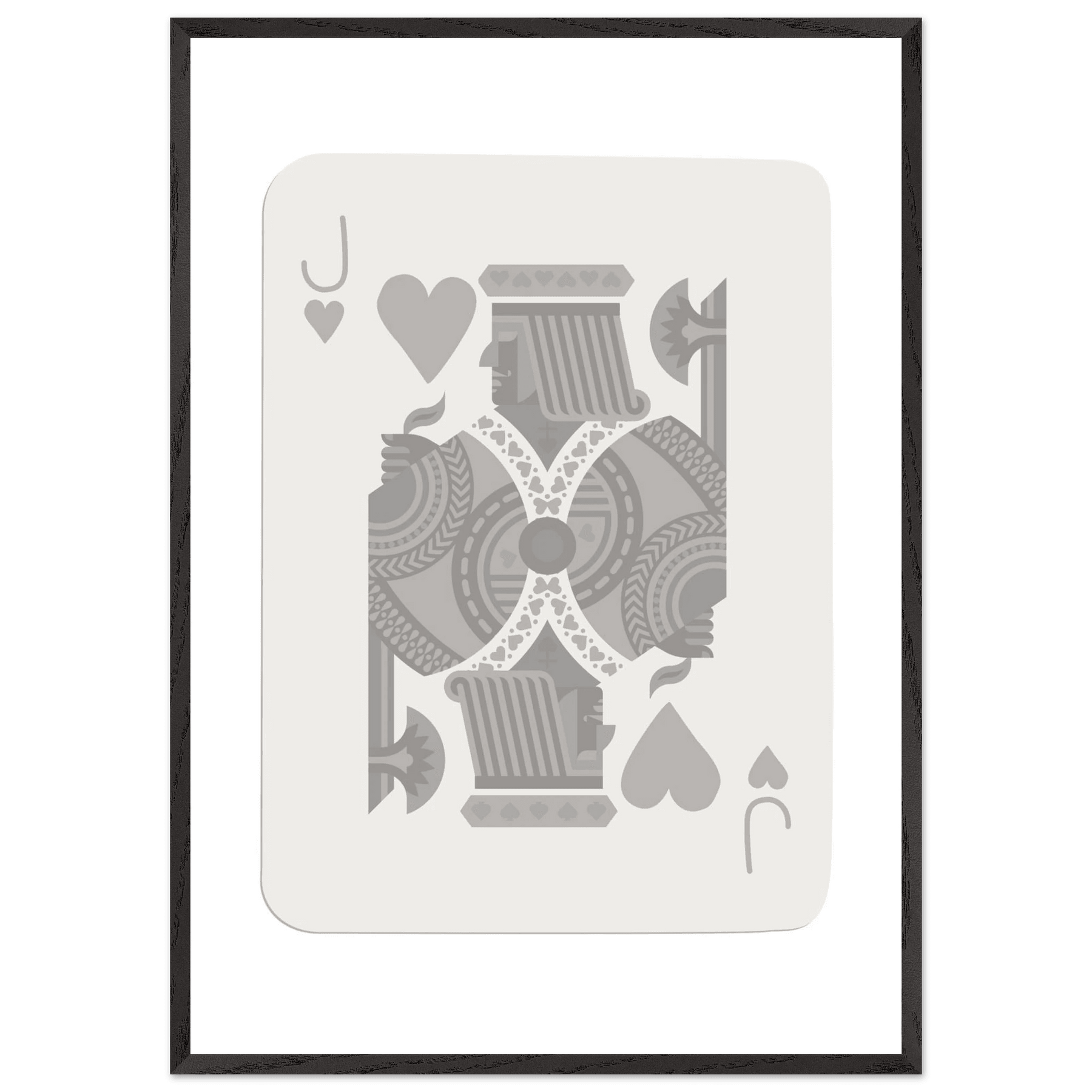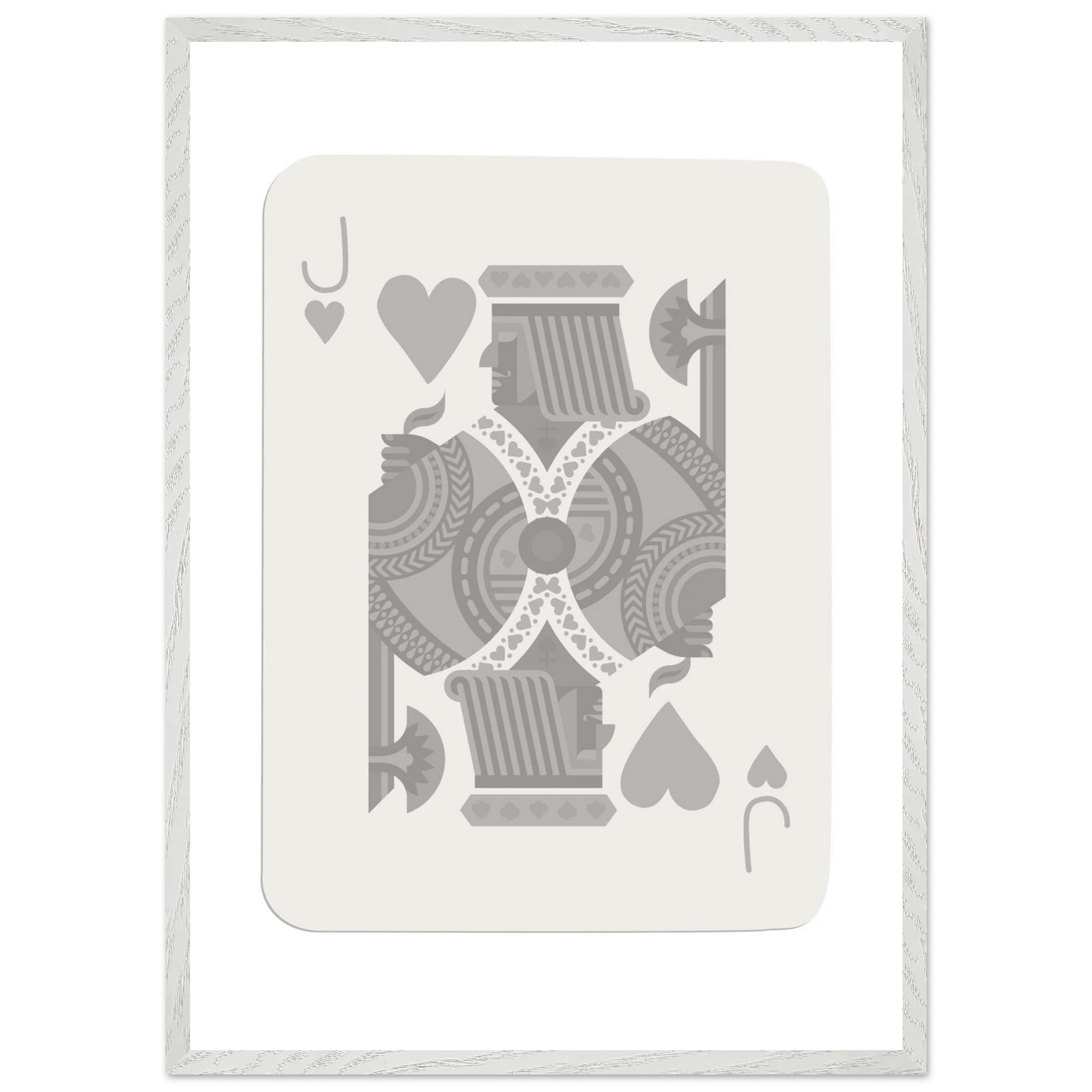 Jack of Hearts Poker Card Print - Minimalist Grey & White Art - Framed Poster, Eco-Friendly Wood