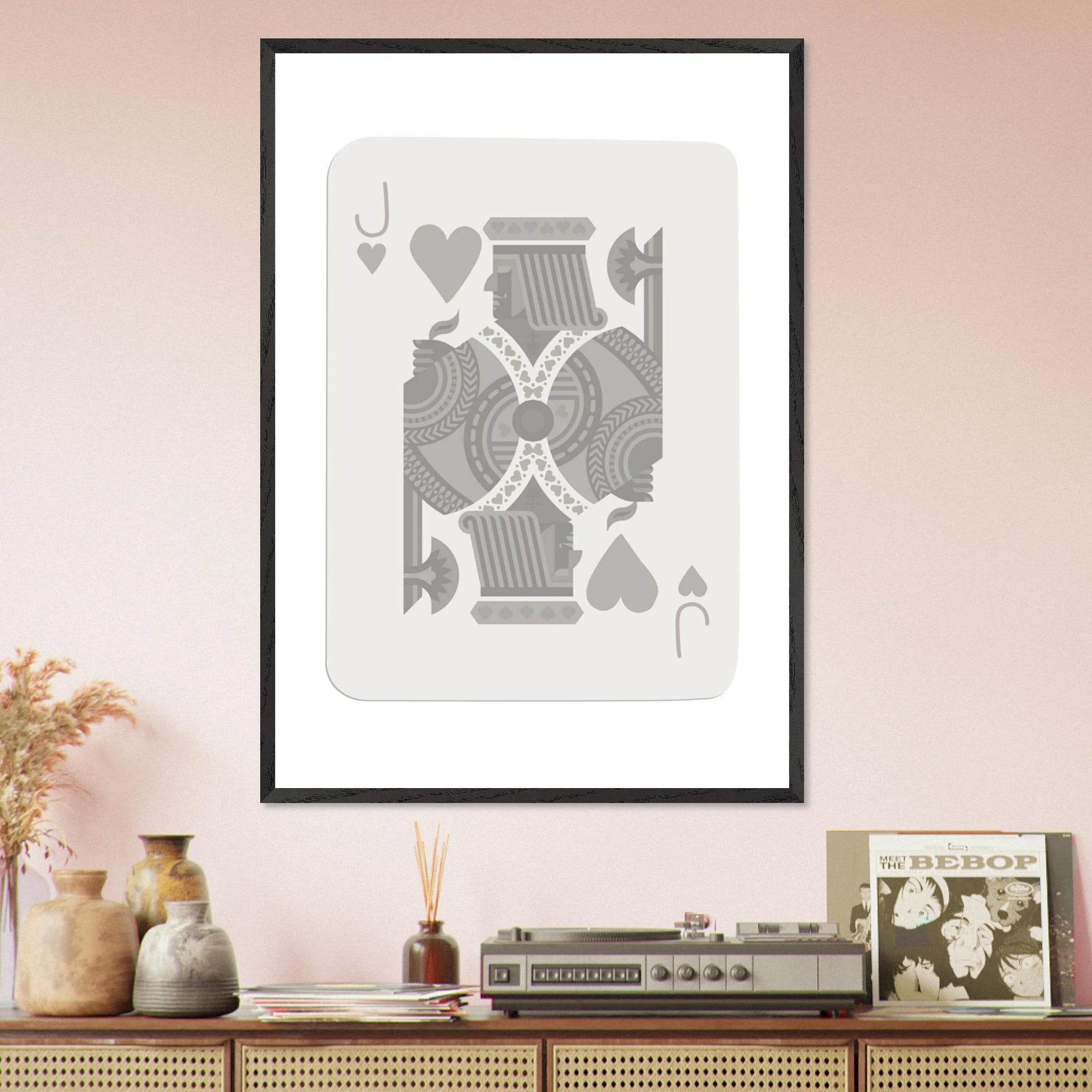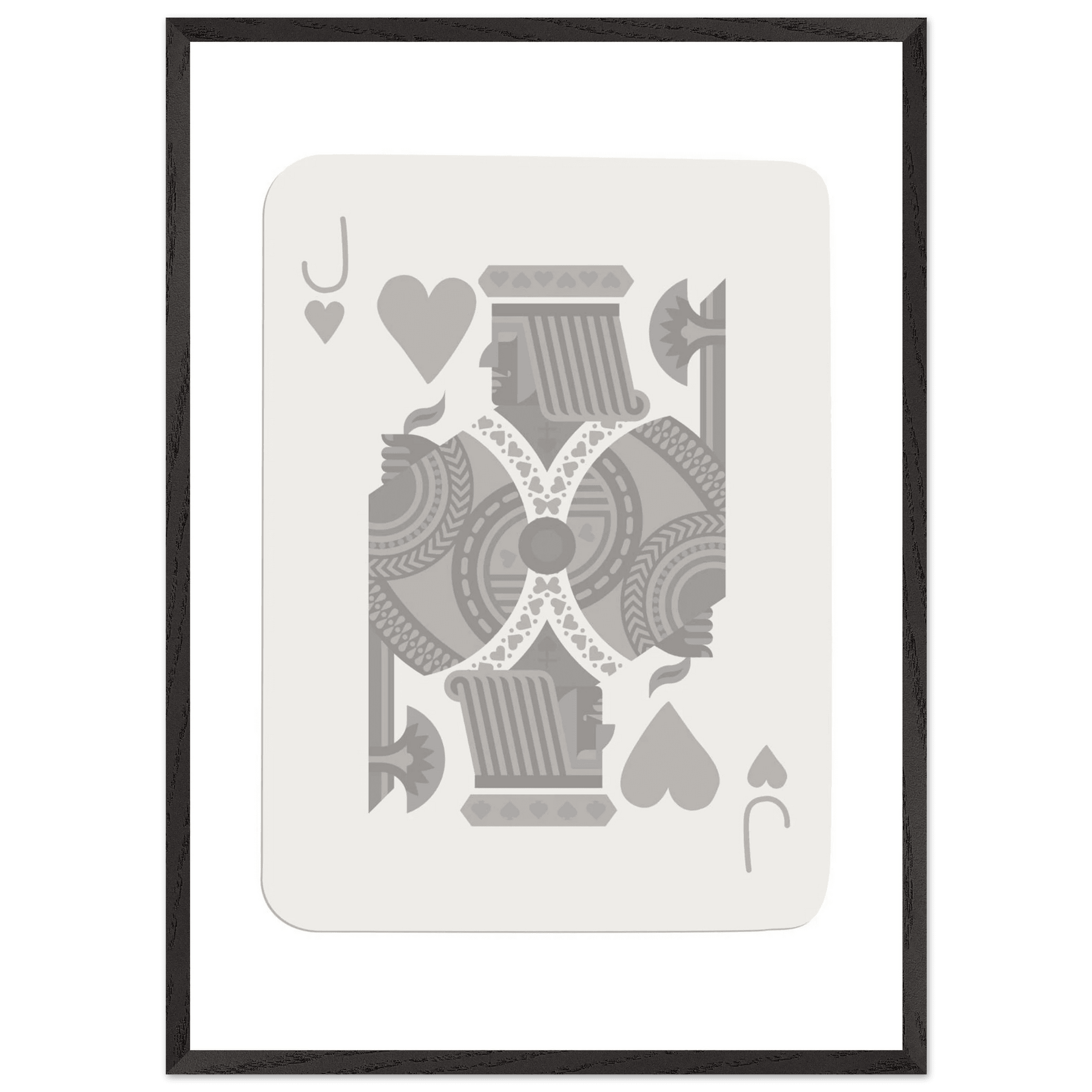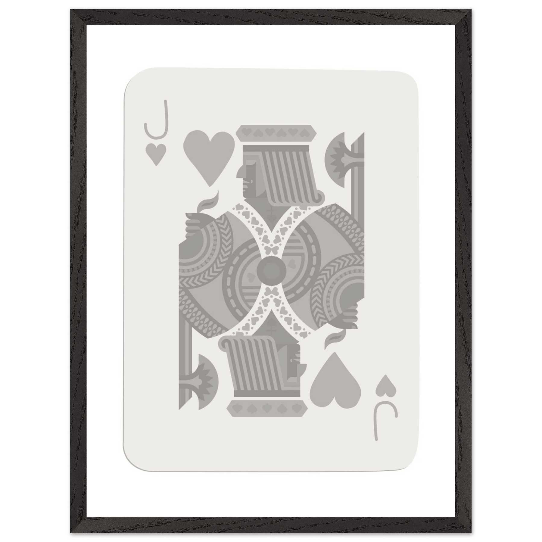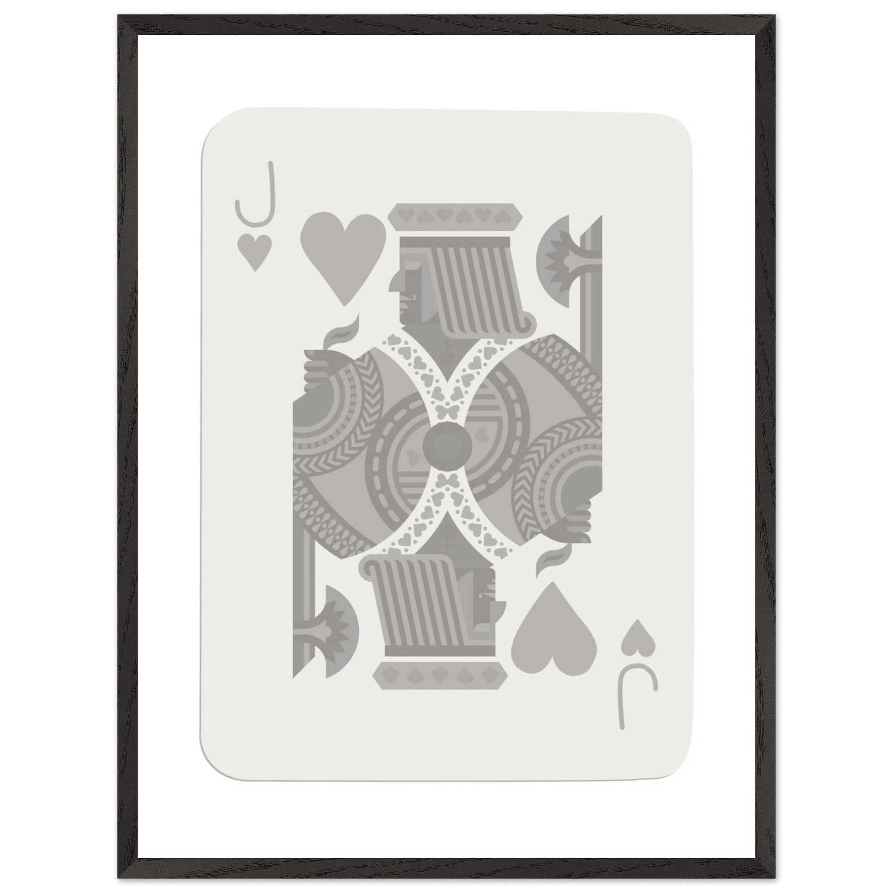 Jack of Hearts Poker Card Print - Minimalist Grey & White Art - Framed Poster, Eco-Friendly Wood