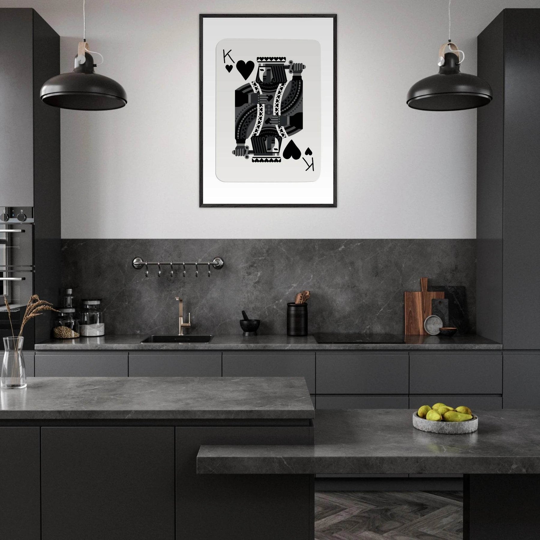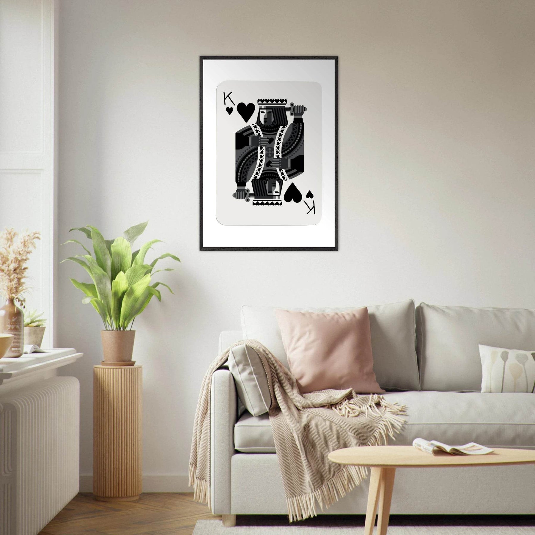 The King of Spades Modern Minimalist Poker Card Art - Mounted Framed Poster, Eco-Friendly Wood Frame in Your Choice of Style is a captivating addition to any space, combining modern design with a nod to classic gaming. This exquisite artwork serves as more than just decor; it is a statement piece that reflects a passion for card games and minimalism. Crafted with care, it offers immense aesthetic value while being eco-friendly.