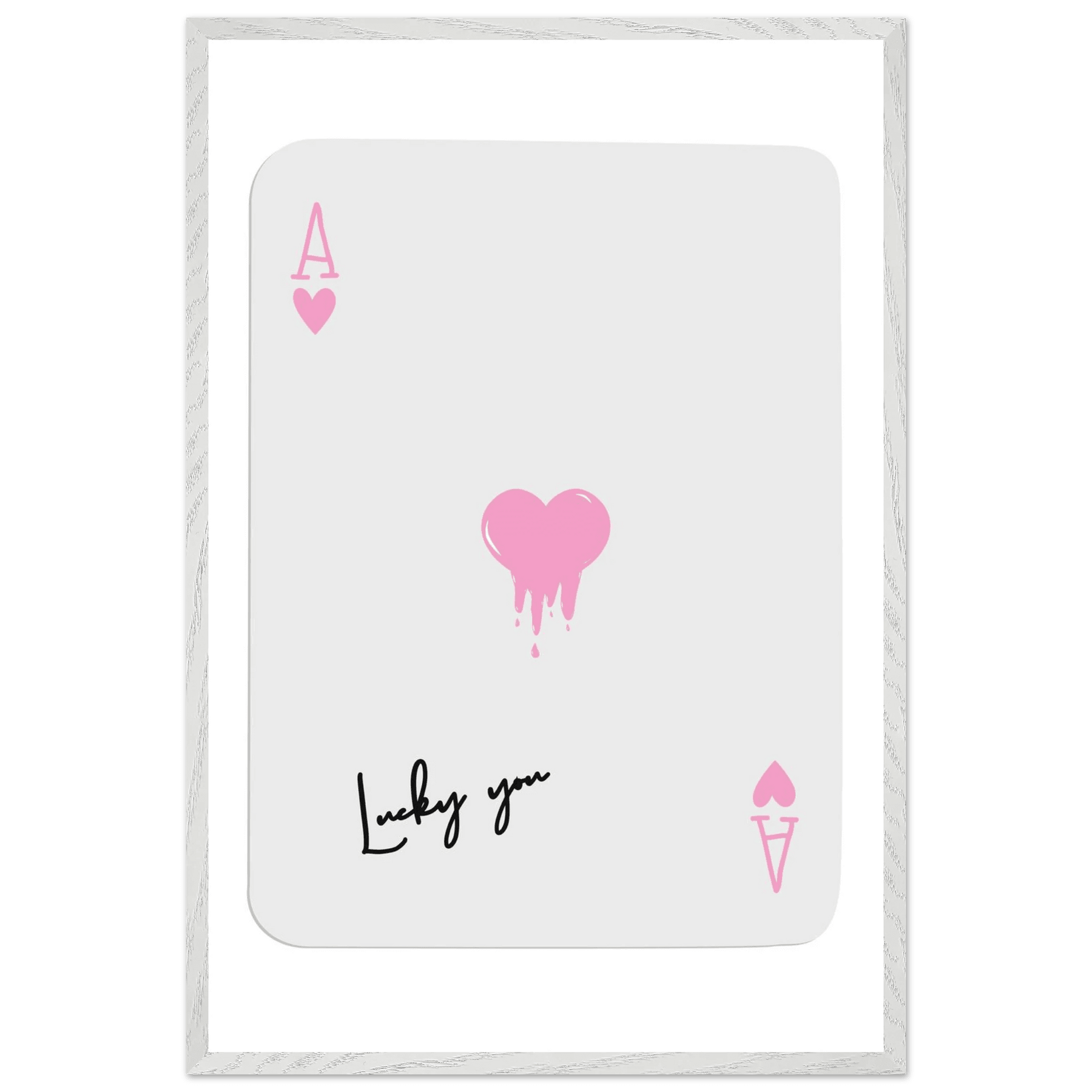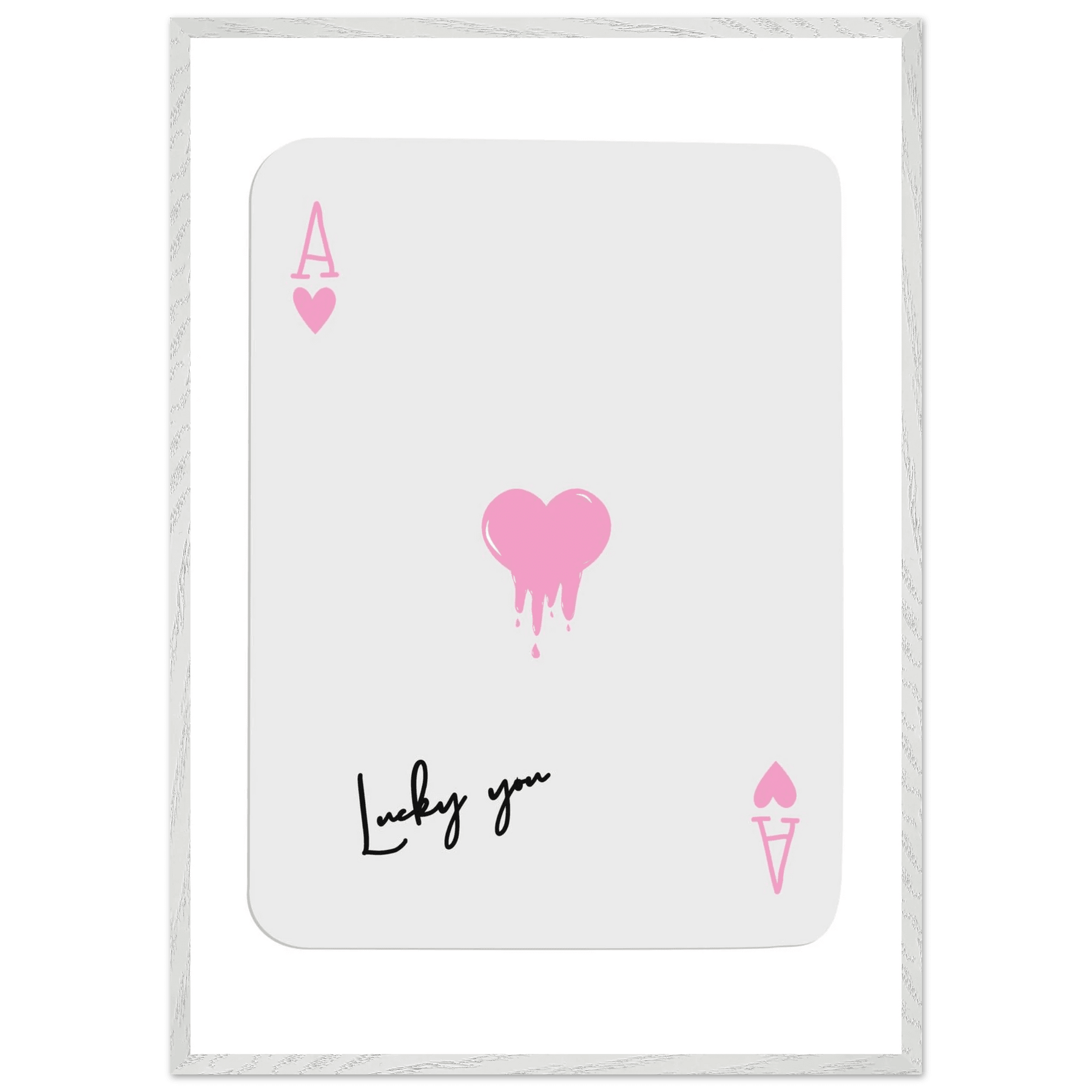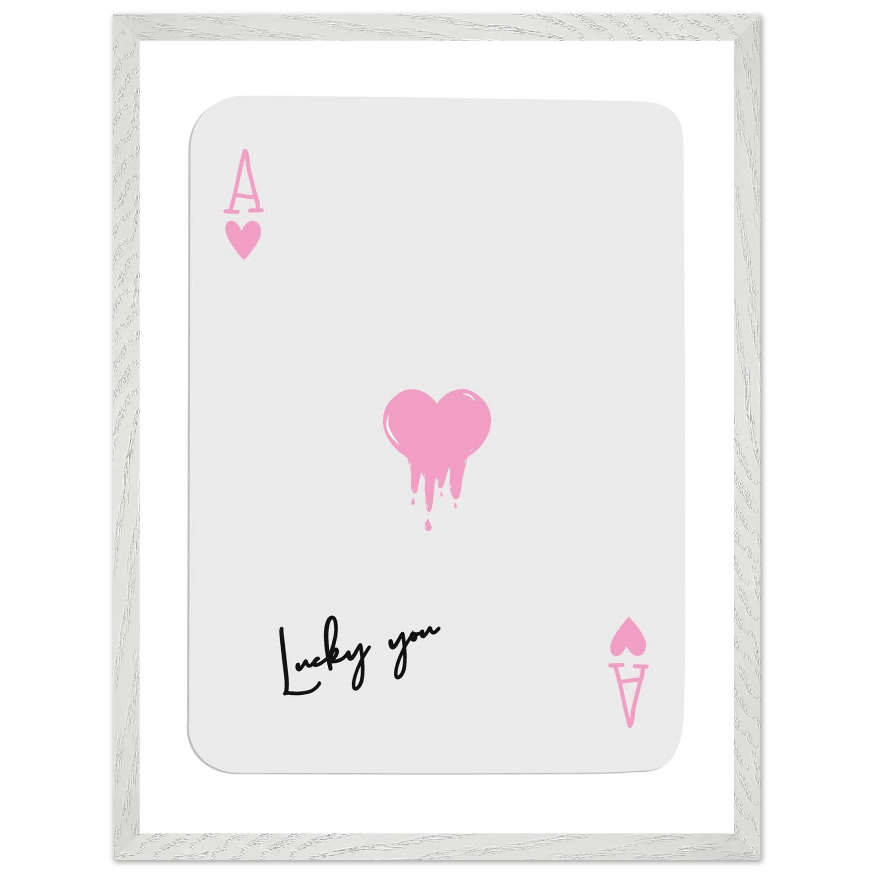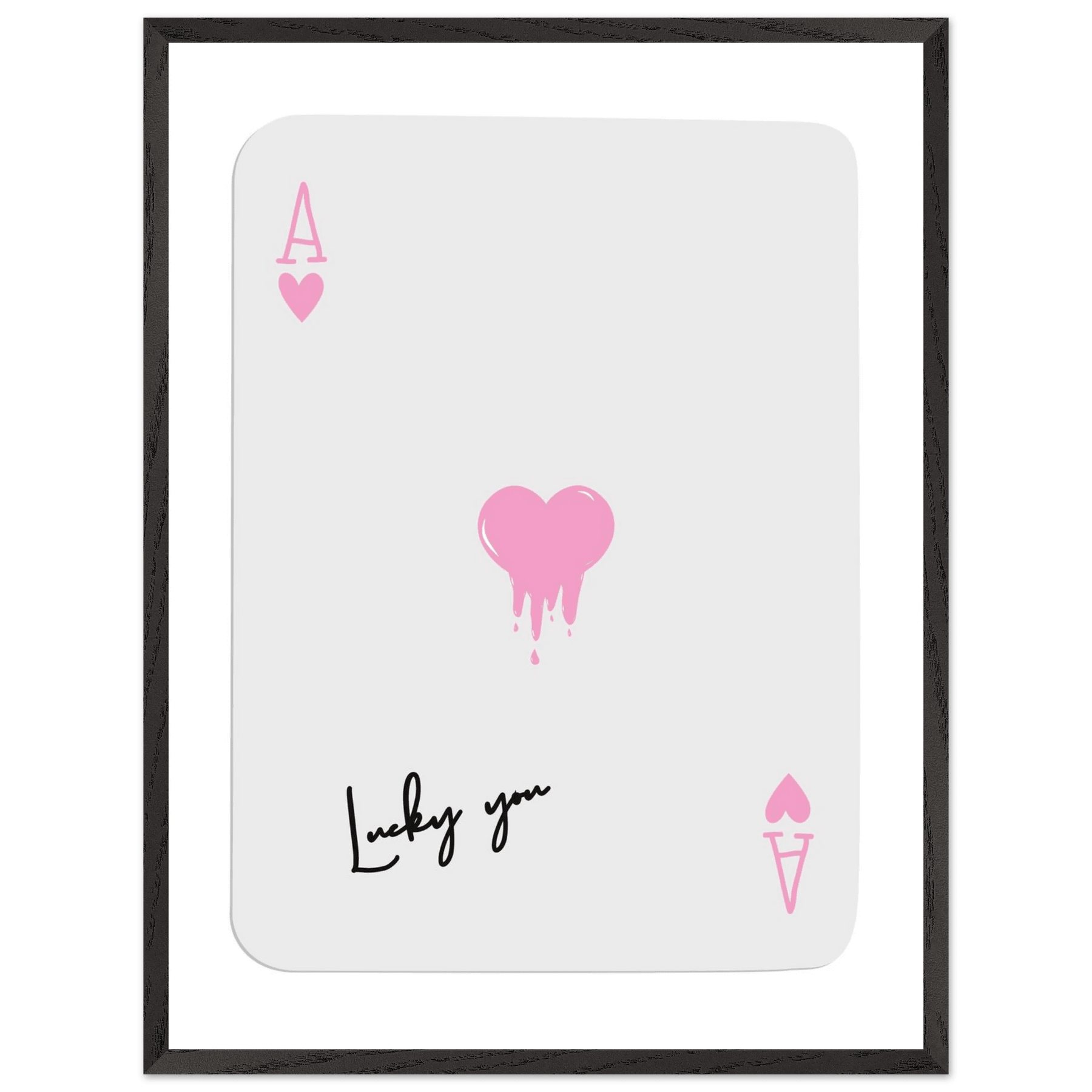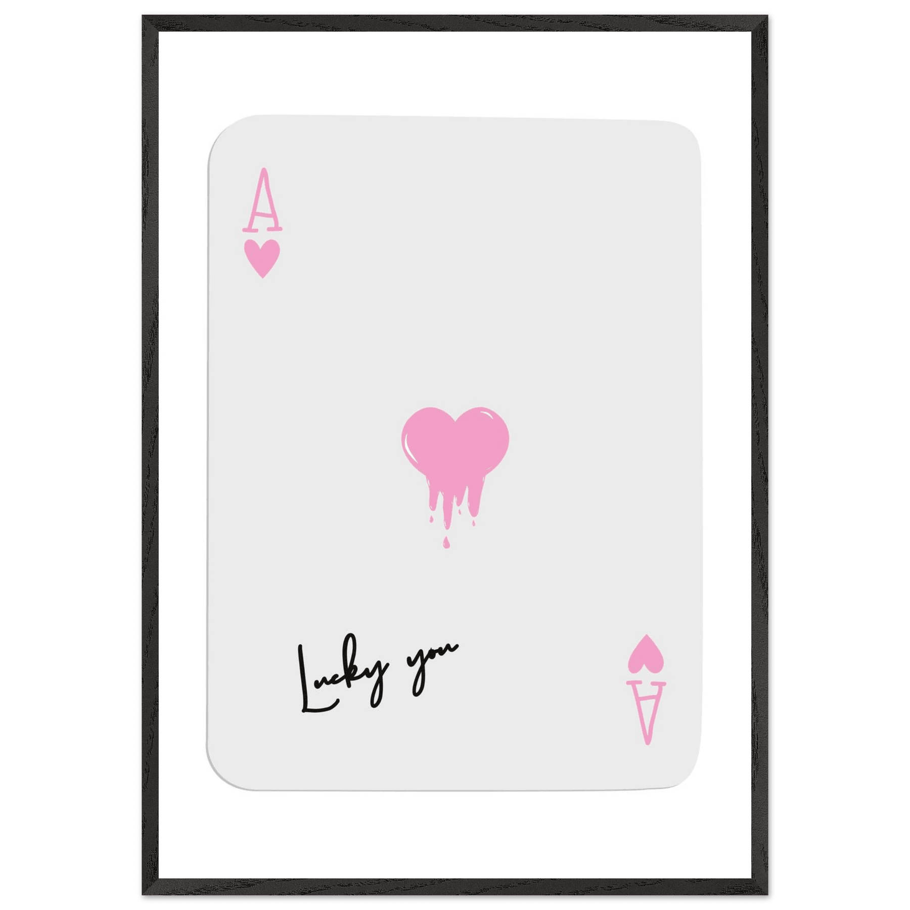 Lucky You - Ace of Hearts Drip Pink Print - Mounted Framed Poster Art with Eco-Friendly Wood Frame