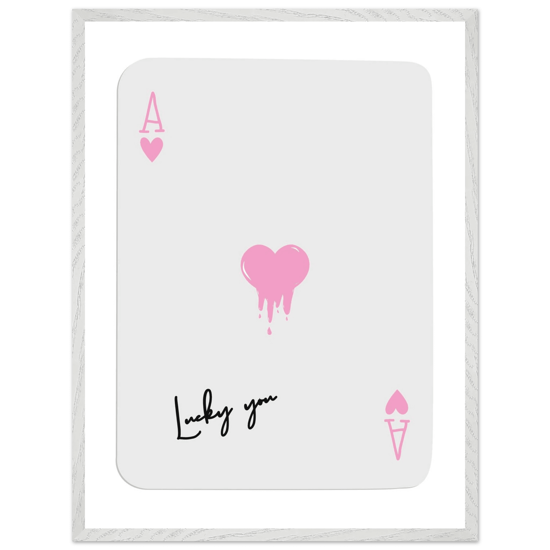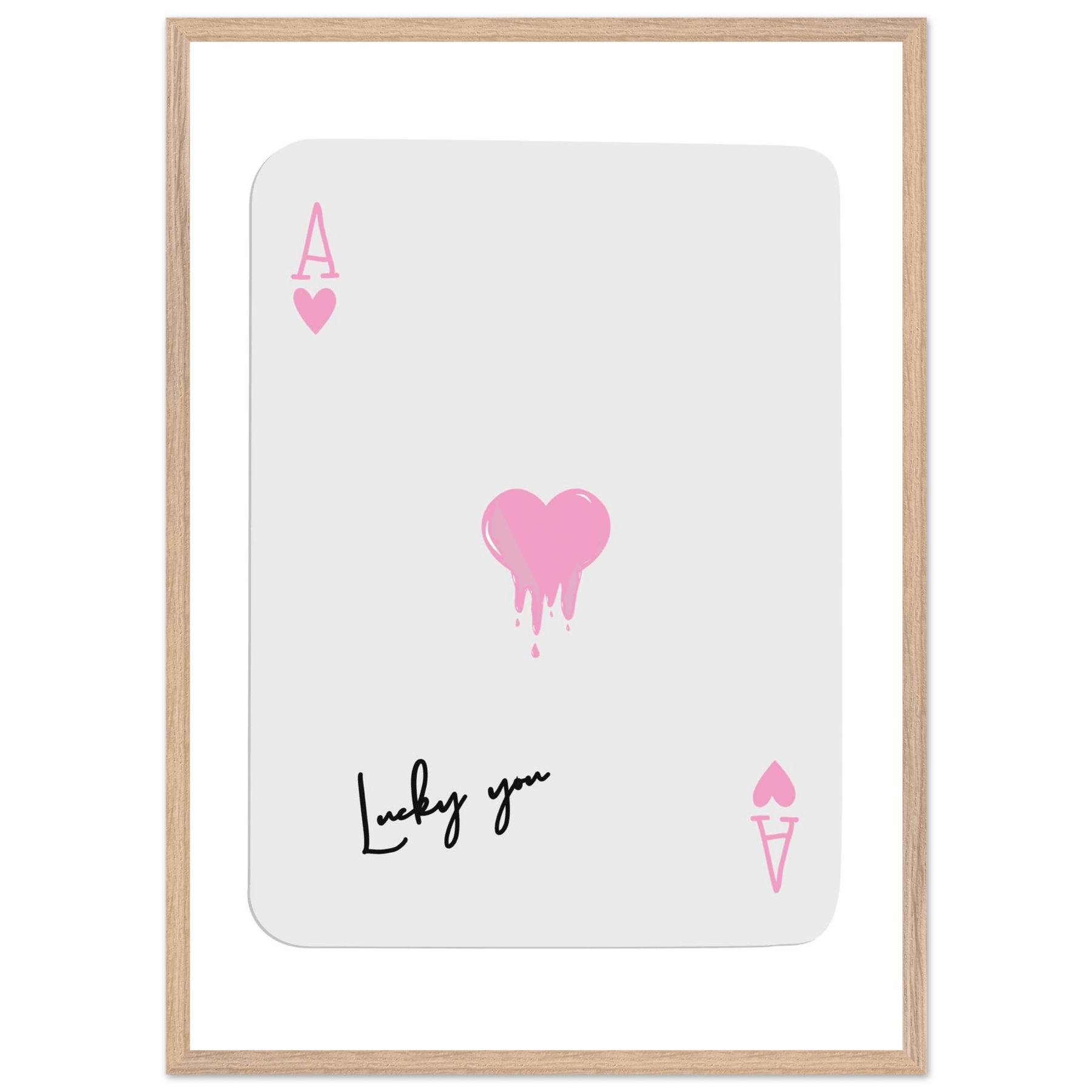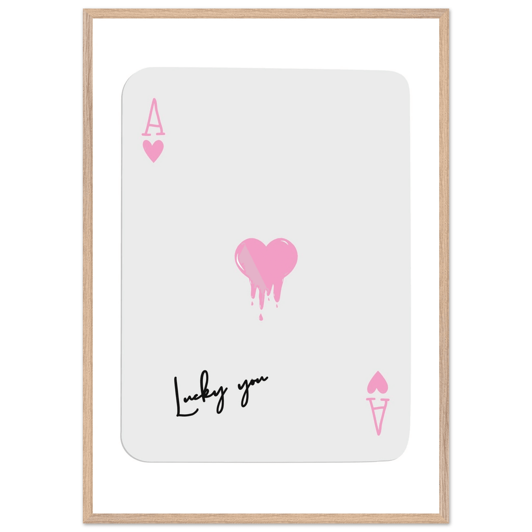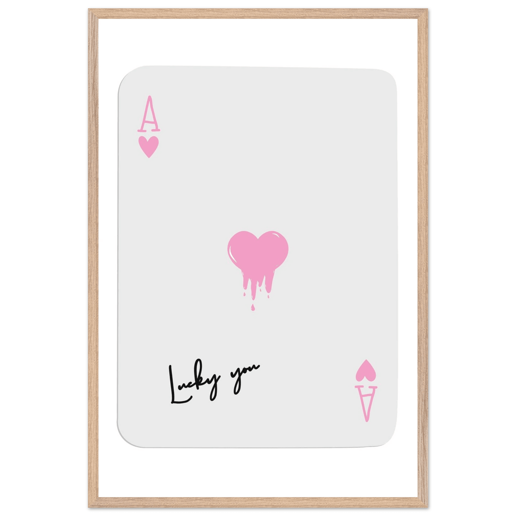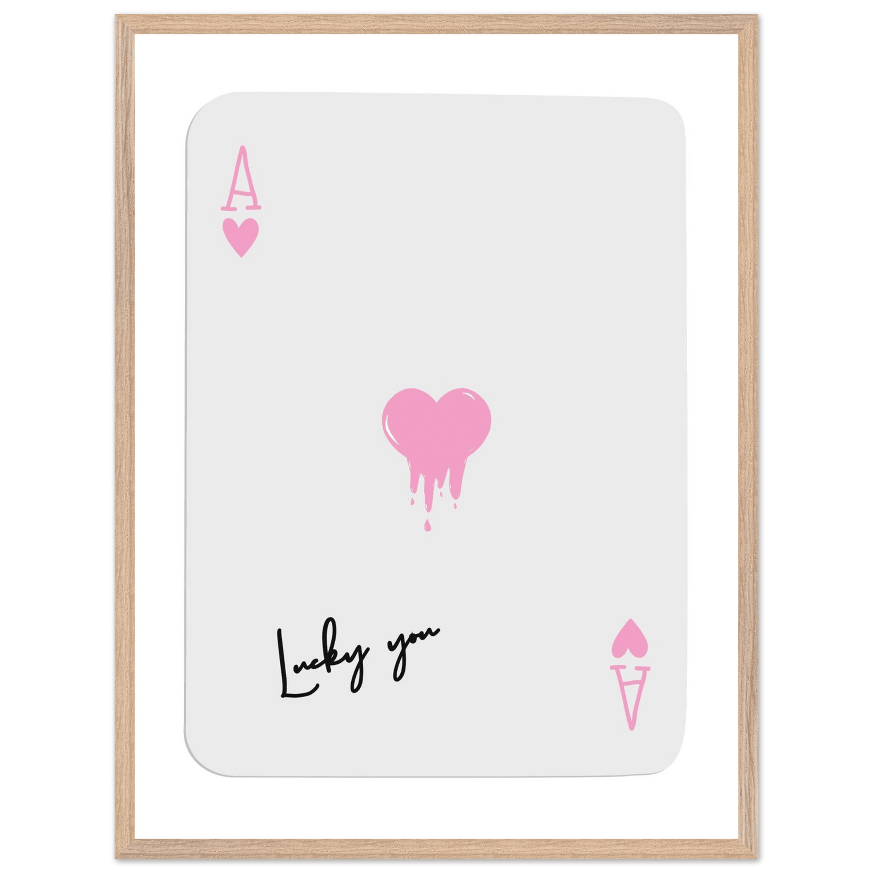 Lucky You - Ace of Hearts Drip Pink Print - Mounted Framed Poster Art with Eco-Friendly Wood Frame