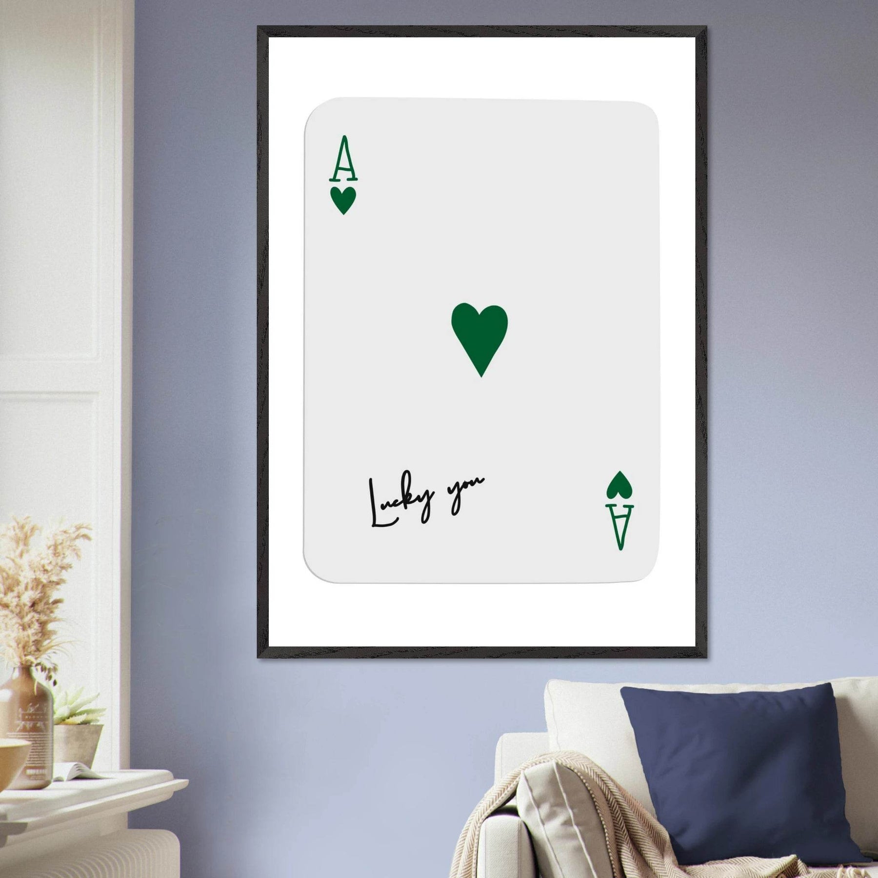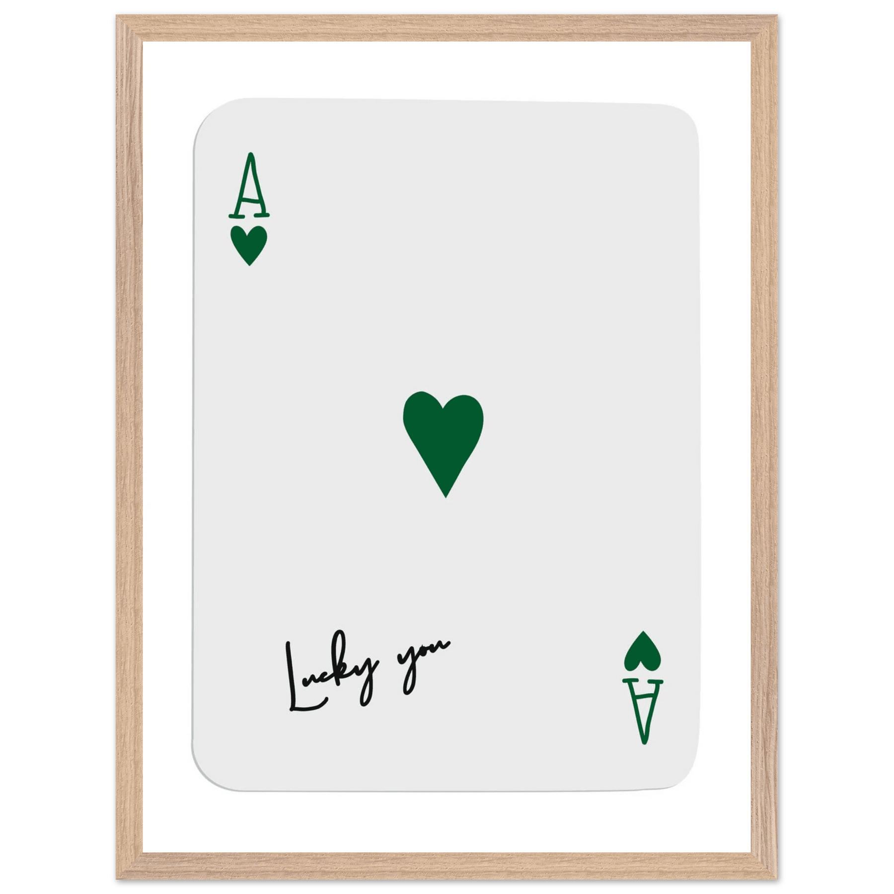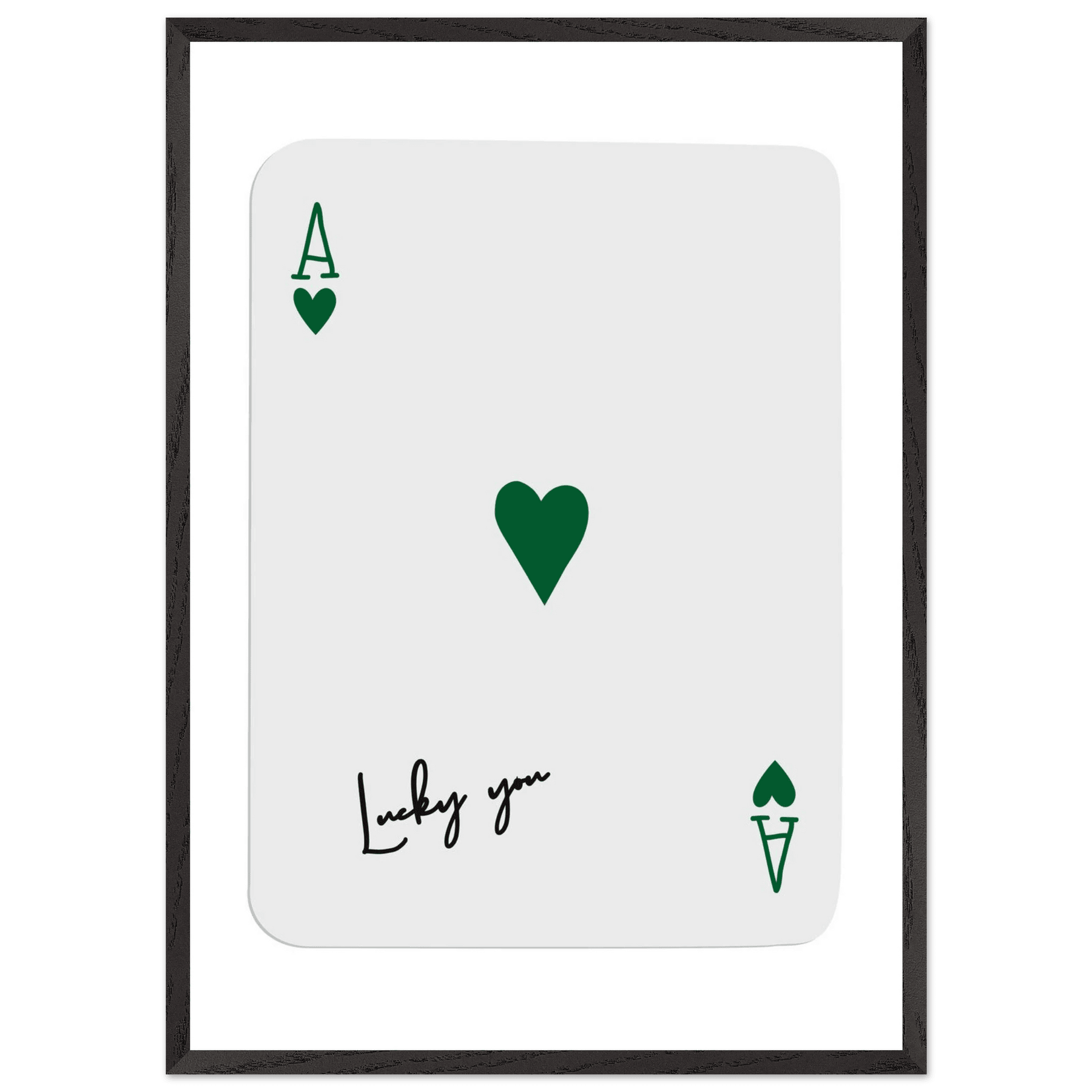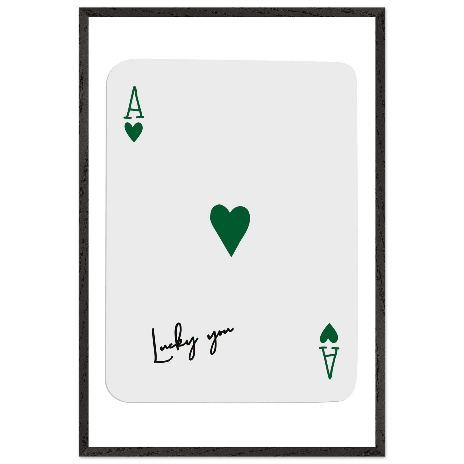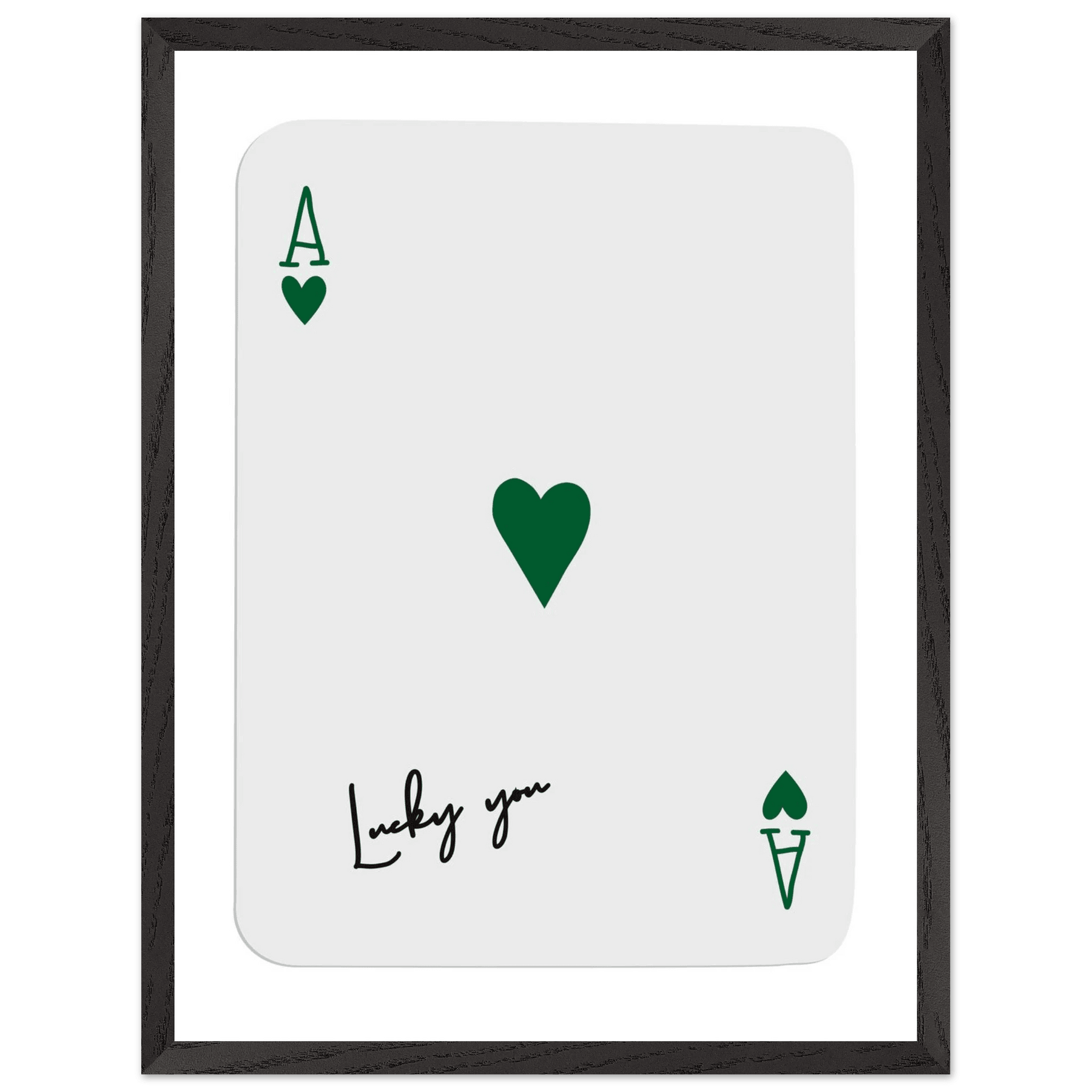 Lucky You Ace of Hearts Poker Card Art - Eco-Friendly Framed Print with Deep Green Accent