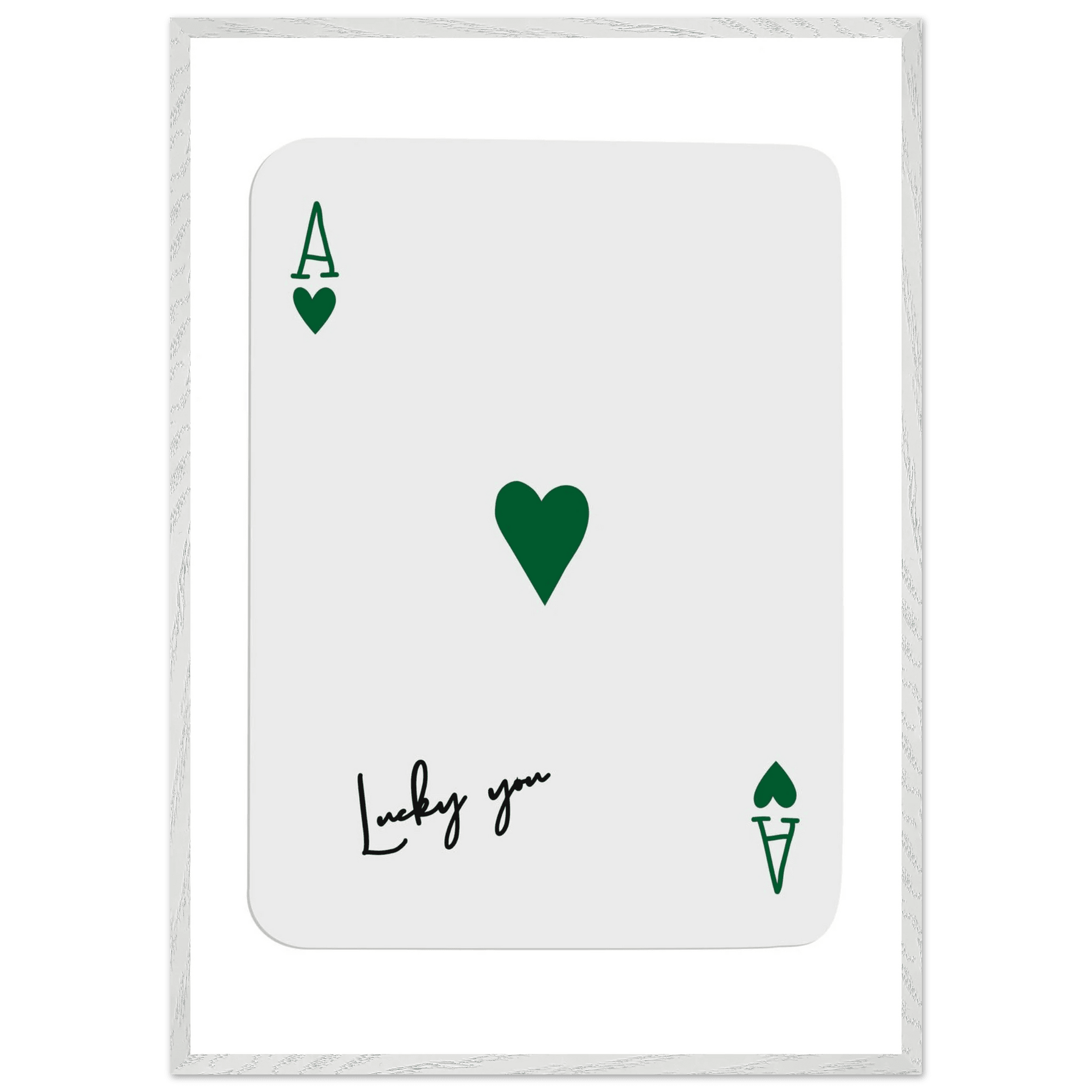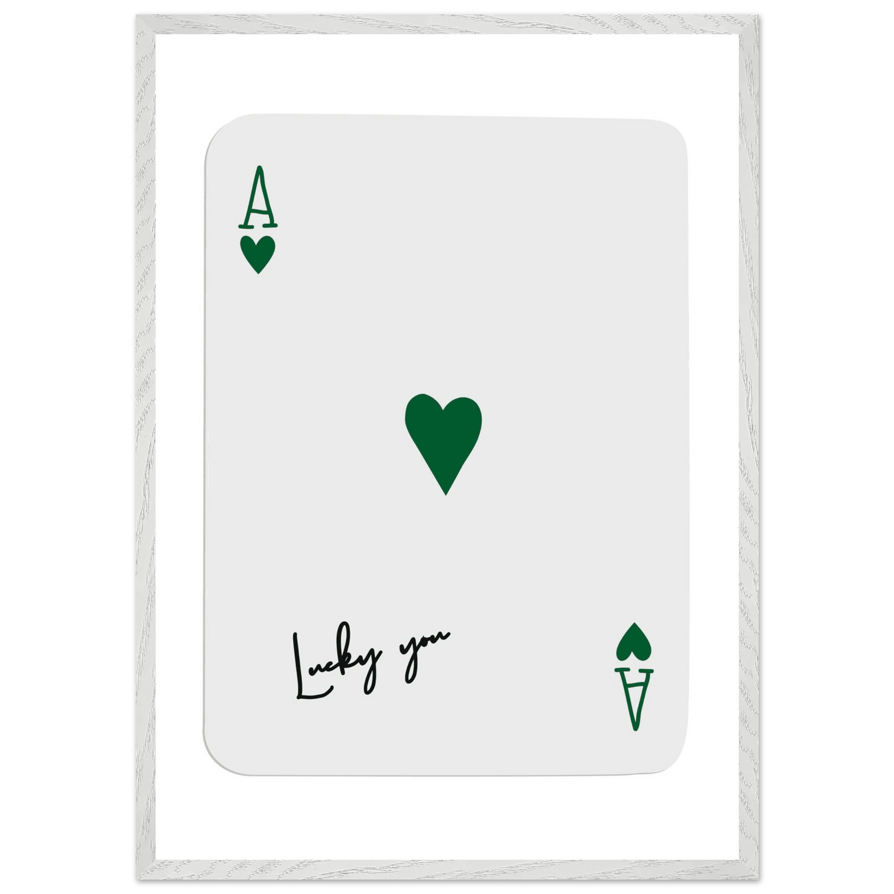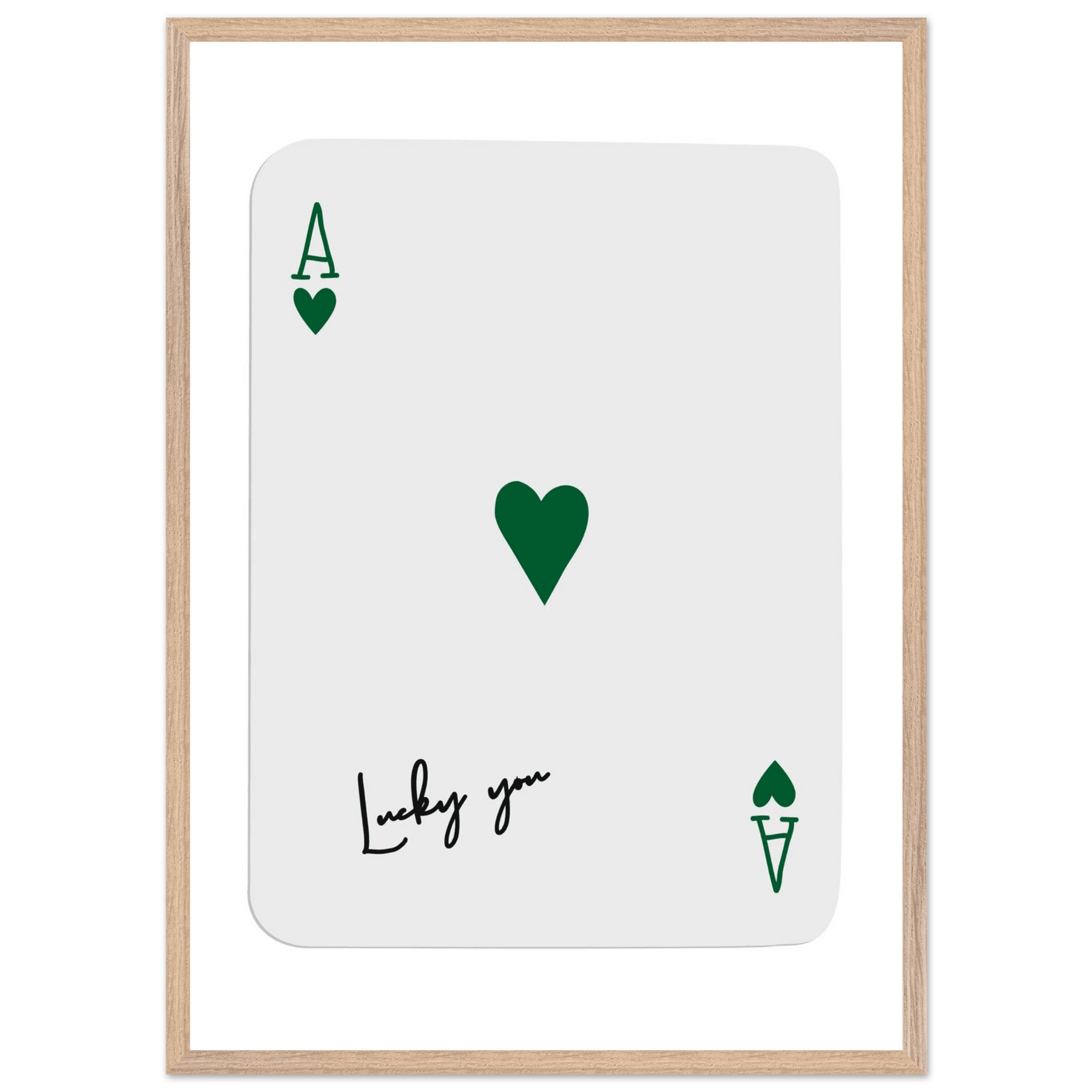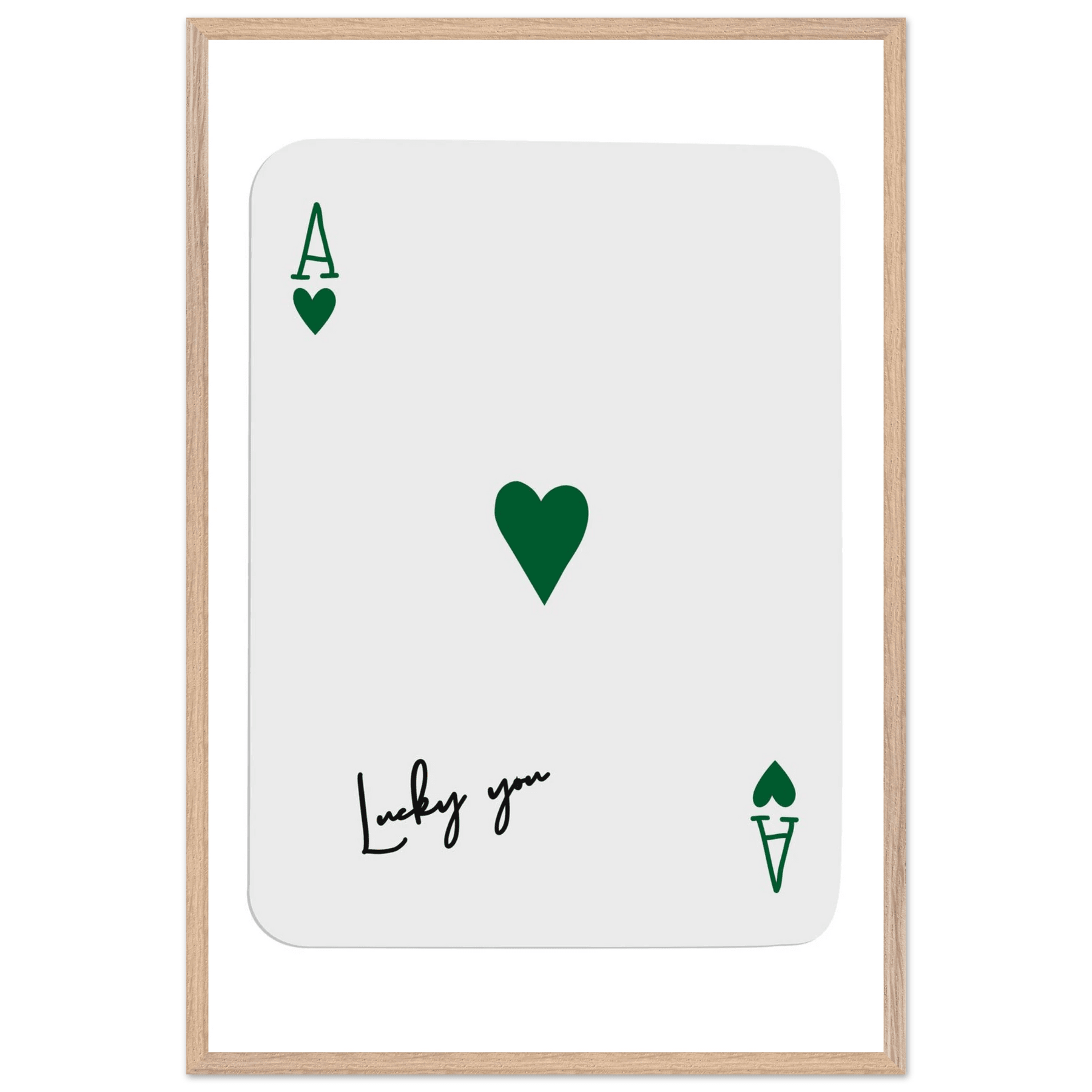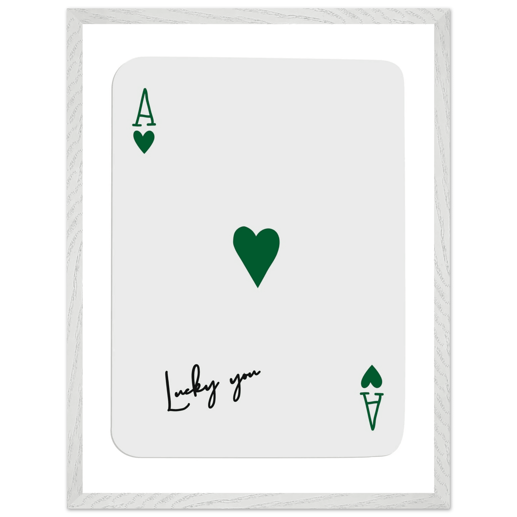 Lucky You Ace of Hearts Poker Card Art - Eco-Friendly Framed Print with Deep Green Accent