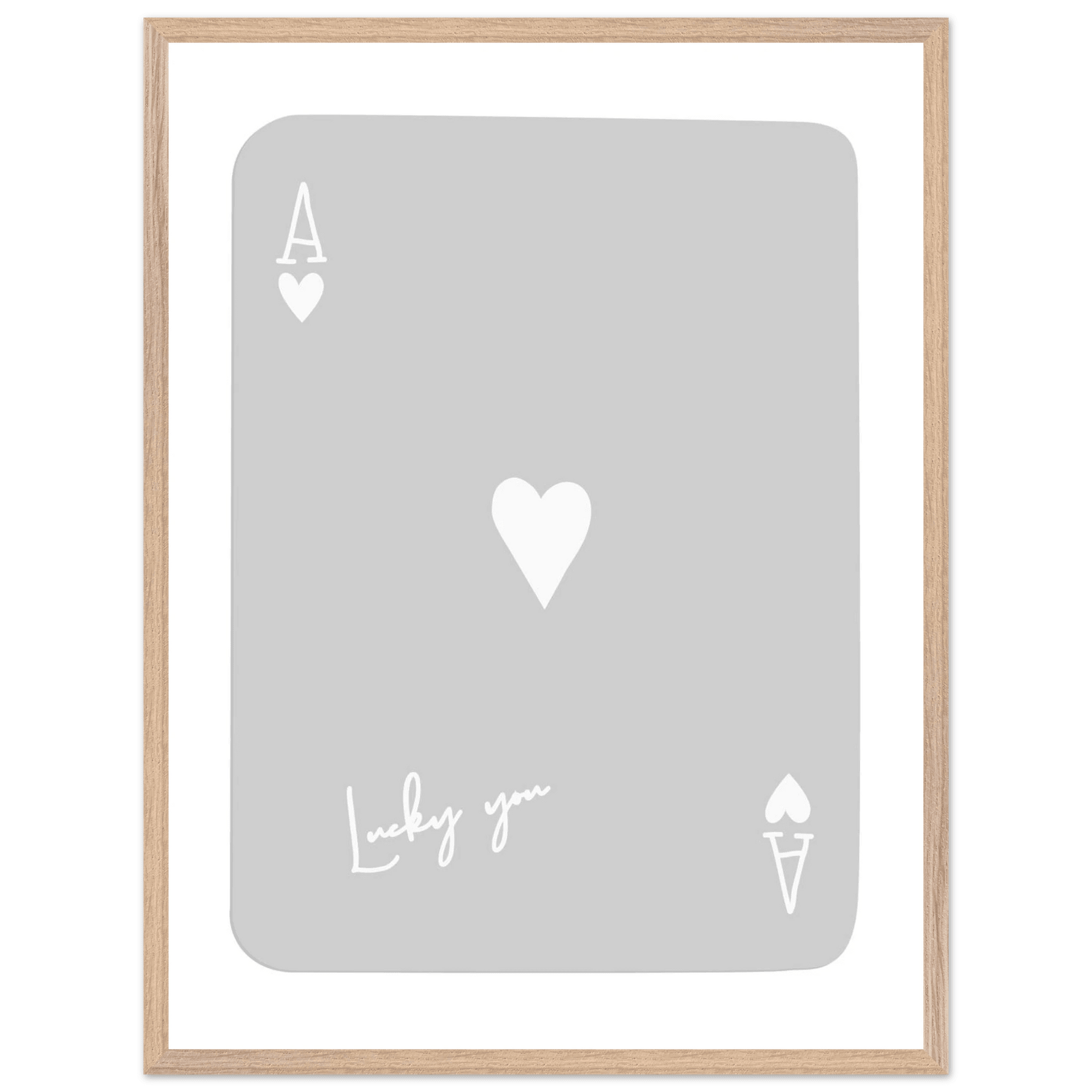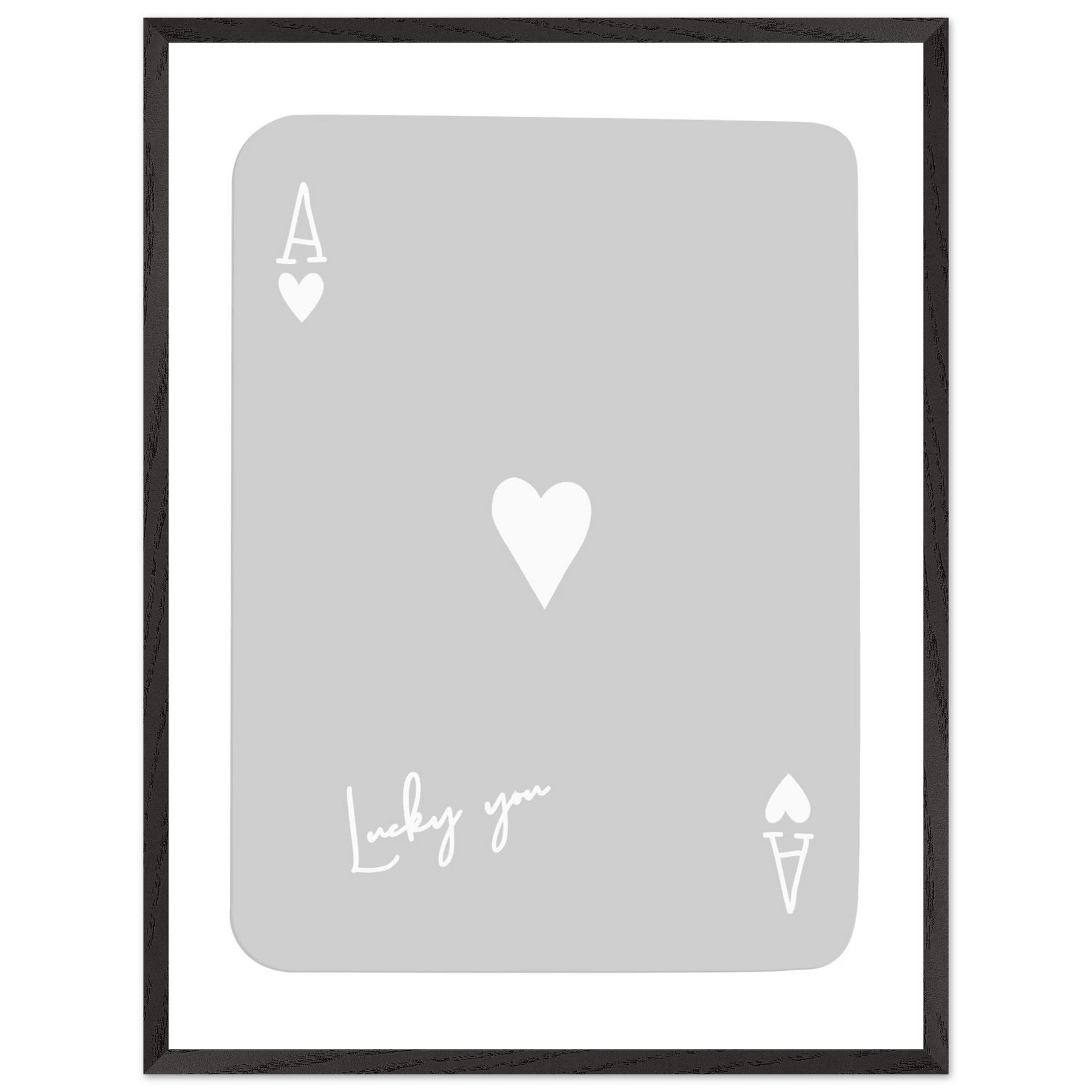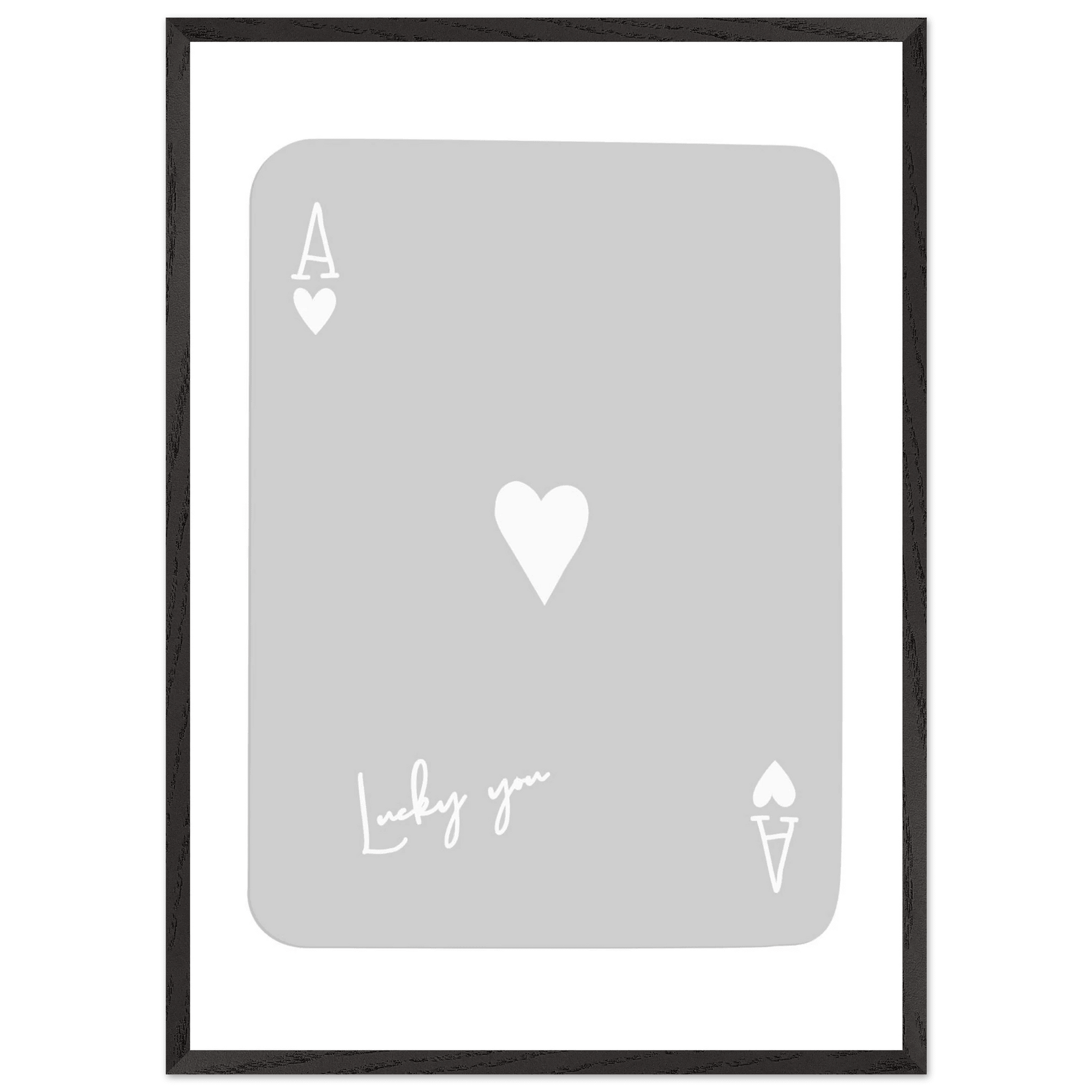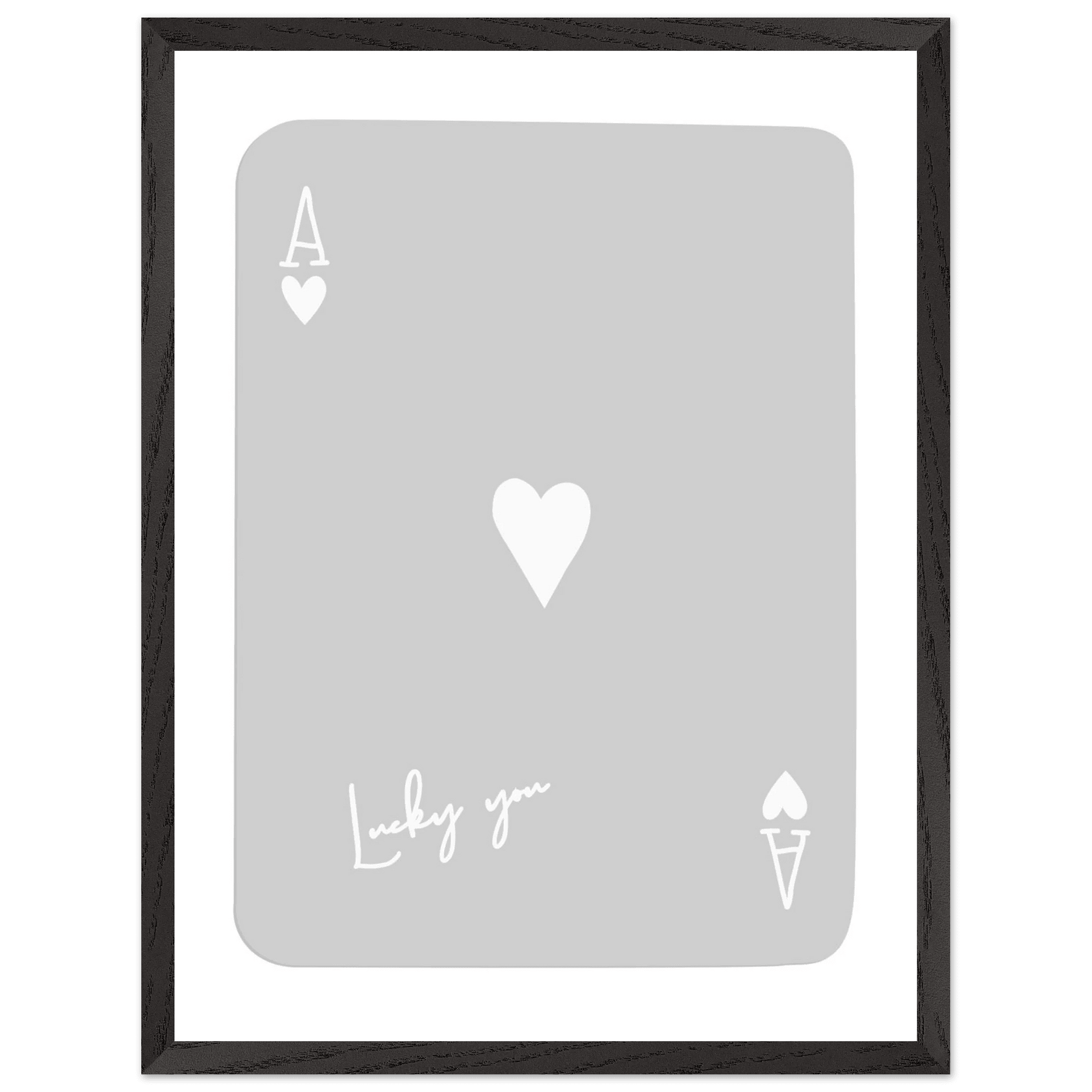 Lucky You Ace of Hearts Poker Card Art Print - Minimalist Framed Poster, Eco-Friendly Wood Frame
