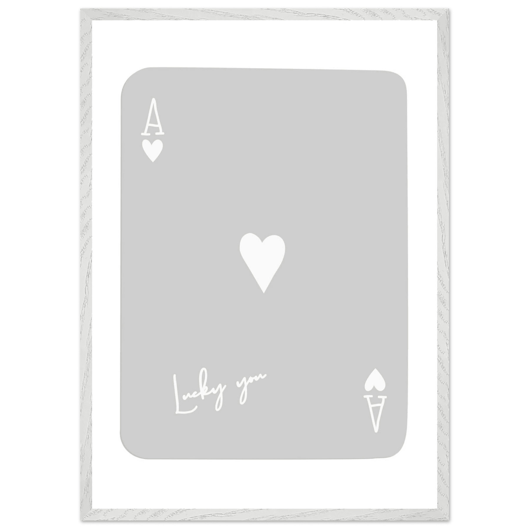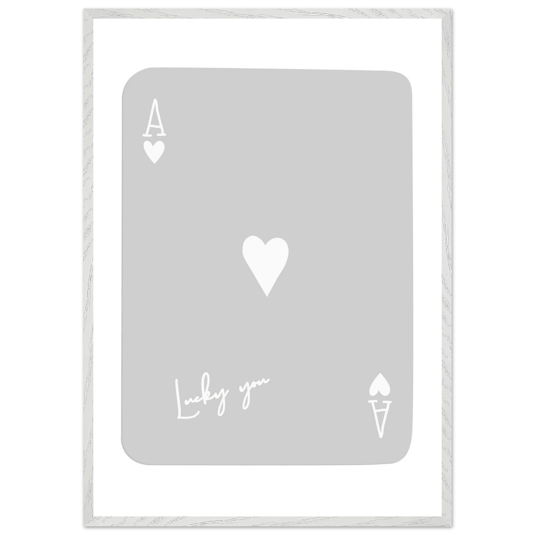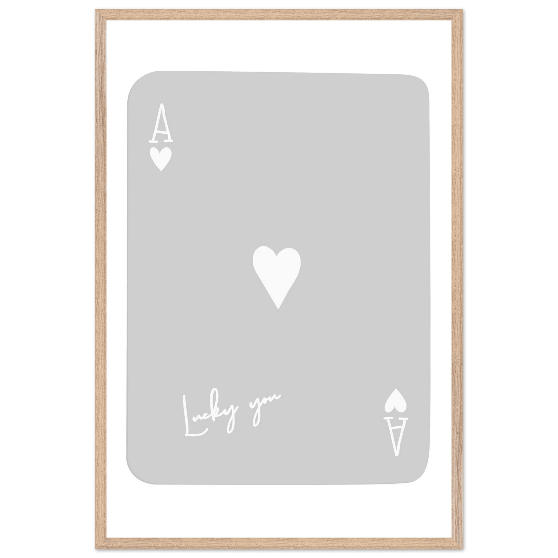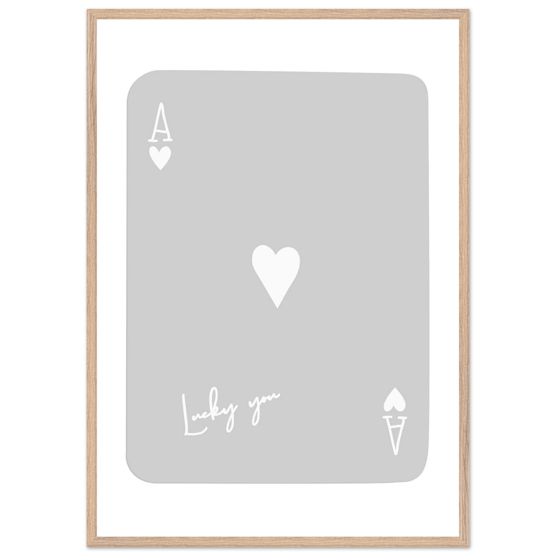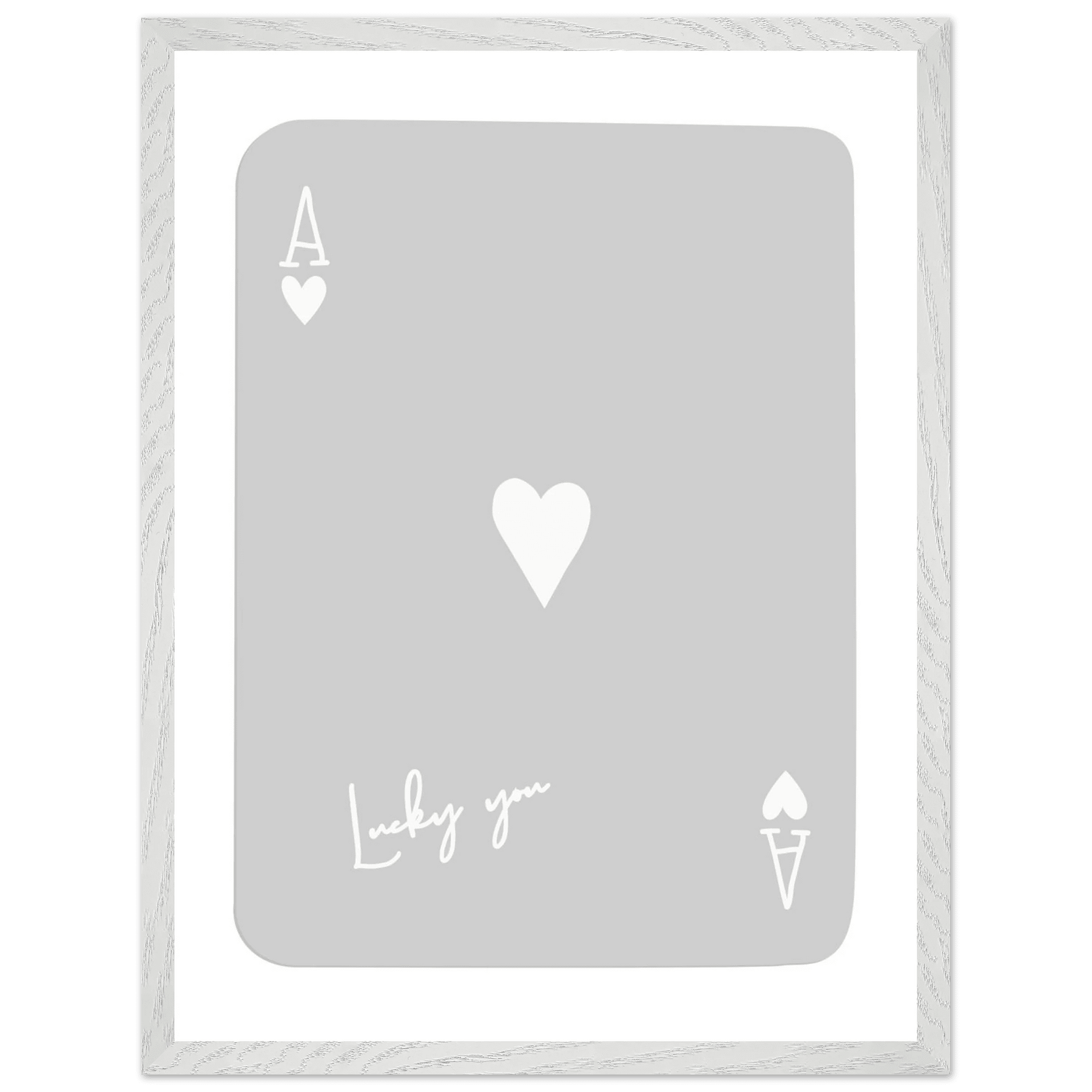Lucky You Ace of Hearts Poker Card Art Print - Minimalist Framed Poster, Eco-Friendly Wood Frame